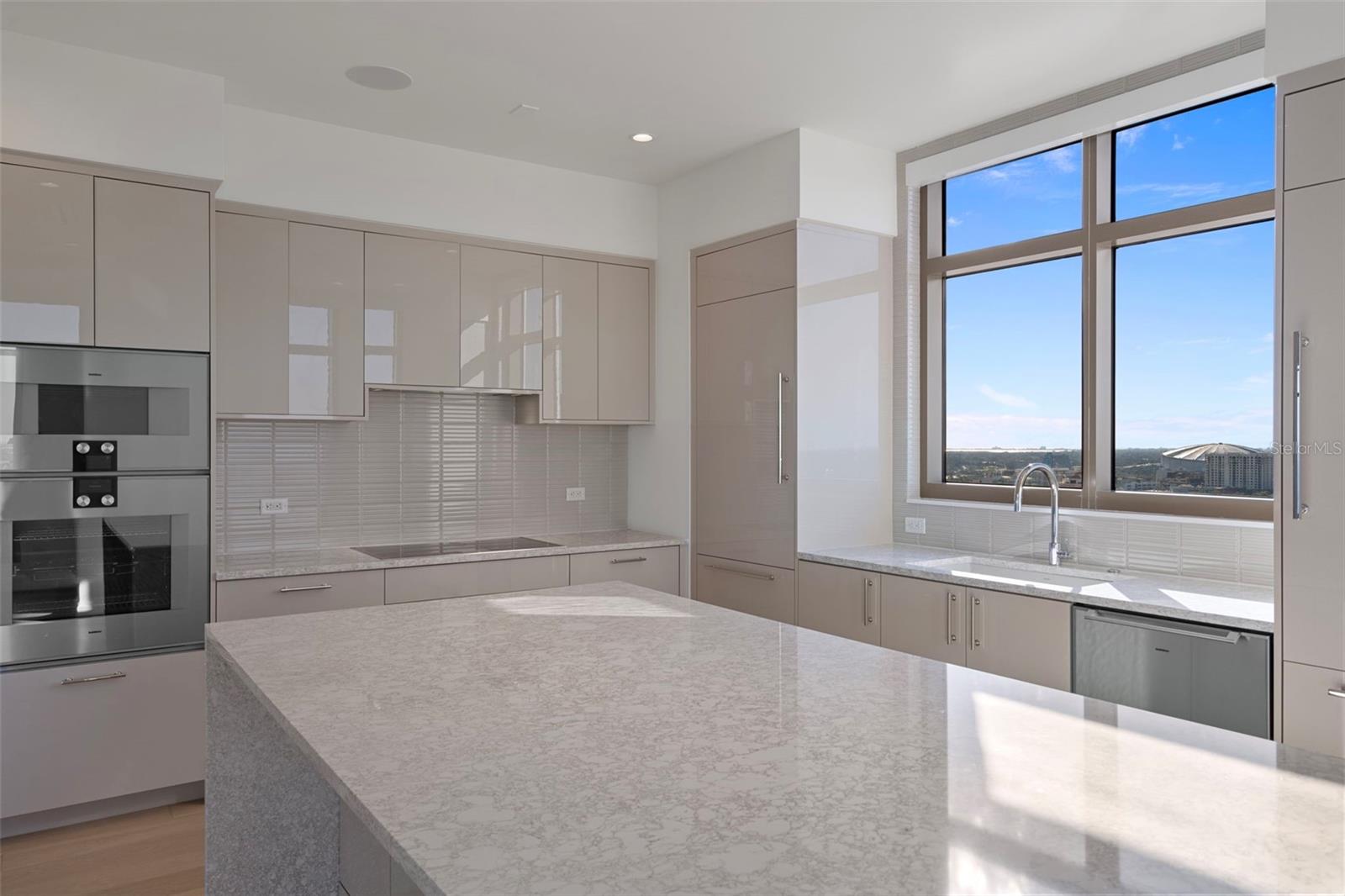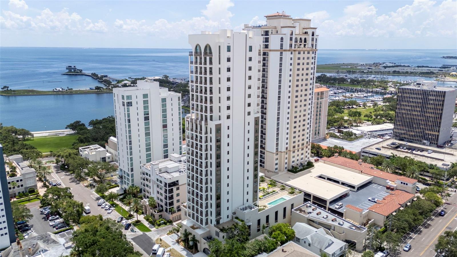 One or more photo(s) has been virtually staged. Now complete and move-in ready, this full floor home at The Nolen St. Pete offers an exceptional blend of luxury, privacy, and design within a 23-story boutique tower of only 31 residences. The elevator opens directly into a spacious foyer with a storage closet and double-door entry revealing breathtaking views of Old Northeast, Tampa Bay, and the Vinoy Basin. The chef’s kitchen is equipped with Gaggenau appliances, an induction cooktop, double ovens with convection microwave, a Blanco sink, two refrigerators, two freezers with ice makers, a large wine fridge, and an expansive waterfall island with quartz countertops and abundant pantry space. The open living area flows seamlessly to a 38-foot terrace that spans from the living room as well as a second terrace on the south side spanning the primary suite, showcasing sunrise and sunset views. The primary suite offers a spa-inspired bath with a soaking tub, walk-in shower with rain head and bench, dual vanities with LED illuminated mirrors, a makeup station, and an expansive walk-in closet. Both guest bedrooms feature en-suite baths, one guest room featuring terrace access. Additional highlights include a bonus study, powder bath, large laundry room with extra cabinetry, and generous storage throughout. Enjoy resort-style amenities including a saltwater pool and spa, fitness center, club lounge, fire pit area, outdoor grill space, and concierge service. The residence includes a private two-car garage within the parking structure and climate-controlled storage unit with its own mini-split AC. This is your opportunity to own a brand-new, never-lived-in residence at one of downtown St Pete's best locations. The Nolen is a thoughtfully designed, NGBS-certified green building, offering an elevated, maintenance-free lifestyle just steps from Beach Drive, waterfront parks, marinas, and downtown’s best dining and shopping. A new award-winning coffee shop is now open on the ground level — making it easier than ever to enjoy your morning routine or unwind just an elevator ride away. At The Nolen, downtown is downstairs — with the city’s finest restaurants, culture, fitness studios, and entertainment all within walking distance. The Nolen #2001 perfectly blends modern elegance, thoughtful design, and the timeless charm of St. Petersburg’s waterfront lifestyle. Come and view it today!