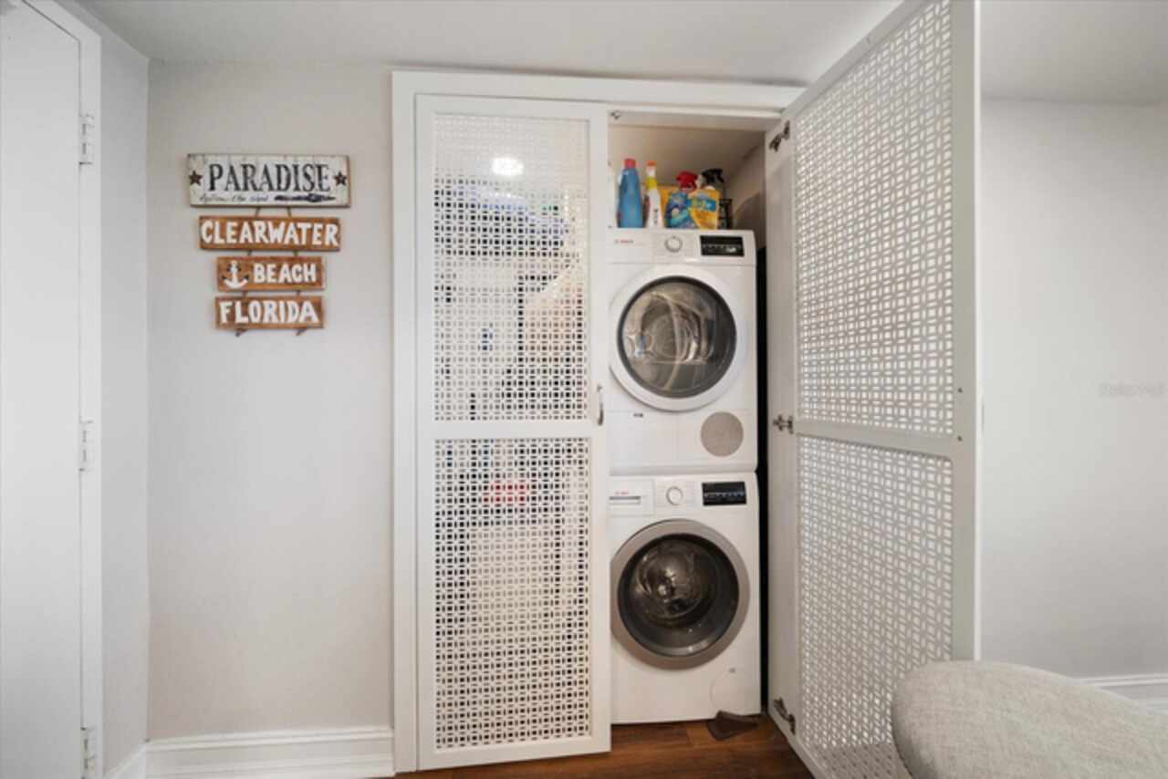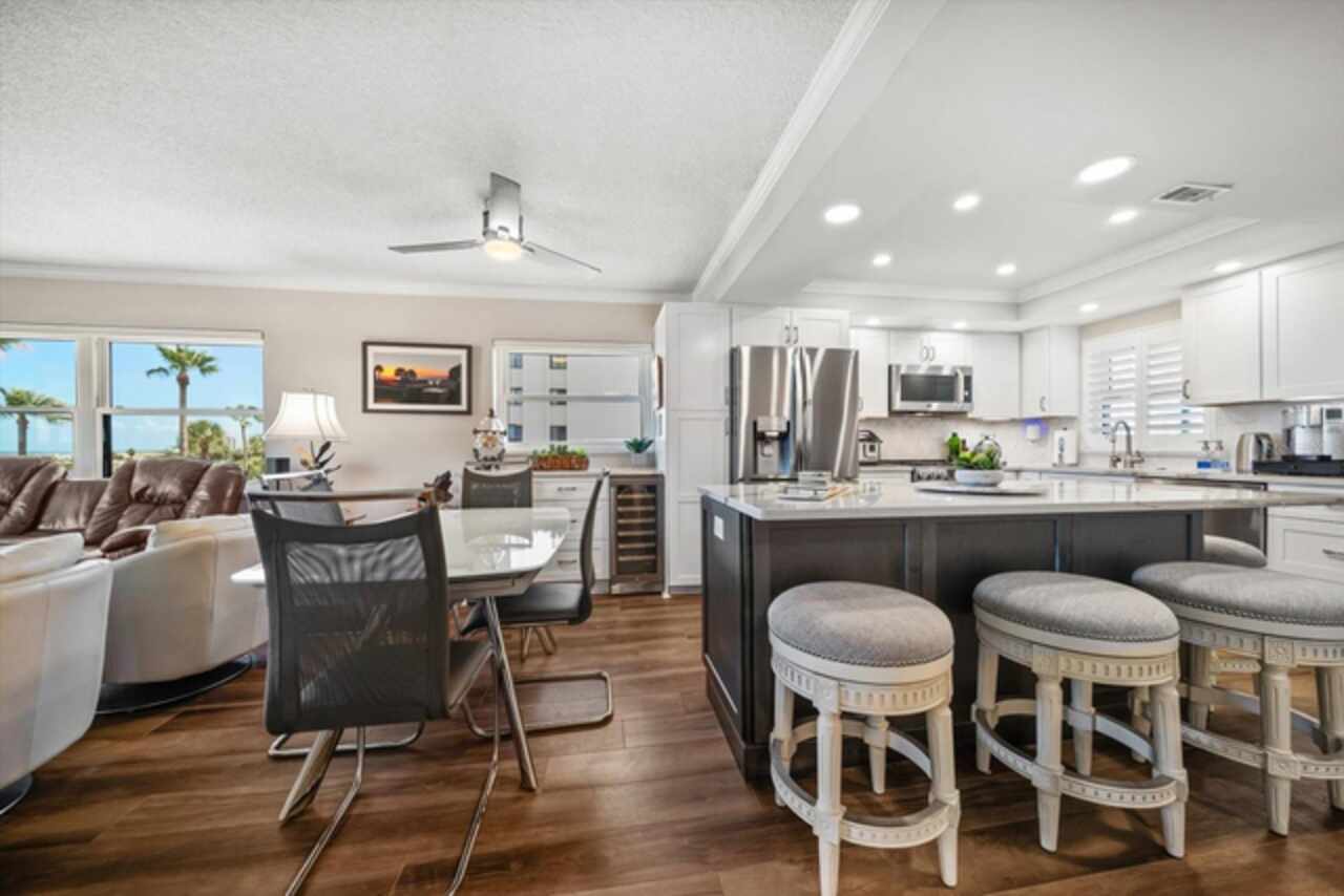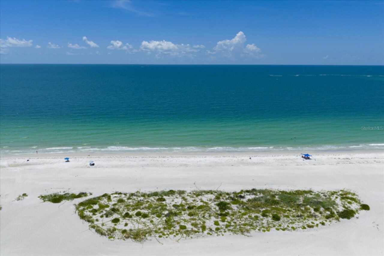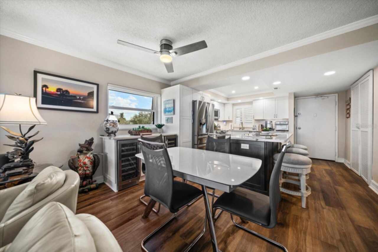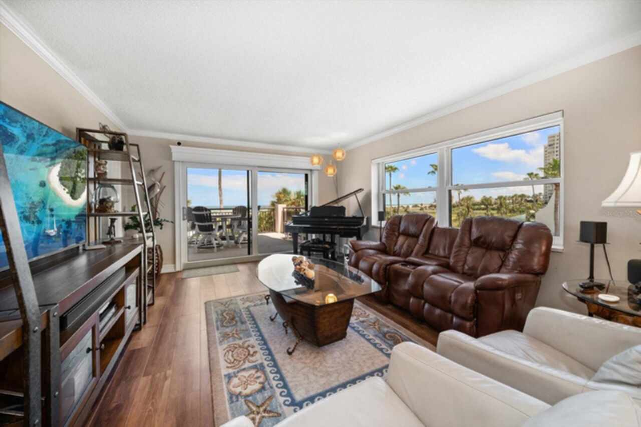 This corner unit isn’t just another condo—it’s one of the rarest offerings you’ll find on Sand Key, and truly one of a kind in gated, secure, and FULLY FUNDED Harbour Light Towers. At 1, 208 square feet, it’s the largest individual condo in the building, and one of only six like it. What sets this completely renovated unit apart even further is the 495-square-foot veranda—this expansive space is unique to the third-floor end units. Ideal for creating unforgettable memories and enjoying postcard perfect sunsets unlike anywhere else. Inside, luxury vinyl plank flooring runs throughout, accented by tall baseboards, crown molding, and custom cornices above both sliders. The attention to detail is obvious, starting with a beautifully remodeled kitchen that’s so striking it was featured on the design consultant’s website. It includes Cambria quartz countertops, custom Fabuwood cabinetry with soft-close doors, LG appliances including a French door refrigerator that makes craft ice, an induction range, a water softener and osmosis system, and even a cleverly hidden laundry closet—an extremely rare feature in this building. The kitchen opens to a dining area with a built-in cabinet housing two wine coolers. The light-filled family room is a peaceful retreat, where walls of glass frame the expansive veranda and draw your eyes straight to the shimmering Gulf beyond. With soft natural light filtering in and unobstructed views of sand, sea, and sky, it’s a space that invites you to unwind and simply take it all in. The spacious primary bedroom offers a custom walk-in closet and an ensuite with a walk-in shower and quartz counters. The additional bedroom is filled with natural light and a walk-in closet with a beautifully renovated full bathroom across the hall. All windows and sliders are top-quality PGT impact windows . Located at the far end of the third floor—well above flood zones—this unit offers complete privacy and convenient access to your assigned parking just one flight down via the stairwell just outside your front door. Enjoy the peace of mind that comes from a completed Milestone Inspection, Fully funded HOA, completed exterior renovations, common area weather decking, new roof, entry doors brick entrance, security system, cameras, parking areas repaved and 24 hour security! Simply put—this condo doesn’t compare to anything else currently available, here or anywhere nearby. If you’ve been waiting for something truly special, you’ve found it.