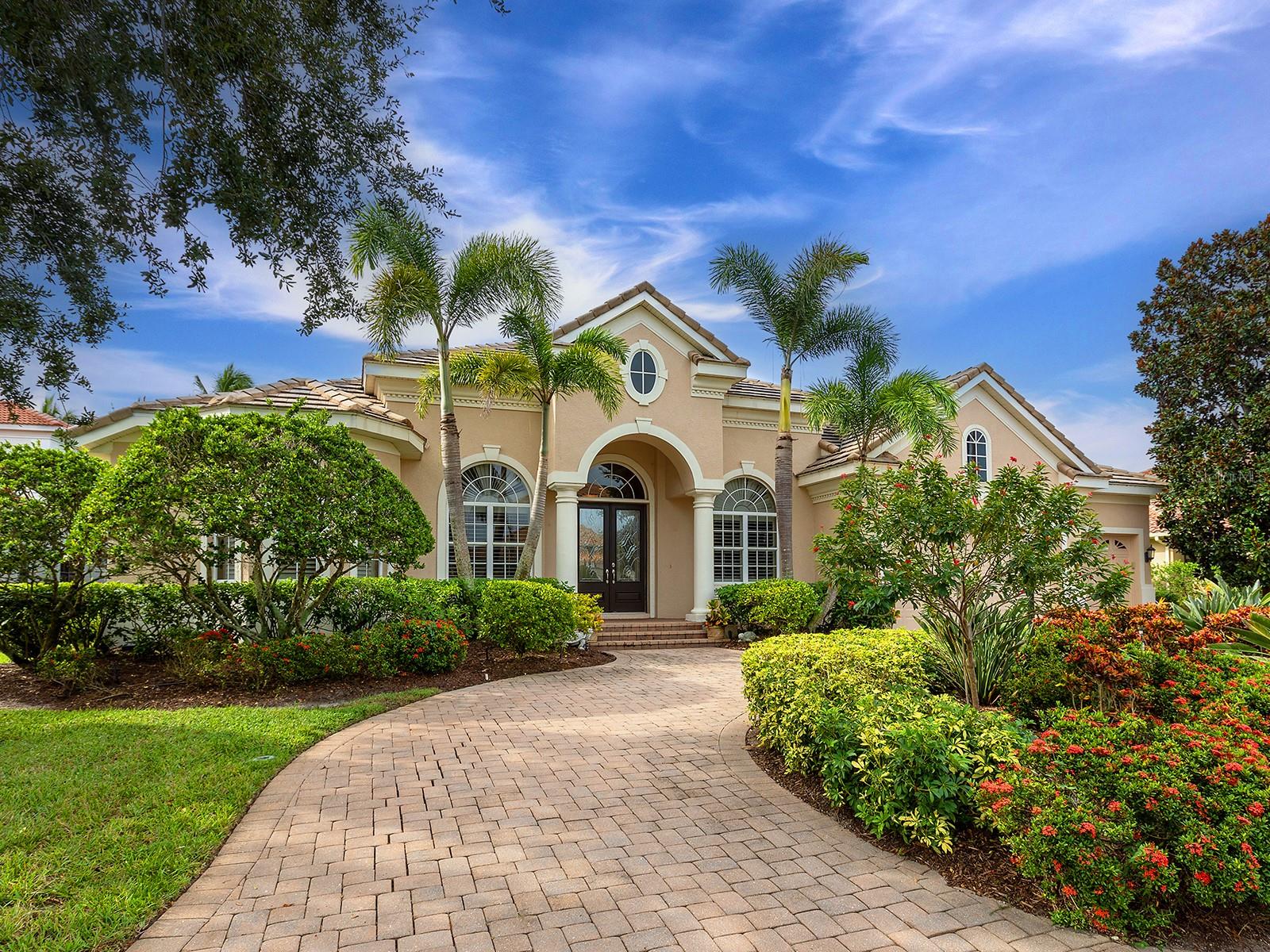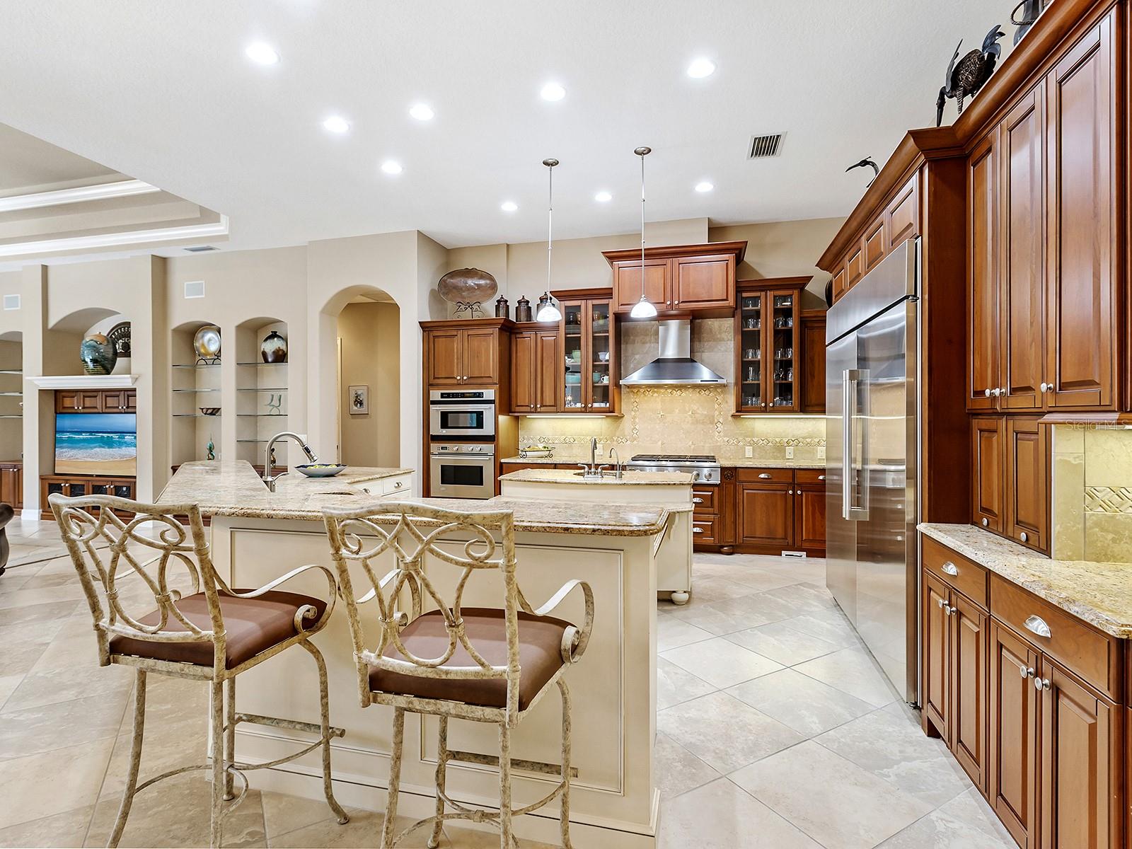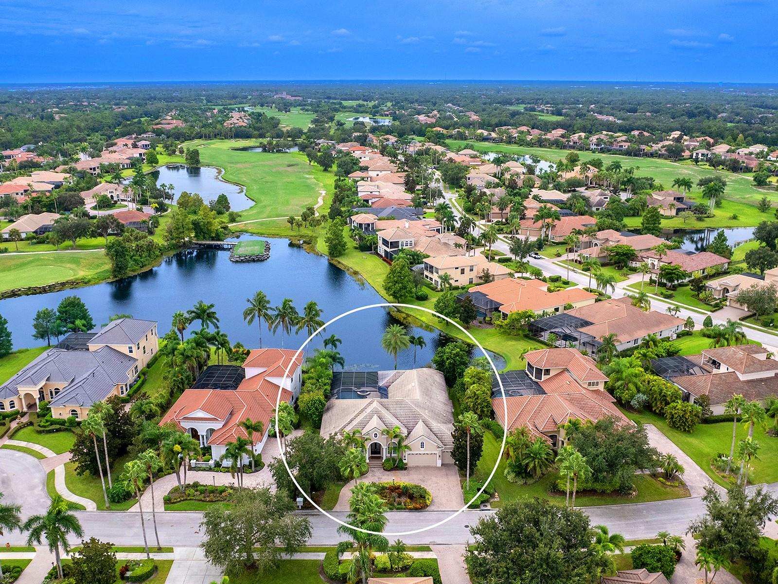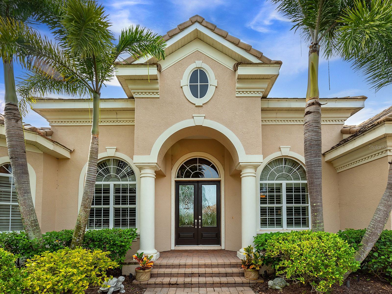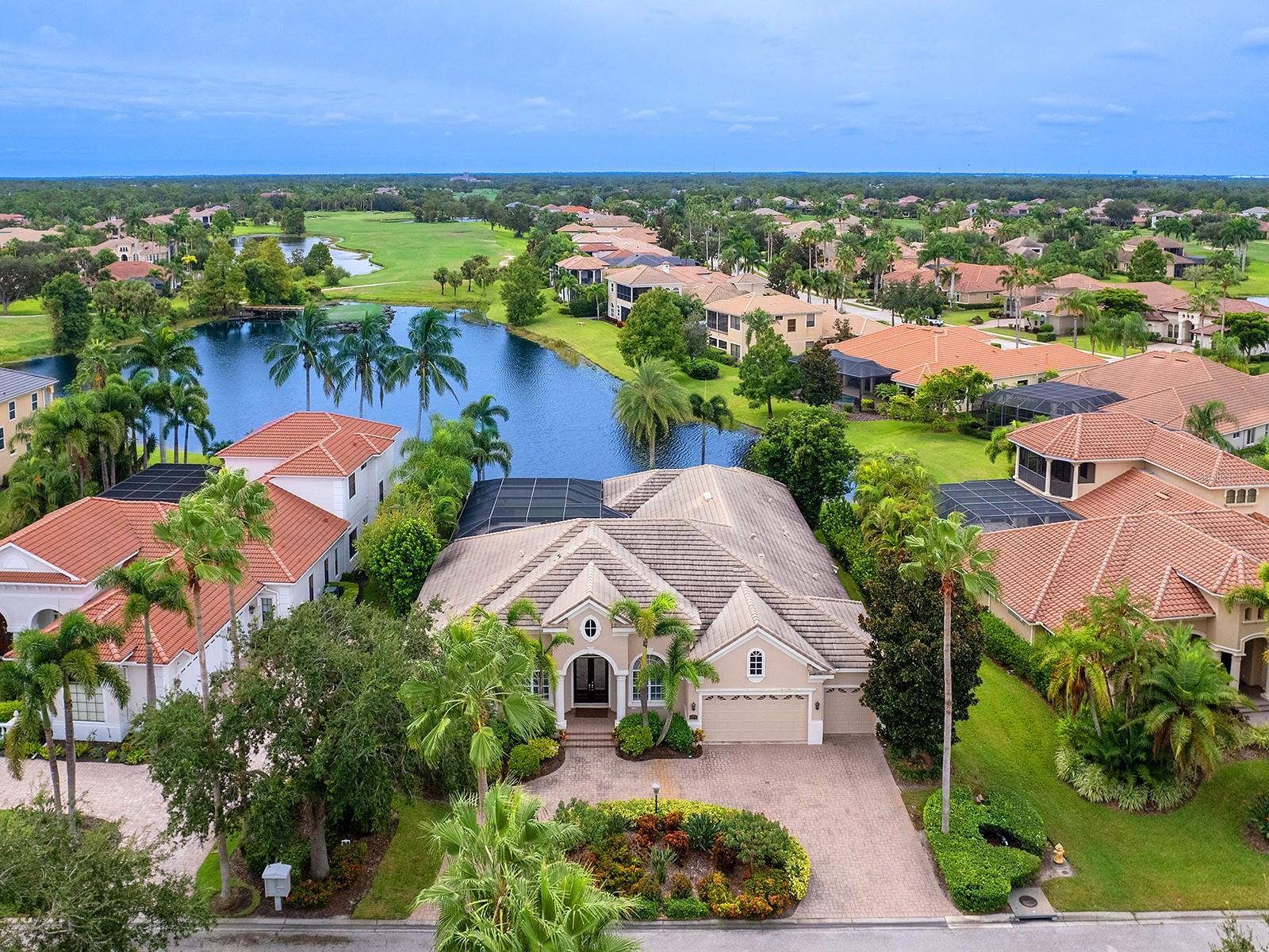 Under contract-accepting backup offers. Set on a private cul-de-sac with sweeping fairway and water views, 12714 Deacons Place offers thoughtfully designed living spaces that blend everyday comfort with refined detail. A circular paver drive and manicured landscaping establish the home’s stately curb appeal, while coach lighting and elegant columns frame the entry. A brand new roof will be installed in October of 2025. Inside, 20-inch porcelain tile with granite inlay sets the tone in a foyer that leads seamlessly into light-filled gathering spaces. The kitchen was created with functionality and design in mind, appointed with granite countertops, Brookhaven® cherry wood cabinetry, a floating prep island with an instant-hot faucet, and top-tier appliances. Appliances include a GE Monogram refrigerator and freezer, Bosch dishwasher, GE wall oven with microwave and warming drawer, a six-burner GE gas cooktop, and a Thermador vent hood that vents to the exterior. A spacious walk-in pantry, art niche, and breakfast nook framed by an aquarium window enhance both function and charm. Just beyond, a butler’s pantry and wet bar connect to the dining room, which is accented by columns, a chandelier medallion, and a tray ceiling with uplighting. The home’s main living areas are designed for effortless living. In the living room, a coffered ceiling and gas fireplace are flanked by custom built-ins, while sliders open to the lanai. The family room features layered tray ceilings, glass shelving, and lanai access zero-corner sliders that dissolve the boundary between indoors and out. A large bonus room with lanai access offers flexibility as a media retreat, additional bedroom, or creative space, complete with surround sound and lake views. The primary suite is a private retreat, entered through double doors into a sitting alcove framed by bay windows with lanai access. The suite offers two walk-in closets, one of which is exceptionally spacious and features custom built-ins with a center island. The en-suite bath is richly appointed with marble floors, a glass-block walk-in shower with multiple shower heads, a Jacuzzi tub, dual vanities with marble tops, and a makeup station. Two sizable guest suites each provide generously sized closets and access to beautifully finished baths, while two half baths and a pool bath serve family and visitors with ease. Outdoor living is a focal point of the residence. The expansive lanai, finished in travertine, offers two covered areas, surround sound, and a vaulted cabana-style ceiling with custom trim. A full outdoor kitchen with granite counters, stainless cabinetry, and a Lynx grill anchors one side, while a fireplace with a cast-stone mantle adds warmth and elegance. The Pebble Tec pool with sun shelf, spa, and cascading water feature is framed by lush landscaping that ensures privacy. Additional features include a three-car garage with storage, central vacuum, surround sound in the living room, family room, bonus room, and lanai. TVs and media equipment also convey. From its architectural details to its inviting indoor-outdoor flow, this residence is equally suited to relaxed living and sophisticated entertaining. With the recent expansion to include a fourth golf course, Lakewood Ranch Golf and Country Club offers unmatched access to premier golfing. Residents can choose from a variety of membership options. Ideally just minutes from The UTC, Waterside, and LWR Main Street. The home is also within easy reach of dining, shopping, and renowned beaches.