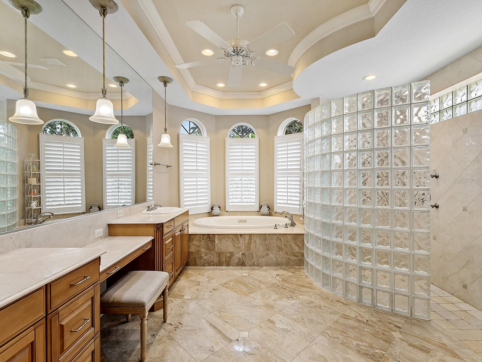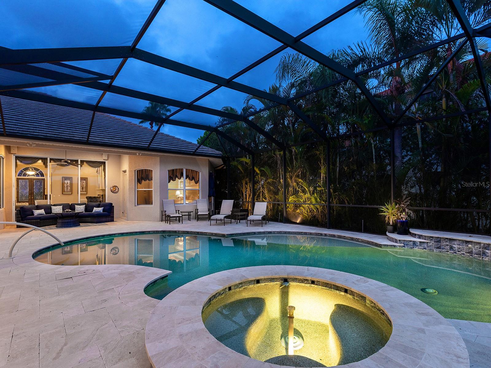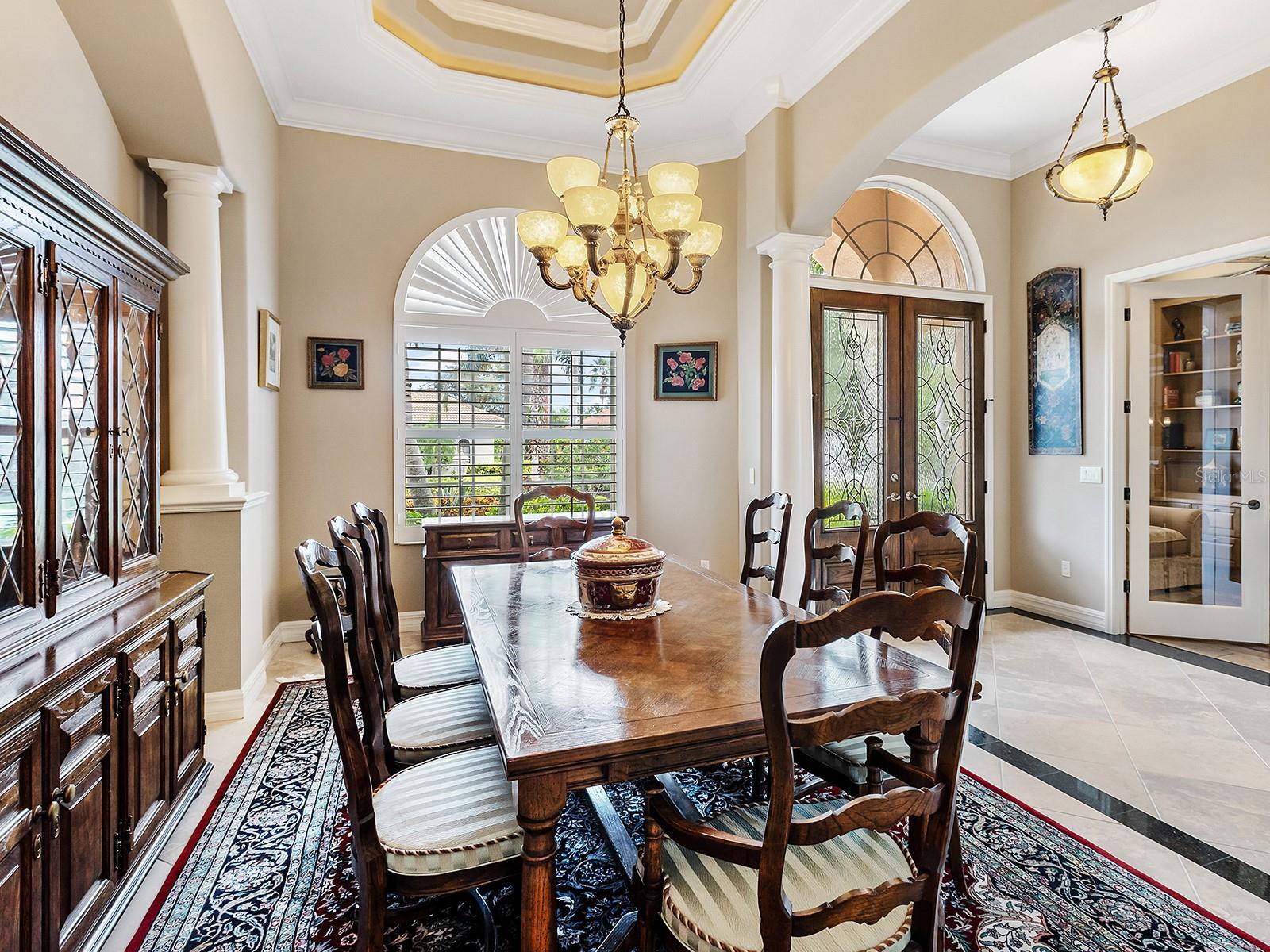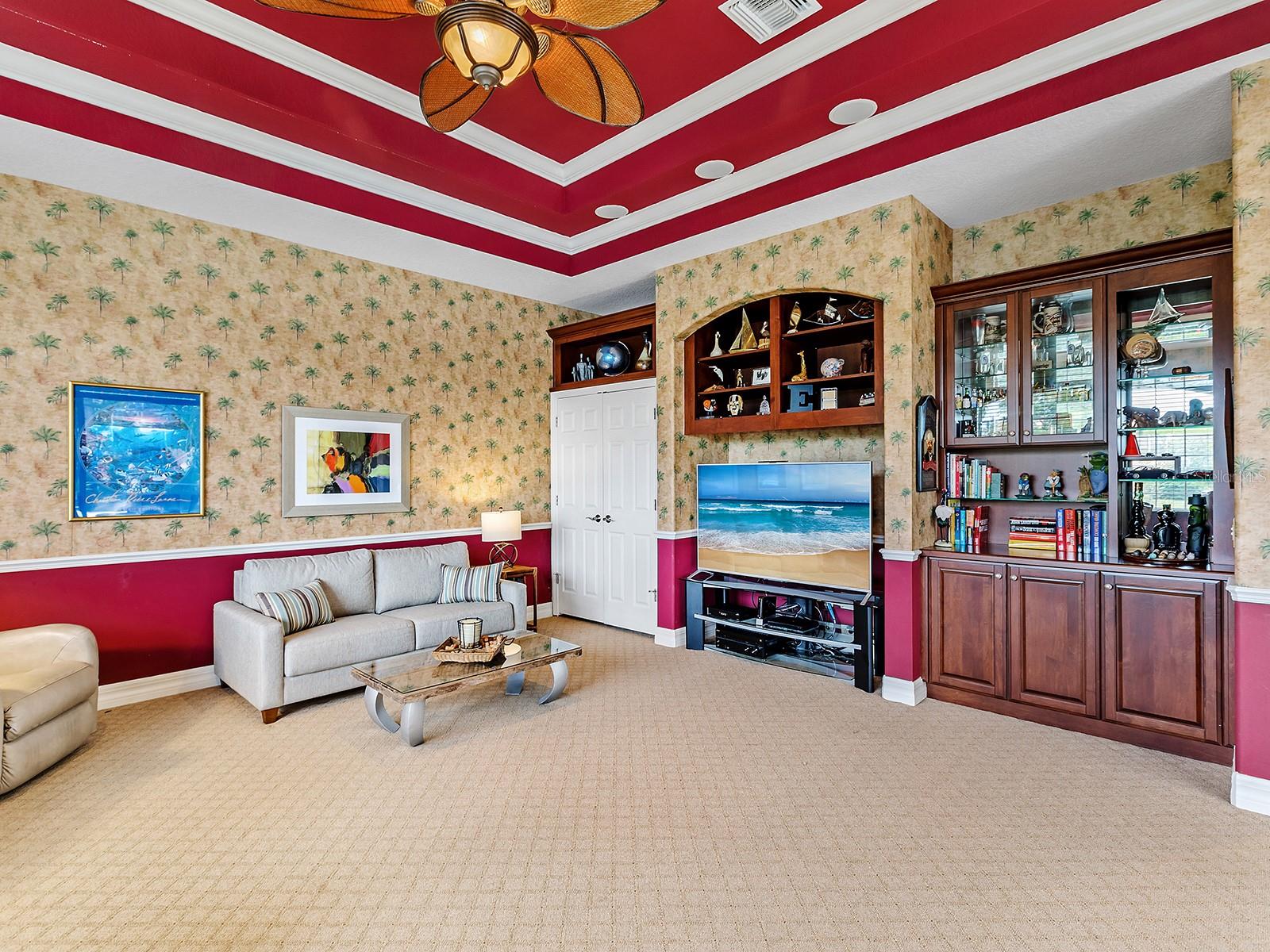 Under contract-accepting backup offers. Set on a private cul-de-sac with sweeping fairway and water views, 12714 Deacons Place offers thoughtfully designed living spaces that blend everyday comfort with refined detail. A circular paver drive and manicured landscaping establish the home’s stately curb appeal, while coach lighting and elegant columns frame the entry. A brand new roof will be installed in October of 2025. Inside, 20-inch porcelain tile with granite inlay sets the tone in a foyer that leads seamlessly into light-filled gathering spaces. The kitchen was created with functionality and design in mind, appointed with granite countertops, Brookhaven® cherry wood cabinetry, a floating prep island with an instant-hot faucet, and top-tier appliances. Appliances include a GE Monogram refrigerator and freezer, Bosch dishwasher, GE wall oven with microwave and warming drawer, a six-burner GE gas cooktop, and a Thermador vent hood that vents to the exterior. A spacious walk-in pantry, art niche, and breakfast nook framed by an aquarium window enhance both function and charm. Just beyond, a butler’s pantry and wet bar connect to the dining room, which is accented by columns, a chandelier medallion, and a tray ceiling with uplighting. The home’s main living areas are designed for effortless living. In the living room, a coffered ceiling and gas fireplace are flanked by custom built-ins, while sliders open to the lanai. The family room features layered tray ceilings, glass shelving, and lanai access zero-corner sliders that dissolve the boundary between indoors and out. A large bonus room with lanai access offers flexibility as a media retreat, additional bedroom, or creative space, complete with surround sound and lake views. The primary suite is a private retreat, entered through double doors into a sitting alcove framed by bay windows with lanai access. The suite offers two walk-in closets, one of which is exceptionally spacious and features custom built-ins with a center island. The en-suite bath is richly appointed with marble floors, a glass-block walk-in shower with multiple shower heads, a Jacuzzi tub, dual vanities with marble tops, and a makeup station. Two sizable guest suites each provide generously sized closets and access to beautifully finished baths, while two half baths and a pool bath serve family and visitors with ease. Outdoor living is a focal point of the residence. The expansive lanai, finished in travertine, offers two covered areas, surround sound, and a vaulted cabana-style ceiling with custom trim. A full outdoor kitchen with granite counters, stainless cabinetry, and a Lynx grill anchors one side, while a fireplace with a cast-stone mantle adds warmth and elegance. The Pebble Tec pool with sun shelf, spa, and cascading water feature is framed by lush landscaping that ensures privacy. Additional features include a three-car garage with storage, central vacuum, surround sound in the living room, family room, bonus room, and lanai. TVs and media equipment also convey. From its architectural details to its inviting indoor-outdoor flow, this residence is equally suited to relaxed living and sophisticated entertaining. With the recent expansion to include a fourth golf course, Lakewood Ranch Golf and Country Club offers unmatched access to premier golfing. Residents can choose from a variety of membership options. Ideally just minutes from The UTC, Waterside, and LWR Main Street. The home is also within easy reach of dining, shopping, and renowned beaches.