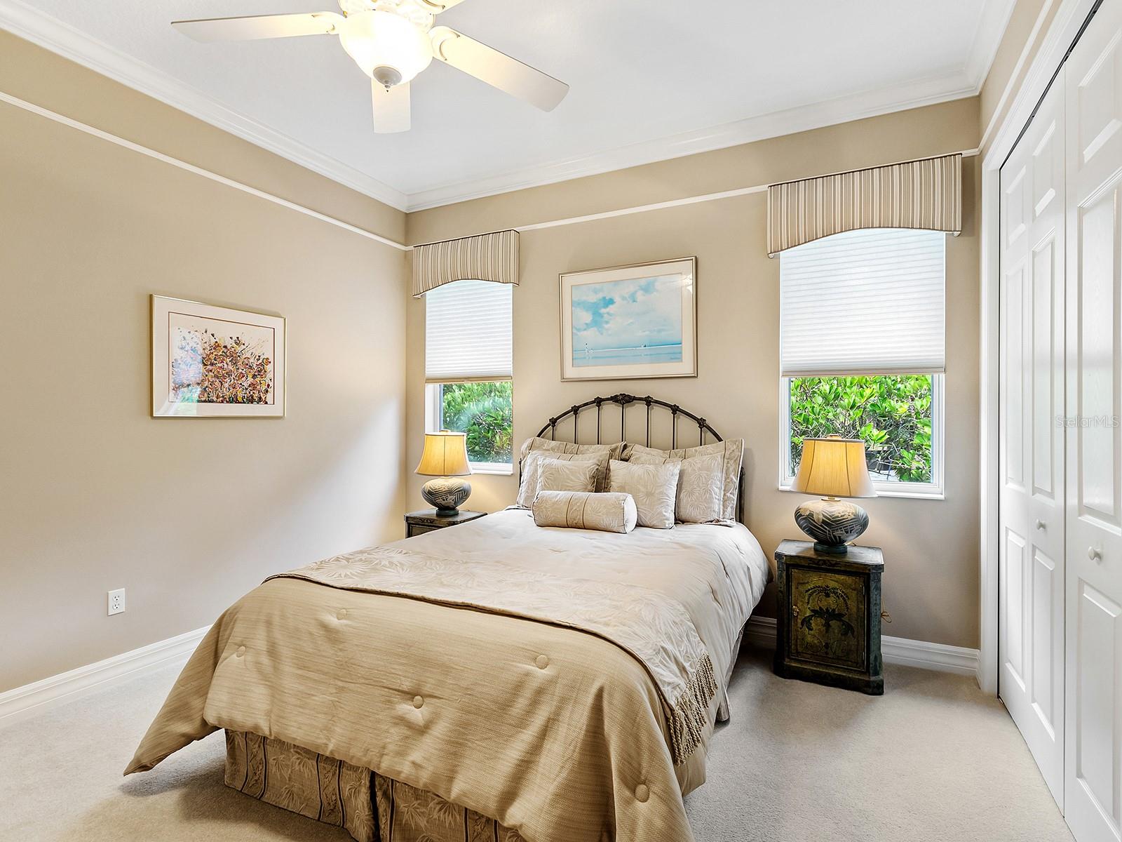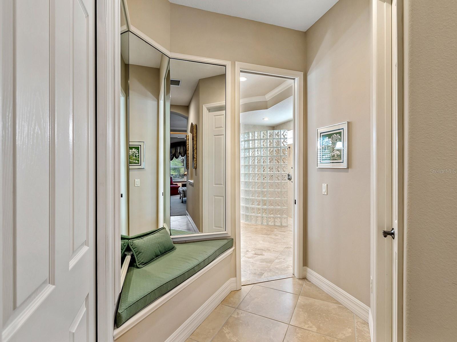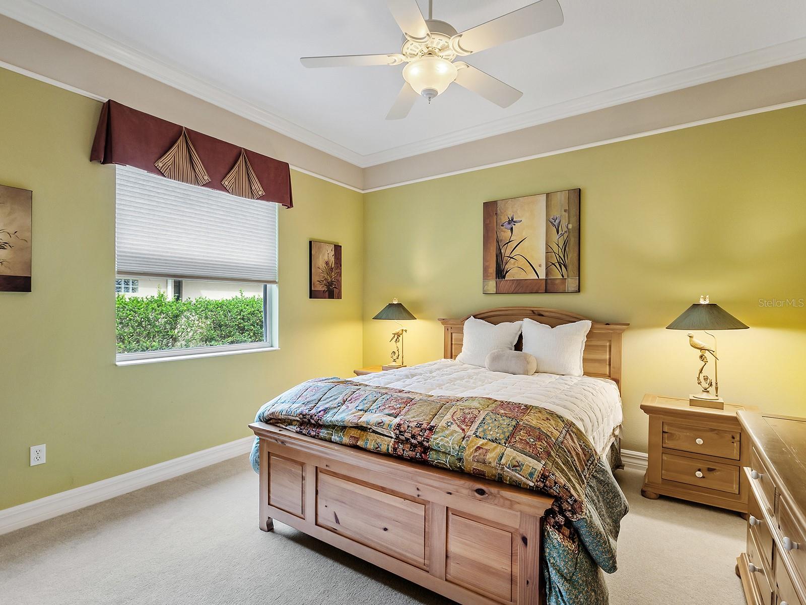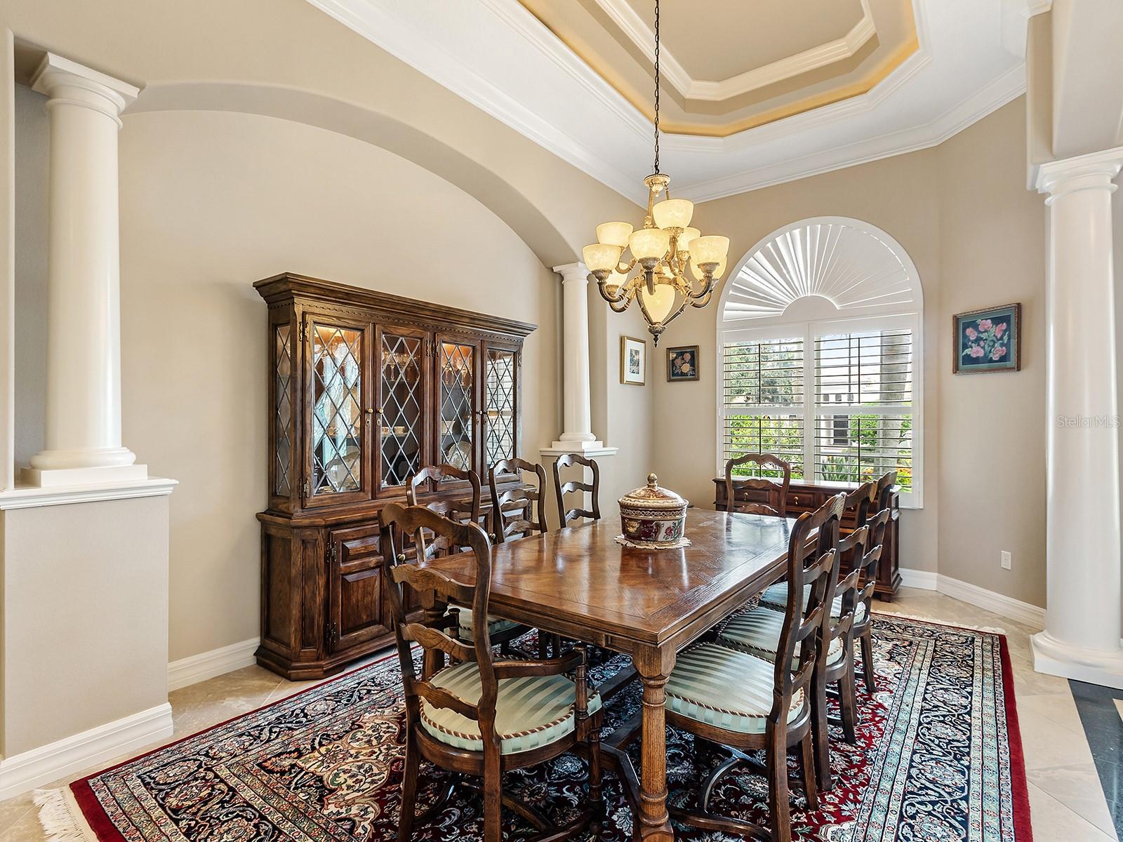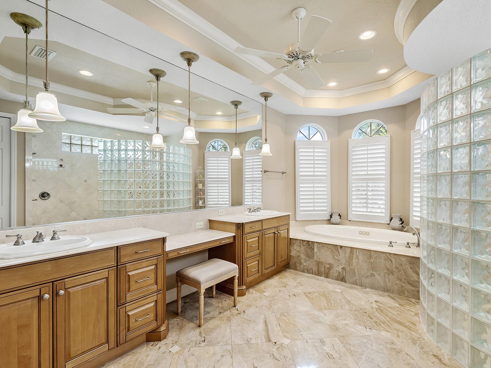 Under contract-accepting backup offers. Set on a private cul-de-sac with sweeping fairway and water views, 12714 Deacons Place offers thoughtfully designed living spaces that blend everyday comfort with refined detail. A circular paver drive and manicured landscaping establish the home’s stately curb appeal, while coach lighting and elegant columns frame the entry. A brand new roof will be installed in October of 2025. Inside, 20-inch porcelain tile with granite inlay sets the tone in a foyer that leads seamlessly into light-filled gathering spaces. The kitchen was created with functionality and design in mind, appointed with granite countertops, Brookhaven® cherry wood cabinetry, a floating prep island with an instant-hot faucet, and top-tier appliances. Appliances include a GE Monogram refrigerator and freezer, Bosch dishwasher, GE wall oven with microwave and warming drawer, a six-burner GE gas cooktop, and a Thermador vent hood that vents to the exterior. A spacious walk-in pantry, art niche, and breakfast nook framed by an aquarium window enhance both function and charm. Just beyond, a butler’s pantry and wet bar connect to the dining room, which is accented by columns, a chandelier medallion, and a tray ceiling with uplighting. The home’s main living areas are designed for effortless living. In the living room, a coffered ceiling and gas fireplace are flanked by custom built-ins, while sliders open to the lanai. The family room features layered tray ceilings, glass shelving, and lanai access zero-corner sliders that dissolve the boundary between indoors and out. A large bonus room with lanai access offers flexibility as a media retreat, additional bedroom, or creative space, complete with surround sound and lake views. The primary suite is a private retreat, entered through double doors into a sitting alcove framed by bay windows with lanai access. The suite offers two walk-in closets, one of which is exceptionally spacious and features custom built-ins with a center island. The en-suite bath is richly appointed with marble floors, a glass-block walk-in shower with multiple shower heads, a Jacuzzi tub, dual vanities with marble tops, and a makeup station. Two sizable guest suites each provide generously sized closets and access to beautifully finished baths, while two half baths and a pool bath serve family and visitors with ease. Outdoor living is a focal point of the residence. The expansive lanai, finished in travertine, offers two covered areas, surround sound, and a vaulted cabana-style ceiling with custom trim. A full outdoor kitchen with granite counters, stainless cabinetry, and a Lynx grill anchors one side, while a fireplace with a cast-stone mantle adds warmth and elegance. The Pebble Tec pool with sun shelf, spa, and cascading water feature is framed by lush landscaping that ensures privacy. Additional features include a three-car garage with storage, central vacuum, surround sound in the living room, family room, bonus room, and lanai. TVs and media equipment also convey. From its architectural details to its inviting indoor-outdoor flow, this residence is equally suited to relaxed living and sophisticated entertaining. With the recent expansion to include a fourth golf course, Lakewood Ranch Golf and Country Club offers unmatched access to premier golfing. Residents can choose from a variety of membership options. Ideally just minutes from The UTC, Waterside, and LWR Main Street. The home is also within easy reach of dining, shopping, and renowned beaches.