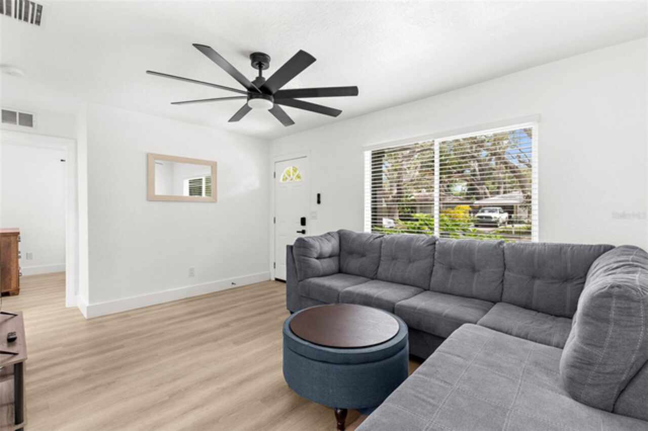 Recently renovated and ready to enjoy! This stylish 3 bed, 2 bath home sits on a quiet street just blocks from the ocean—no flood insurance required and no flood damage from recent storms. The modern split floor plan offers privacy, while the large fenced yard with paver patio is perfect for outdoor living. The home also boasts a newer roof, AC, tankless water heater, and appliances. Located in a golf cart-friendly area just minutes from downtown Dunedin's shops, restaurants, and breweries. Don't miss this move-in ready gem!