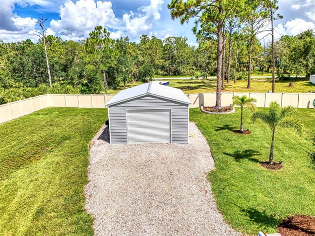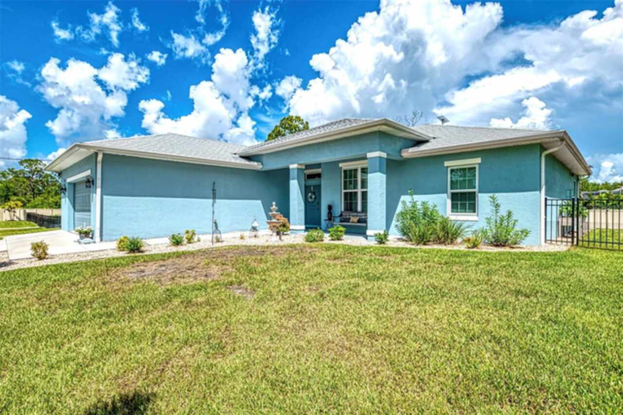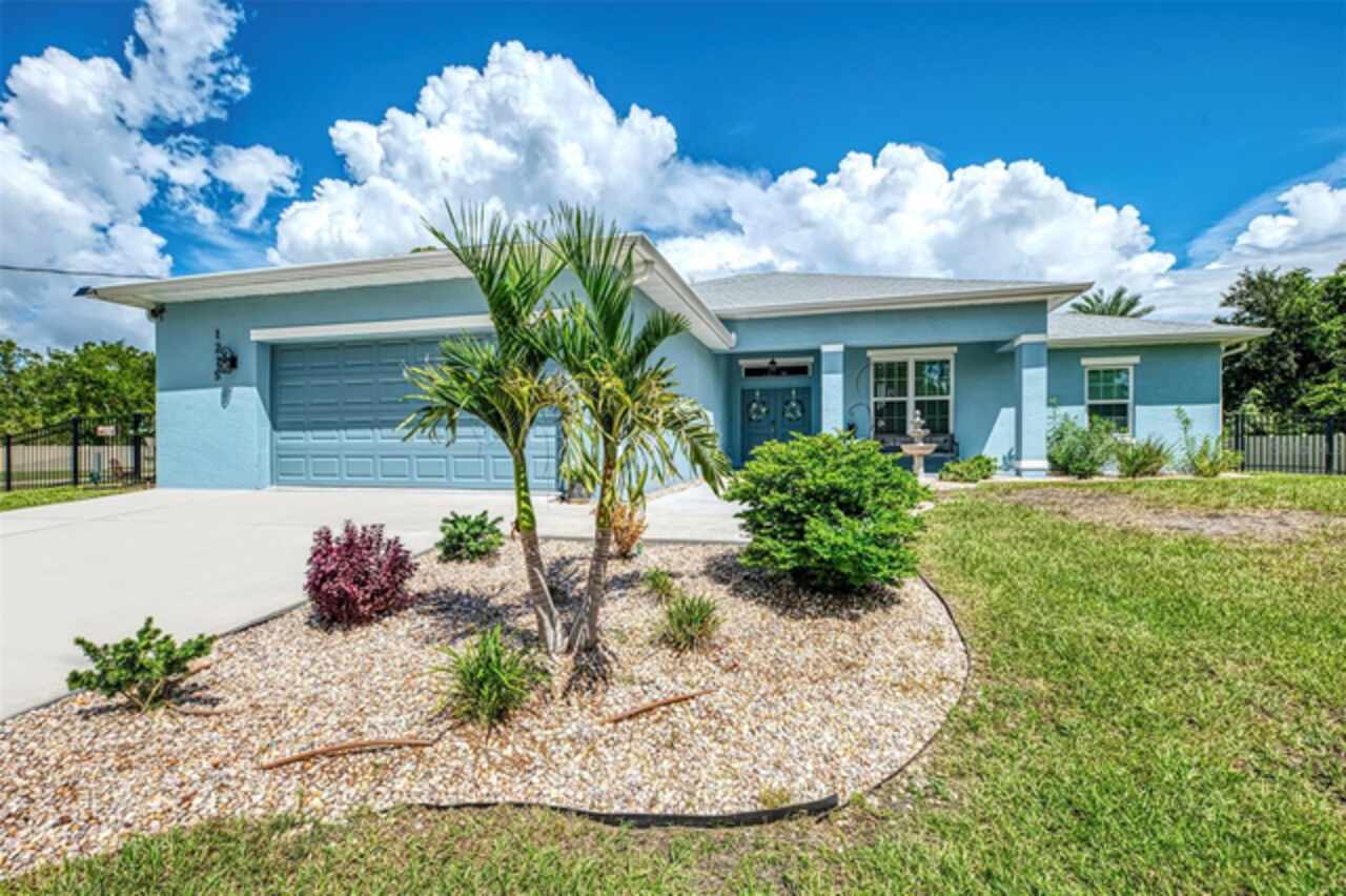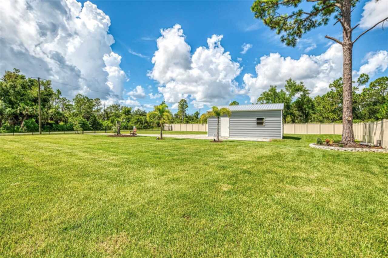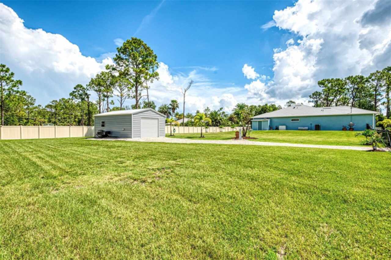 Under contract-accepting backup offers. SPECTACULAR PRICE REDUCTION . . . Homebuyers Seeking a RECENTLY CONSTRUCTED, ELEGANT CUSTOM BUILT (2023) 3 Bedroom, 2 Bath + Den HOME with an OPEN FLOOR PLAN, HIGH CEILINGS and COFFERED Great Room Ceiling, PRIVACY, NO HOA FEES, NO CDD FEES . . . PLUS . . . Situated on a TRIPLE LOT HOMESITE Measuring (240'x145') Just Under One Acre of Land (.80 Acreage) . . . You Have Found What You've Been Looking for! This GEM has An ATTACHED OVER-SIZED 2-Car Garage (23'X21.8') Plus a DETACHED GARAGE (18'X26') with Electric, Lighting and Workshop Space. RV and BOAT Owners . . . Bring Them Here. . .You’ll have Plenty of Room to Park and Hook Up to the 50 Amp Pedestal. This Remarkable Property is TOTALLY FENCED for Pets and Play, with PRIVACY VINYL on Back and Sides with ALUMINUM FRONTAGE for Great Curb Appeal. A Modern COASTAL DESIGN and PREMIUM FEATURES Create a Home that Truly Stands Out. TOP-OF-THE-LINE LUXURY WHOLE-HOUSE ECO WATER REVERSE OSMOSIS SYSTEM Gives Peace-of-Mind for Cooking, Drinking Water and Showering for the Entire Family. When Inclement Weather Approaches, this Home has HURRICANE IMPACT WINDOWS, And, If You Lose Power, there’s a GENERATOR HOOK-UP. Relax in the Great Room with Family and Friends as You Gather Around the Touchstone Elite Electric Fireplace Providing (with Heater) an Ambient Atmosphere. A Dream GOURMET KITCHEN Features SMART OVENS, Soft-Close 42" Cabinets, Tiled Backsplash and SAMSUNG Appliances (2023) plus a Beautiful Stainless Range Hood are Showcased in the OPEN FLOOR PLAN with an OVER-SIZED GRANITE Kitchen Island and a Coffee Bar. Upgraded PORCELAIN TILE Throughout ALL Public Rooms and LUXURY VINYL FLOORING in ALL Bedrooms and the Den/Study Makes Vacuuming a Breeze. For the Pets in Your Family, Bath Time is Stressless, as the Laundry Room has a Pet-Friendly TILED-WALK-IN SHOWER. . . Washup After Working in the Yard, or a Day at the Beach. A Security System is Also On-Site. Conveniently Located within Minutes of Shopping, Dining, Entertainment, Medical Facilities and Sports Venues. This EXCEPTIONAL OPPORTUNITY Awaits Those Who Want SPACE and PRIVACY, INDEPENDENCE and EVERYTHING COMPLETED to Begin Enjoying the Endless Possibilities of Keeping All of Your "Toys" with You! Call to See this AMAZING HOME and PROPERTY Today and Make It Your Own.