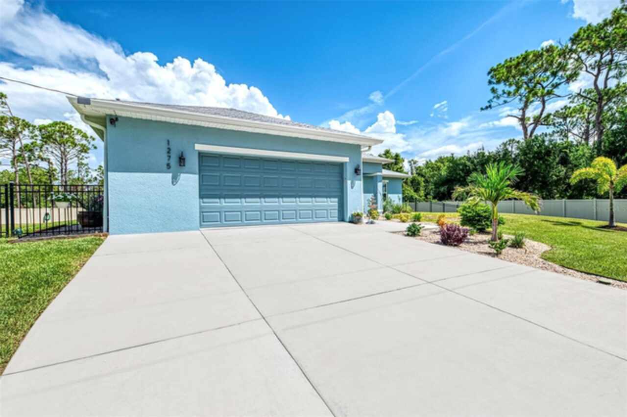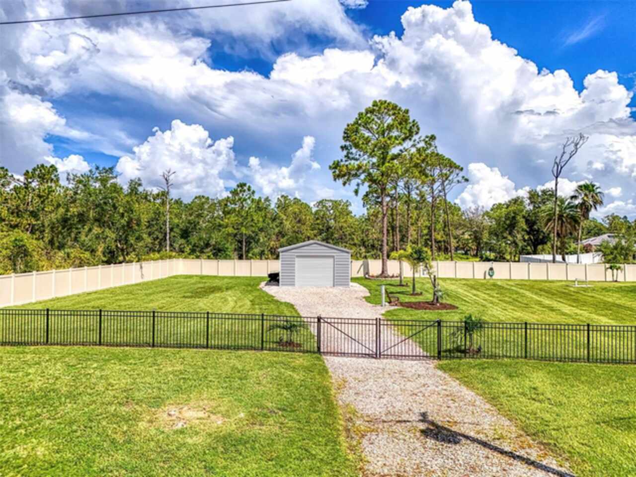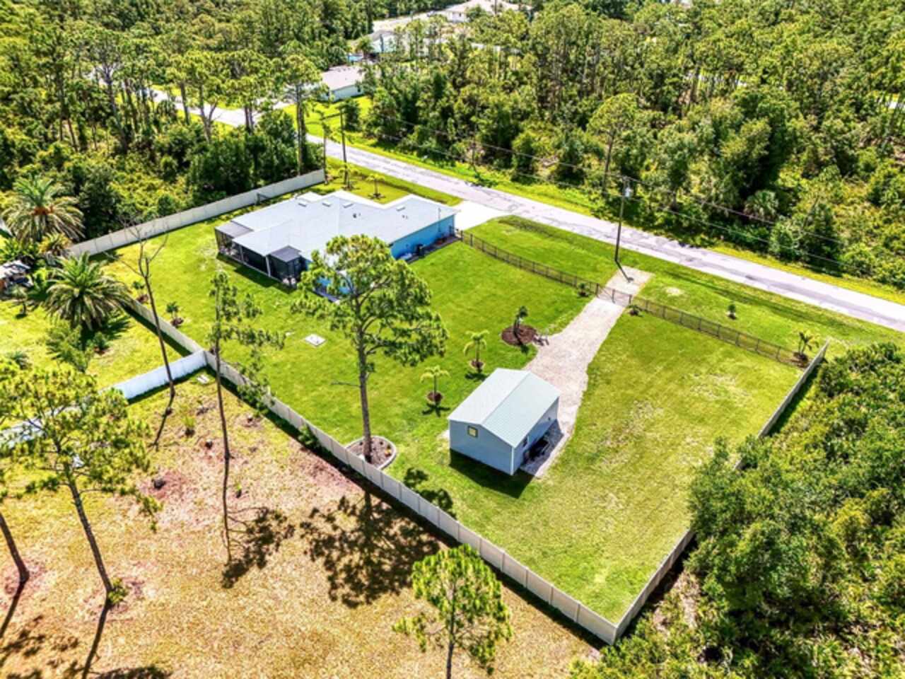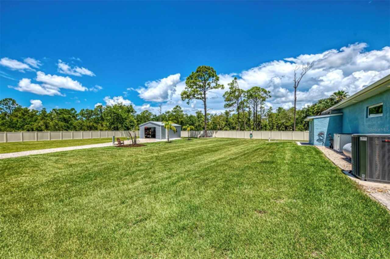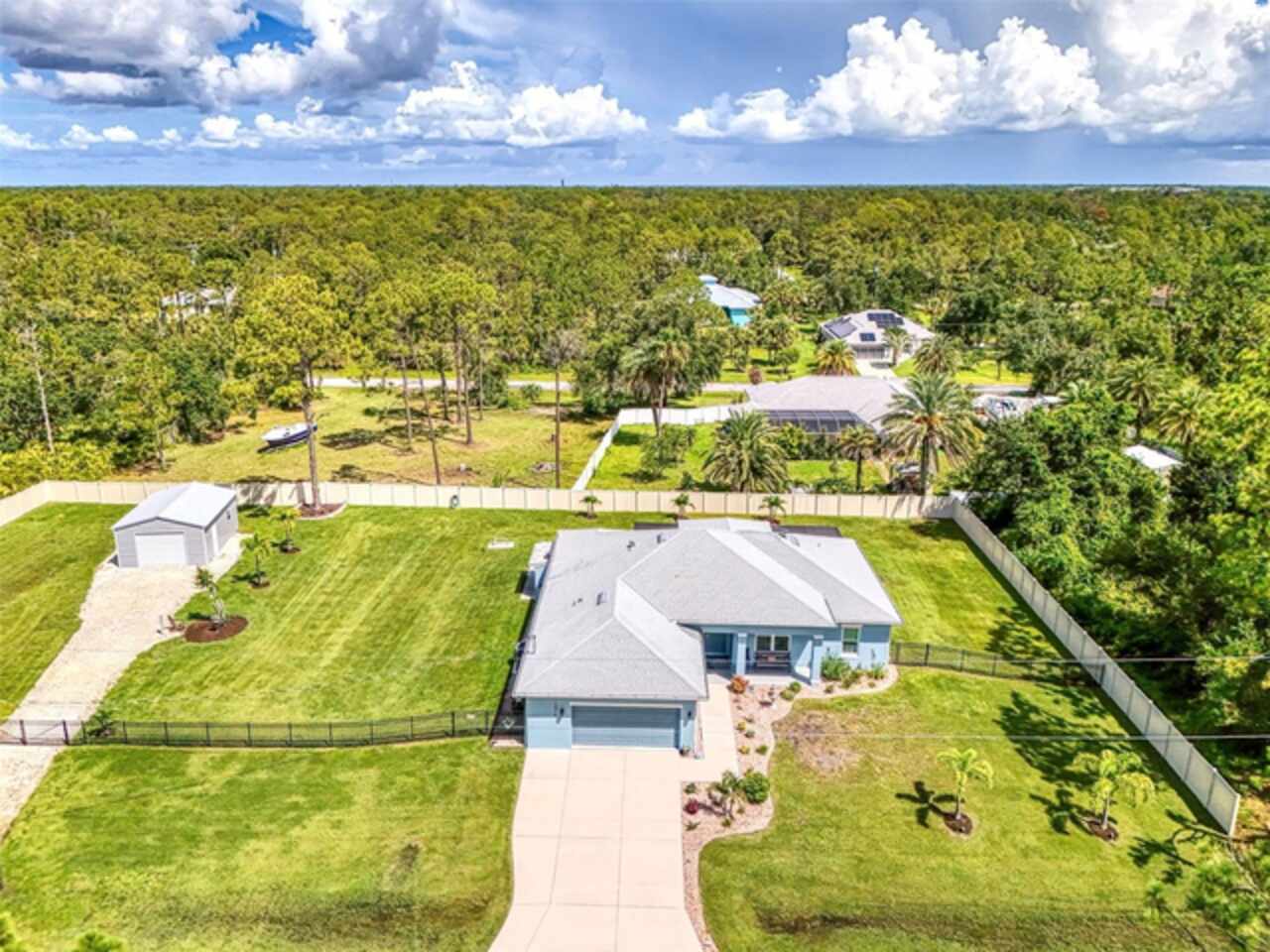 Under contract-accepting backup offers. SPECTACULAR PRICE REDUCTION . . . Homebuyers Seeking a RECENTLY CONSTRUCTED, ELEGANT CUSTOM BUILT (2023) 3 Bedroom, 2 Bath + Den HOME with an OPEN FLOOR PLAN, HIGH CEILINGS and COFFERED Great Room Ceiling, PRIVACY, NO HOA FEES, NO CDD FEES . . . PLUS . . . Situated on a TRIPLE LOT HOMESITE Measuring (240'x145') Just Under One Acre of Land (.80 Acreage) . . . You Have Found What You've Been Looking for! This GEM has An ATTACHED OVER-SIZED 2-Car Garage (23'X21.8') Plus a DETACHED GARAGE (18'X26') with Electric, Lighting and Workshop Space. RV and BOAT Owners . . . Bring Them Here. . .You’ll have Plenty of Room to Park and Hook Up to the 50 Amp Pedestal. This Remarkable Property is TOTALLY FENCED for Pets and Play, with PRIVACY VINYL on Back and Sides with ALUMINUM FRONTAGE for Great Curb Appeal. A Modern COASTAL DESIGN and PREMIUM FEATURES Create a Home that Truly Stands Out. TOP-OF-THE-LINE LUXURY WHOLE-HOUSE ECO WATER REVERSE OSMOSIS SYSTEM Gives Peace-of-Mind for Cooking, Drinking Water and Showering for the Entire Family. When Inclement Weather Approaches, this Home has HURRICANE IMPACT WINDOWS, And, If You Lose Power, there’s a GENERATOR HOOK-UP. Relax in the Great Room with Family and Friends as You Gather Around the Touchstone Elite Electric Fireplace Providing (with Heater) an Ambient Atmosphere. A Dream GOURMET KITCHEN Features SMART OVENS, Soft-Close 42" Cabinets, Tiled Backsplash and SAMSUNG Appliances (2023) plus a Beautiful Stainless Range Hood are Showcased in the OPEN FLOOR PLAN with an OVER-SIZED GRANITE Kitchen Island and a Coffee Bar. Upgraded PORCELAIN TILE Throughout ALL Public Rooms and LUXURY VINYL FLOORING in ALL Bedrooms and the Den/Study Makes Vacuuming a Breeze. For the Pets in Your Family, Bath Time is Stressless, as the Laundry Room has a Pet-Friendly TILED-WALK-IN SHOWER. . . Washup After Working in the Yard, or a Day at the Beach. A Security System is Also On-Site. Conveniently Located within Minutes of Shopping, Dining, Entertainment, Medical Facilities and Sports Venues. This EXCEPTIONAL OPPORTUNITY Awaits Those Who Want SPACE and PRIVACY, INDEPENDENCE and EVERYTHING COMPLETED to Begin Enjoying the Endless Possibilities of Keeping All of Your "Toys" with You! Call to See this AMAZING HOME and PROPERTY Today and Make It Your Own.