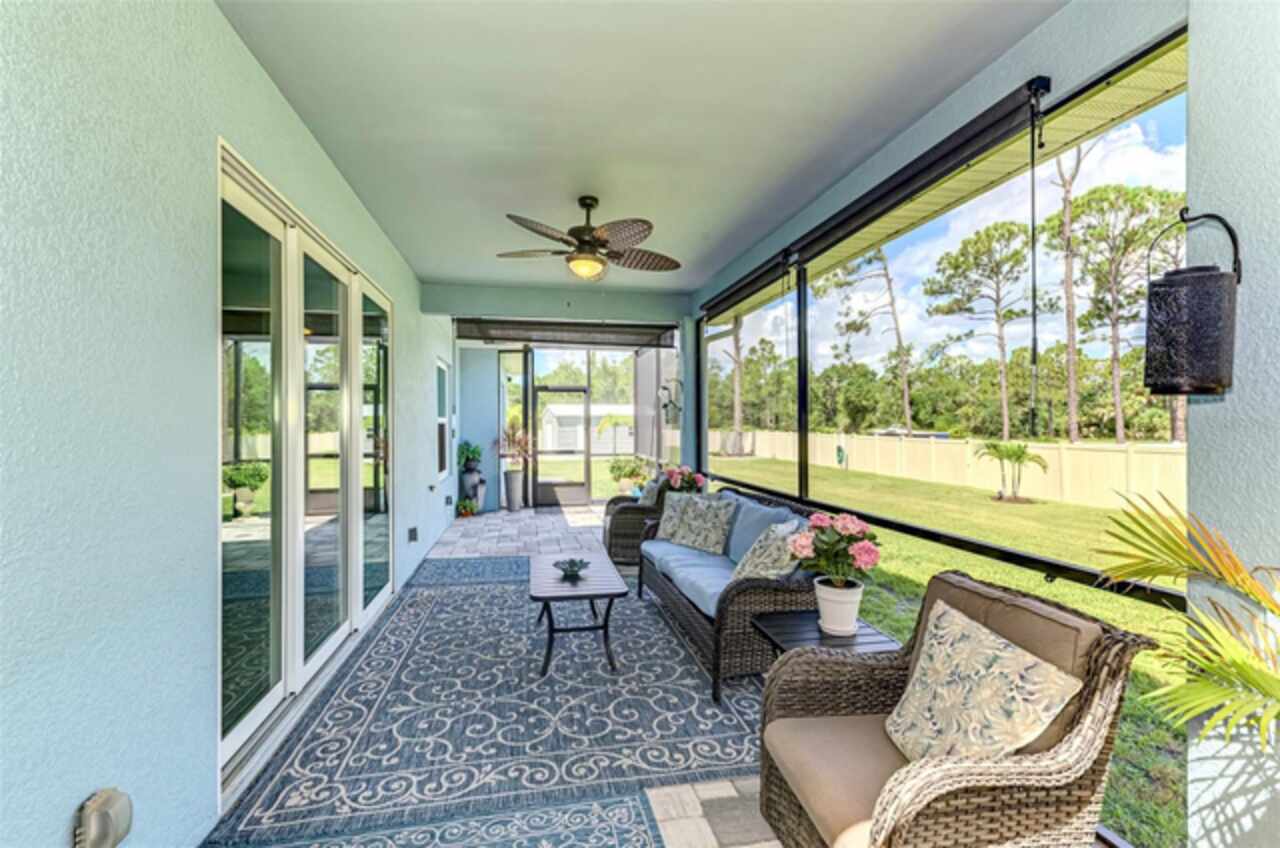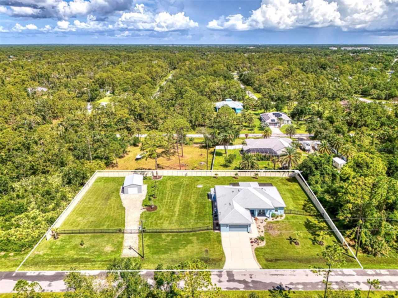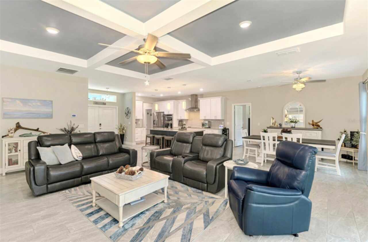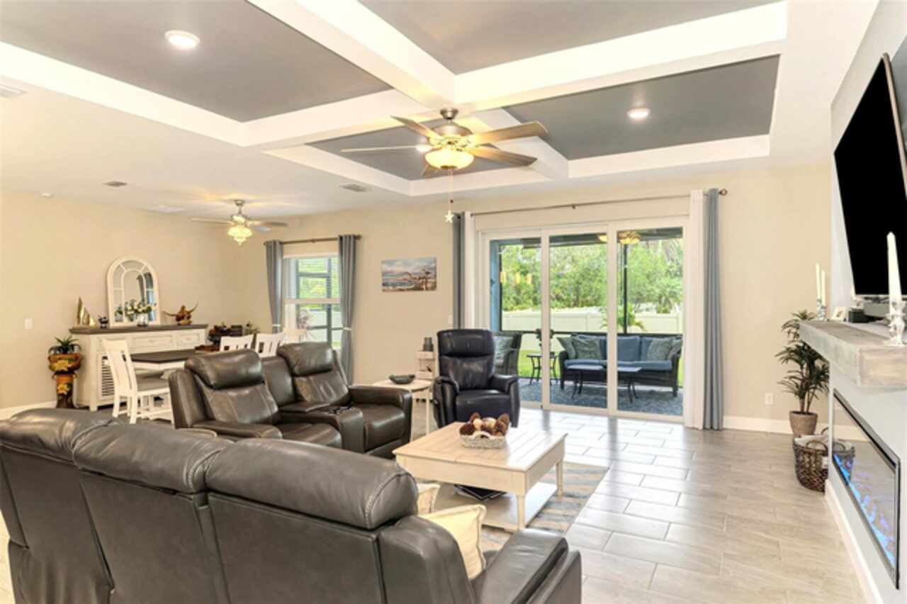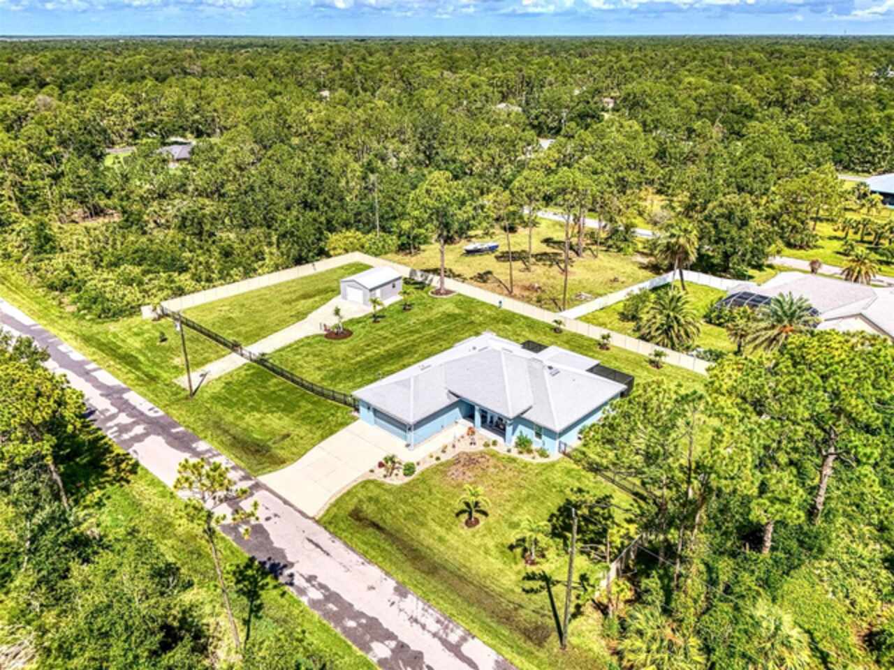Under contract-accepting backup offers. SPECTACULAR PRICE REDUCTION . . . Homebuyers Seeking a RECENTLY CONSTRUCTED, ELEGANT CUSTOM BUILT (2023) 3 Bedroom, 2 Bath + Den HOME with an OPEN FLOOR PLAN, HIGH CEILINGS and COFFERED Great Room Ceiling, PRIVACY, NO HOA FEES, NO CDD FEES . . . PLUS . . . Situated on a TRIPLE LOT HOMESITE Measuring (240'x145') Just Under One Acre of Land (.80 Acreage) . . . You Have Found What You've Been Looking for! This GEM has An ATTACHED OVER-SIZED 2-Car Garage (23'X21.8') Plus a DETACHED GARAGE (18'X26') with Electric, Lighting and Workshop Space. RV and BOAT Owners . . . Bring Them Here. . .You’ll have Plenty of Room to Park and Hook Up to the 50 Amp Pedestal. This Remarkable Property is TOTALLY FENCED for Pets and Play, with PRIVACY VINYL on Back and Sides with ALUMINUM FRONTAGE for Great Curb Appeal. A Modern COASTAL DESIGN and PREMIUM FEATURES Create a Home that Truly Stands Out. TOP-OF-THE-LINE LUXURY WHOLE-HOUSE ECO WATER REVERSE OSMOSIS SYSTEM Gives Peace-of-Mind for Cooking, Drinking Water and Showering for the Entire Family. When Inclement Weather Approaches, this Home has HURRICANE IMPACT WINDOWS, And, If You Lose Power, there’s a GENERATOR HOOK-UP. Relax in the Great Room with Family and Friends as You Gather Around the Touchstone Elite Electric Fireplace Providing (with Heater) an Ambient Atmosphere. A Dream GOURMET KITCHEN Features SMART OVENS, Soft-Close 42" Cabinets, Tiled Backsplash and SAMSUNG Appliances (2023) plus a Beautiful Stainless Range Hood are Showcased in the OPEN FLOOR PLAN with an OVER-SIZED GRANITE Kitchen Island and a Coffee Bar. Upgraded PORCELAIN TILE Throughout ALL Public Rooms and LUXURY VINYL FLOORING in ALL Bedrooms and the Den/Study Makes Vacuuming a Breeze. For the Pets in Your Family, Bath Time is Stressless, as the Laundry Room has a Pet-Friendly TILED-WALK-IN SHOWER. . . Washup After Working in the Yard, or a Day at the Beach. A Security System is Also On-Site. Conveniently Located within Minutes of Shopping, Dining, Entertainment, Medical Facilities and Sports Venues. This EXCEPTIONAL OPPORTUNITY Awaits Those Who Want SPACE and PRIVACY, INDEPENDENCE and EVERYTHING COMPLETED to Begin Enjoying the Endless Possibilities of Keeping All of Your "Toys" with You! Call to See this AMAZING HOME and PROPERTY Today and Make It Your Own.