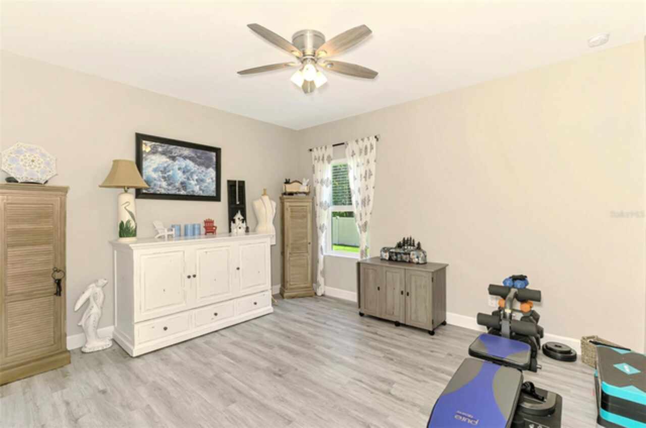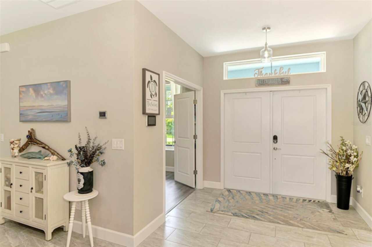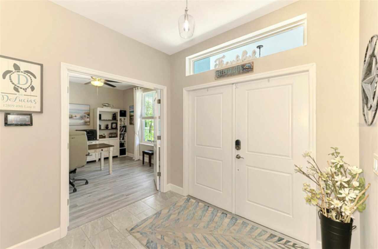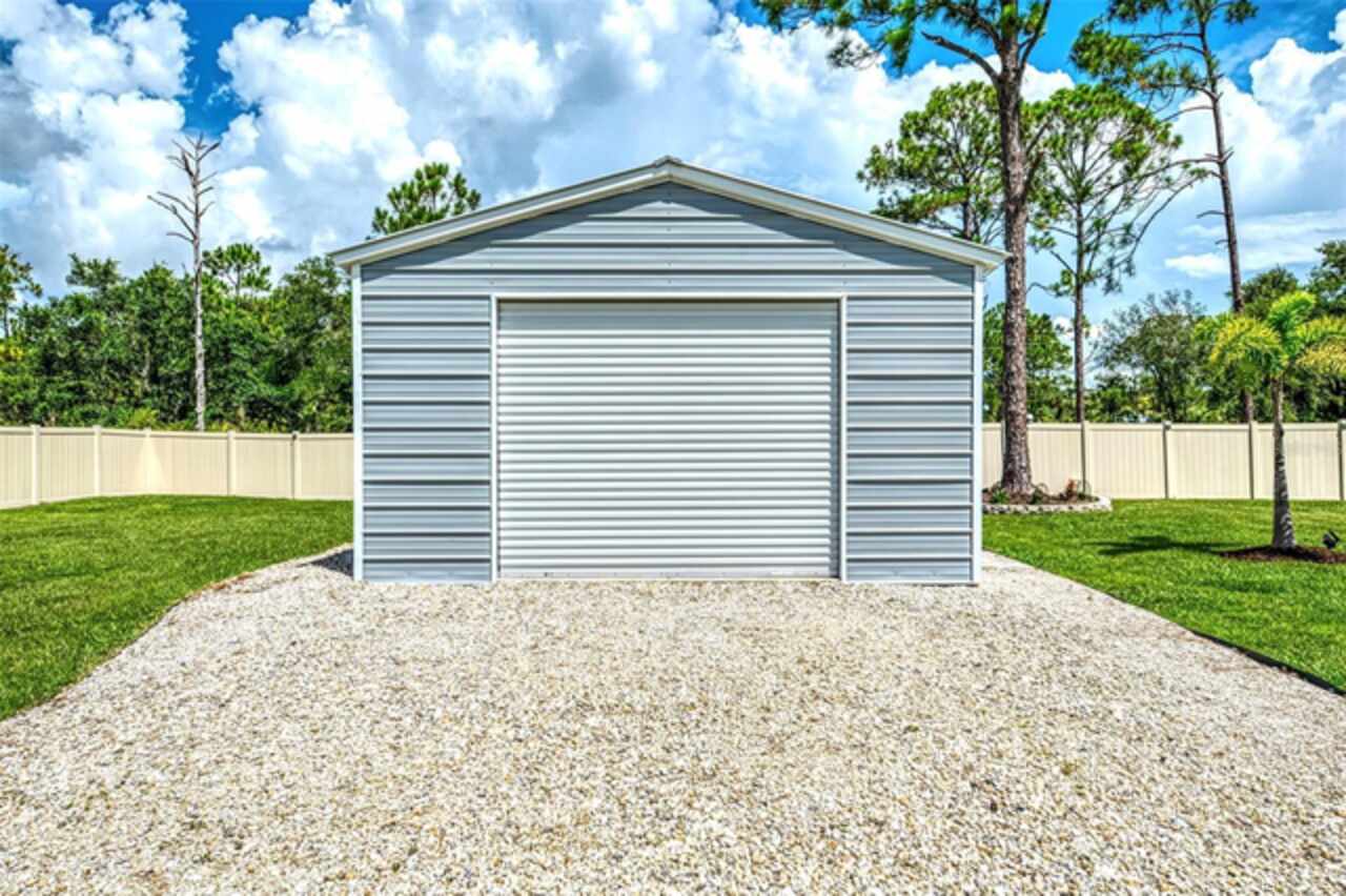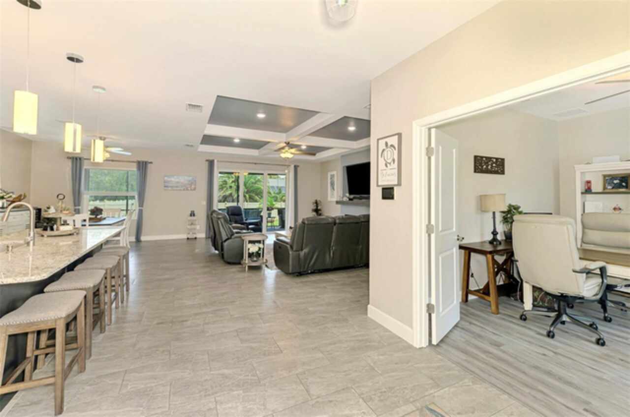 Under contract-accepting backup offers. SPECTACULAR PRICE REDUCTION . . . Homebuyers Seeking a RECENTLY CONSTRUCTED, ELEGANT CUSTOM BUILT (2023) 3 Bedroom, 2 Bath + Den HOME with an OPEN FLOOR PLAN, HIGH CEILINGS and COFFERED Great Room Ceiling, PRIVACY, NO HOA FEES, NO CDD FEES . . . PLUS . . . Situated on a TRIPLE LOT HOMESITE Measuring (240'x145') Just Under One Acre of Land (.80 Acreage) . . . You Have Found What You've Been Looking for! This GEM has An ATTACHED OVER-SIZED 2-Car Garage (23'X21.8') Plus a DETACHED GARAGE (18'X26') with Electric, Lighting and Workshop Space. RV and BOAT Owners . . . Bring Them Here. . .You’ll have Plenty of Room to Park and Hook Up to the 50 Amp Pedestal. This Remarkable Property is TOTALLY FENCED for Pets and Play, with PRIVACY VINYL on Back and Sides with ALUMINUM FRONTAGE for Great Curb Appeal. A Modern COASTAL DESIGN and PREMIUM FEATURES Create a Home that Truly Stands Out. TOP-OF-THE-LINE LUXURY WHOLE-HOUSE ECO WATER REVERSE OSMOSIS SYSTEM Gives Peace-of-Mind for Cooking, Drinking Water and Showering for the Entire Family. When Inclement Weather Approaches, this Home has HURRICANE IMPACT WINDOWS, And, If You Lose Power, there’s a GENERATOR HOOK-UP. Relax in the Great Room with Family and Friends as You Gather Around the Touchstone Elite Electric Fireplace Providing (with Heater) an Ambient Atmosphere. A Dream GOURMET KITCHEN Features SMART OVENS, Soft-Close 42" Cabinets, Tiled Backsplash and SAMSUNG Appliances (2023) plus a Beautiful Stainless Range Hood are Showcased in the OPEN FLOOR PLAN with an OVER-SIZED GRANITE Kitchen Island and a Coffee Bar. Upgraded PORCELAIN TILE Throughout ALL Public Rooms and LUXURY VINYL FLOORING in ALL Bedrooms and the Den/Study Makes Vacuuming a Breeze. For the Pets in Your Family, Bath Time is Stressless, as the Laundry Room has a Pet-Friendly TILED-WALK-IN SHOWER. . . Washup After Working in the Yard, or a Day at the Beach. A Security System is Also On-Site. Conveniently Located within Minutes of Shopping, Dining, Entertainment, Medical Facilities and Sports Venues. This EXCEPTIONAL OPPORTUNITY Awaits Those Who Want SPACE and PRIVACY, INDEPENDENCE and EVERYTHING COMPLETED to Begin Enjoying the Endless Possibilities of Keeping All of Your "Toys" with You! Call to See this AMAZING HOME and PROPERTY Today and Make It Your Own.