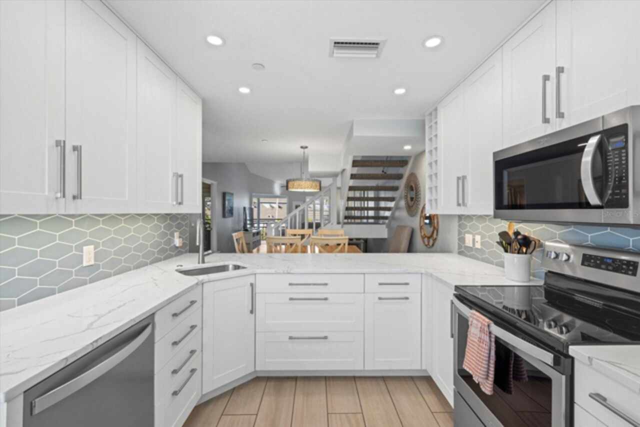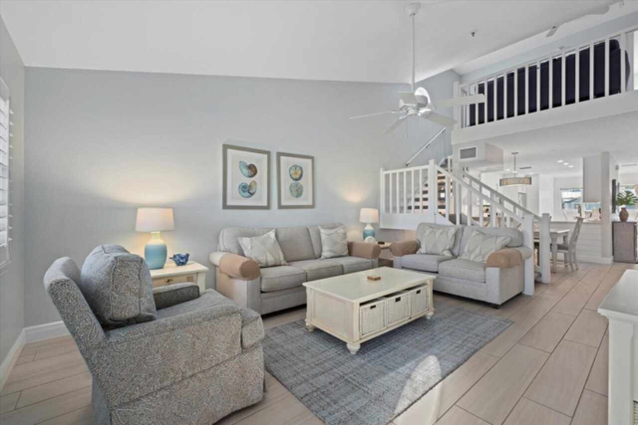 Price Reduction! An amazing year-round residence, vacation or investment property! Don't miss this rare opportunity to own a beautifully furnished 3-bedroom, 2-bath + loft unit just steps from world-renowned Siesta Beach with dedicated beach access. Recently renovated, this turnkey residence features a bright open floor plan with wood-look tile, shiplap accents, and raised ceilings in the hallways, kitchen and dining areas, a rare update in the community. The kitchen boasts solid wood cabinetry, quartz countertops, stainless appliances, and a charming, windowed breakfast nook. Enjoy multiple dining options including a formal area, bar, and a glass-enclosed lanai, perfect for entertaining. The spacious primary suite opens to a Florida room overlooking a serene pond and wildlife, with a renovated ensuite featuring dual sinks, walk-in shower, abundant storage, and a large closet. Upstairs includes a versatile loft, two guest bedrooms, and a full bath. Relax on the inviting front porch with views of Siesta’s iconic sunrises and sunsets. Additional perks include a one-car garage, private driveway, and in-unit laundry. Located in Gulf & Bay Club Bayside, a gated community with resort-style amenities: two pools, tennis/pickleball courts, clubhouse, fitness center, sauna, fishing pier, walking paths, and BBQ areas. On-site management and a one-week rental minimum make this a standout investment property with strong income potential year-round. Season is almost here! Take advantage of immediate rental income for 2026 season with a fully booked schedule
