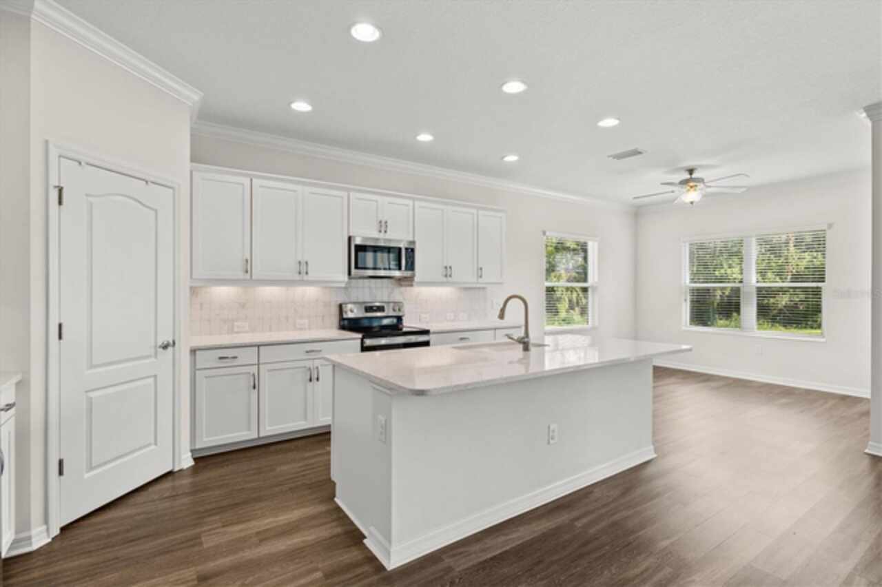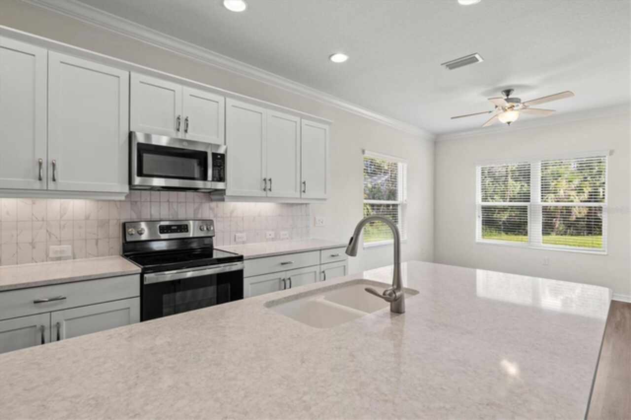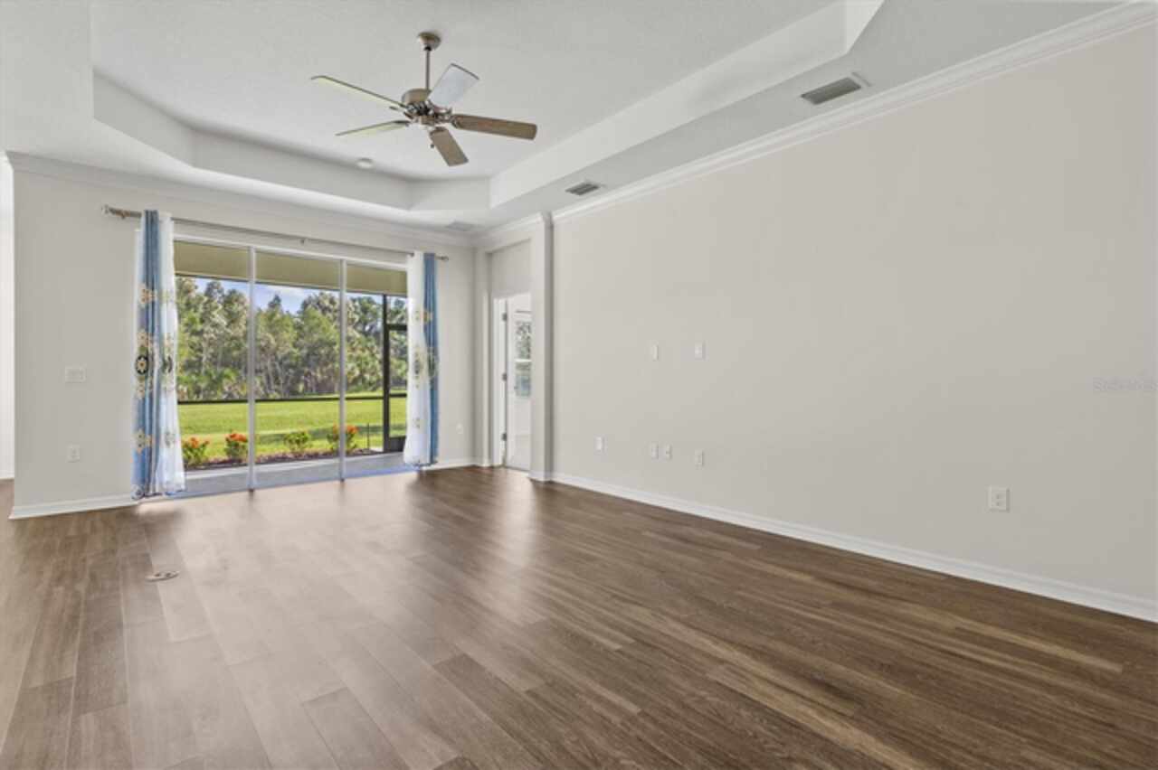 Welcome to Windwood, a gated Neal Communities neighborhood. This move-in ready Applause model has been thoughtfully designed by a certified interior designer with elegant touches throughout, including crown molding, tray ceilings, premium tile floors, plush bedroom carpeting, and designer lighting. The kitchen offers exceptional style and function with quartz countertops, stainless steel appliances, white shaker cabinets, and a premium vertical set backsplash—all complemented by a timeless neutral palette. Enjoy peaceful pond and nature views from both the living room and primary suite with no homes behind you for added privacy. Natural gas connections are already in place for a dryer, range, lanai grill, and water heater, adding to the home’s everyday conveniences. Perfectly situated, this home is just minutes to I-75, 5 miles from Nokomis Beach, and only 4 miles from the shops and restaurants on Venice Island—offering the best of Florida living right at your doorstep. This model-perfect residence is the ideal blend of comfort, privacy, and location—ready for you to call home!