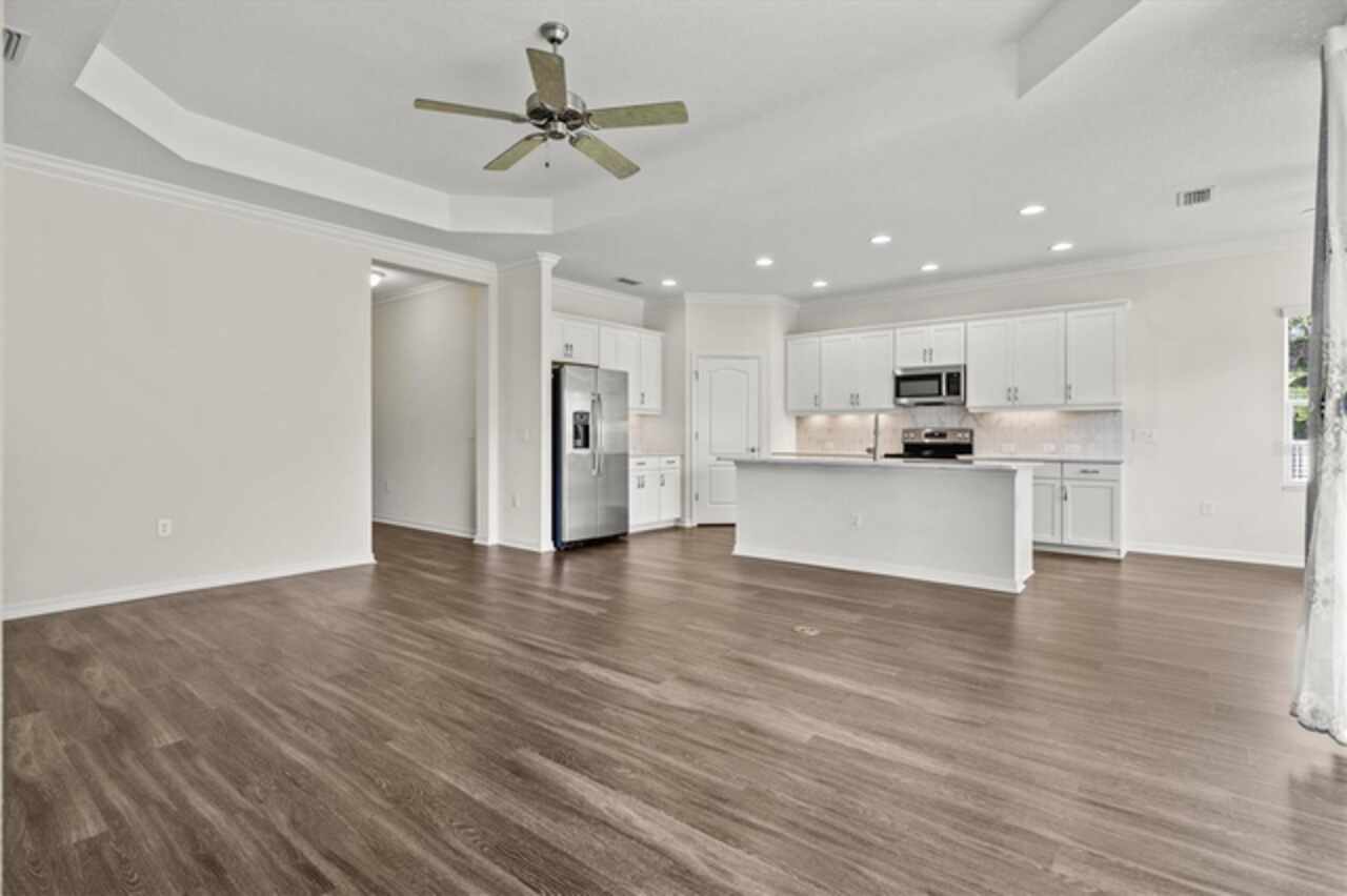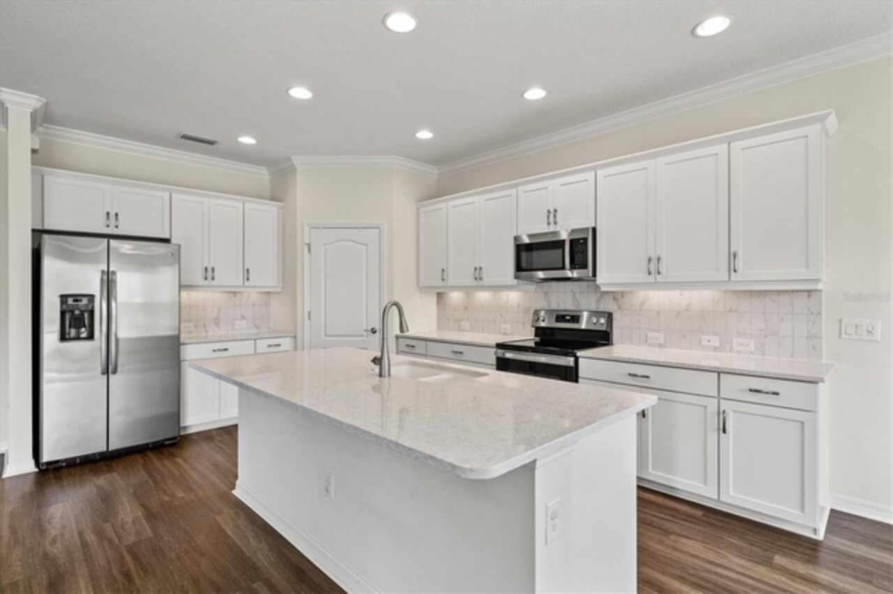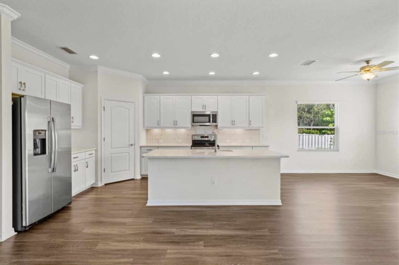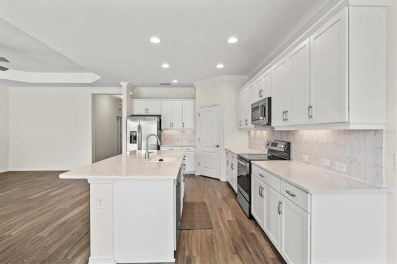 Welcome to Windwood, a gated Neal Communities neighborhood. This move-in ready Applause model has been thoughtfully designed by a certified interior designer with elegant touches throughout, including crown molding, tray ceilings, premium tile floors, plush bedroom carpeting, and designer lighting. The kitchen offers exceptional style and function with quartz countertops, stainless steel appliances, white shaker cabinets, and a premium vertical set backsplash—all complemented by a timeless neutral palette. Enjoy peaceful pond and nature views from both the living room and primary suite with no homes behind you for added privacy. Natural gas connections are already in place for a dryer, range, lanai grill, and water heater, adding to the home’s everyday conveniences. Perfectly situated, this home is just minutes to I-75, 5 miles from Nokomis Beach, and only 4 miles from the shops and restaurants on Venice Island—offering the best of Florida living right at your doorstep. This model-perfect residence is the ideal blend of comfort, privacy, and location—ready for you to call home!