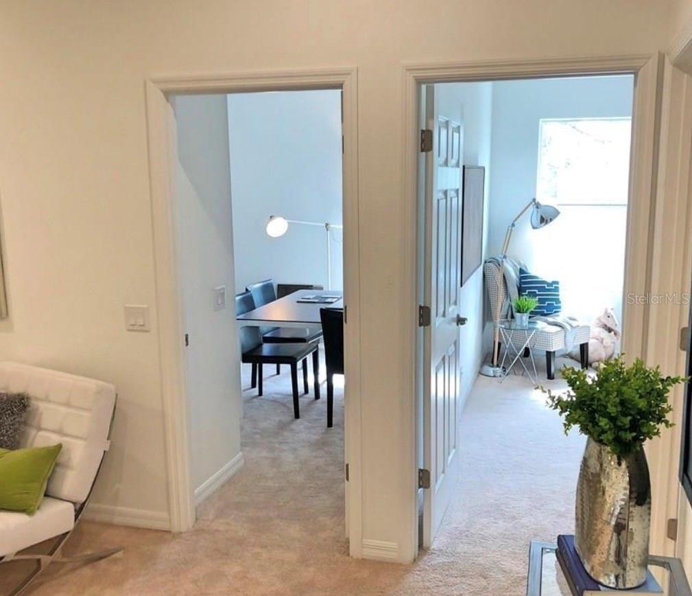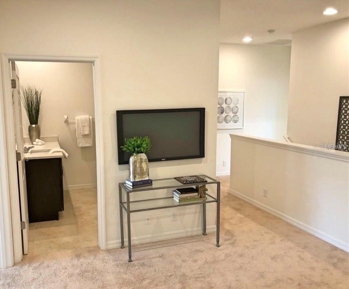 This property offers a spacious 3-bedroom, 2-bathroom unit with an additional bonus room, situated in a desirable cul-de-sac. The well-designed two-story layout includes an attached 2-car garage. Highlighting the home is the kitchen, featuring premium quartz countertops, stainless steel appliances, and upgraded 42-inch cabinets with soft-close drawers. A central island adds both functionality and style. The main living area boasts beautiful tile flooring, while the upper level offers plush carpeting Enjoy a private balcony and easy access to walking trails, parks, and playgrounds, enhancing the community feel. The property is conveniently located near major roadways, reflecting its prime location. Consider this property as your potential future home!