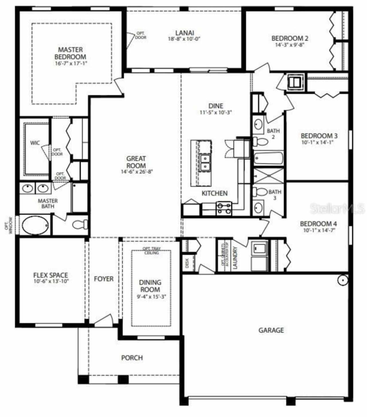 Pre-Construction. To be built. In Port Charlotte, located on Florida’s Gulf Coast and nestled along the Peace River and Charlotte Harbor, you’ll find a true paradise of fun and sun. This vibrant small city is full of life, offering endless opportunities to enjoy beautiful beaches, boating, golf, dining, live music, and festivals. The Sierra on a corner lot showcases thoughtful design and elegant details throughout. 9’4” ceilings, a foyer entry with a tray ceiling, and crown molding set the tone for sophistication. Ceramic tile flooring flows throughout the main living areas, with cozy carpet reserved for the bedrooms. As you enter, you’re greeted by a formal dining room with tray ceiling on one side and a versatile flex space on the other. The expansive Great Room seamlessly connects to the gourmet kitchen, complete with a full line of appliances including a built-in wall oven, creating a bright and inviting space ideal for entertaining. Just off the Great Room, a large screened-in lanai extends your living space outdoors, perfect for relaxation and gatherings. The private primary suite is tucked away at the back of the home, featuring an oversized walk-in closet and a deluxe bathroom retreat with a spacious tile-surround shower and dual vanities. On the opposite side of the home, three secondary bedrooms provide flexibility—two sharing a full bath, while the fourth enjoys its own private bath, ideal for family or guests. Just off the garage, a convenient walk-through leads to the laundry room, a desk area, and an additional closet, providing smart functionality for everyday living. This home also includes Smart Home features, such as a Ring Video Doorbell, Smart Thermostat, Keyless Entry Smart Door Lock, and Deako Switches for enhanced convenience and security. A three-car garage provides ample room for parking, storage, or even a workshop. With its thoughtful design and emphasis on comfort, the Sierra is the perfect place to embrace the best of Gulf Coast living—backed by the confidence of a full builder warranty.