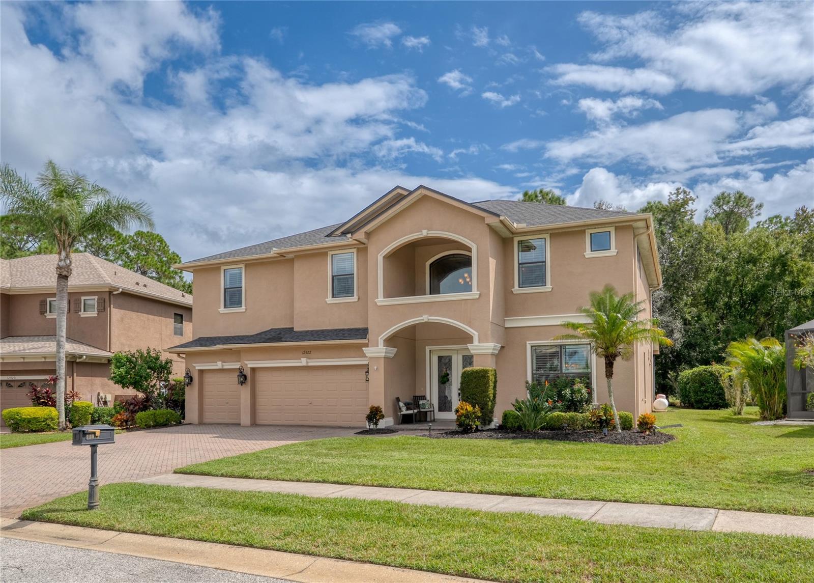One or more photo(s) has been virtually staged. The Kind of Home You Don't Find Twice There are houses, and then there are homes that make you rethink everything. This custom-built Larson home in The Eagles checks every single box—and a few you didn't even know you had. At 4, 109 square feet on a quiet, kid-friendly street overlooking the 5th hole of the Lakes Course, this isn't your typical Westchase-area home. Surrounded by mature trees that give you privacy from the course while still enjoying those serene golf views. The current owners have been here long-term. This has never been a rental. You can feel the difference the moment you walk in. Six bedrooms (five plus a huge bonus room with double closet—one already shelved), four full bathrooms, and a three-car garage. The split floor plan puts a full in-law suite on the first floor—perfect for guests, aging parents, or extra space everyone fights over. Walk in to a proper office and formal dining room with custom cabinetry and countertops. The family room sprawls out with crown molding throughout the entire first floor, and the gourmet kitchen is where this home shows off. Custom breakfast nook with movable granite-topped table, large custom pantry with pull-out drawers, newer dishwasher (2023), and a second pantry tucked under the staircase. Upstairs features a smart split layout with the master suite separate from the other bedrooms. The master is massive—a private sanctuary with dedicated sitting area, custom lighting, and tray ceiling with crown molding. Four generous secondary bedrooms share two full bathrooms (a Jack and Jill plus a second full bath), and every upstairs bedroom has walk-in closets, one with full custom closet systems. Second-floor laundry room means no hauling baskets. The bonus room works as media room, playroom, or whatever your family needs. The southeast-facing backyard features a Hayward saline saltwater pool heated by propane, lush landscaping, and mature trees creating a private oasis. Plenty of space for entertaining with peaceful golf course views. Roof replaced 2022. Five new windows November 2025. Water softener (2022). Plantation shutters throughout. Hurricane shutters stored in garage. Sprinkler system. Select furniture negotiable. HOA fees only $129/month with no CDD fees. At $268 per square foot for a custom-built home in a guard-gated golf community, the value is exceptional. The Eagles offers 24/7 security, two championship golf courses, clubhouse with restaurant, playground, basketball courts, tennis and pickleball courts. Community hosts clubhouse events, festive golf cart parades for Halloween and holidays, and an annual garage sale. Zoned for highly-rated Mary Bryant Elementary, Farnell Middle, and Sickles High School. Minutes to Racetrack Road, Tampa International Airport, and Florida's beaches. This home has been meticulously maintained and is ready for its next chapter. The question is: is that your chapter?