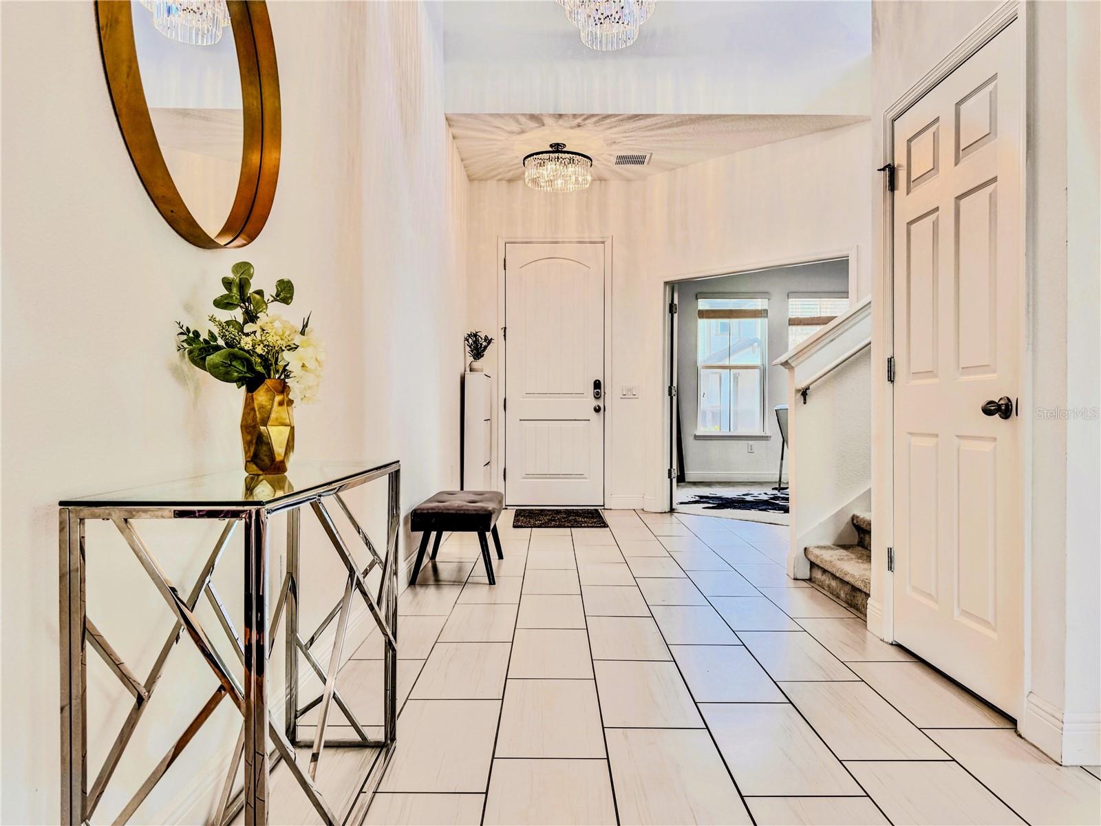 Experience the elegance of Westside Village in Windermere, where timeless design meets modern luxury. This five-bedroom, four-bath residence spans 3, 717 square feet of thoughtfully designed living space, built in 2018. The foyer welcomes you with porcelain tile floors, vaulted ceilings, and chandelier lighting that set a tone of quiet sophistication. French doors open to a versatile home office, while the formal dining room with tray ceiling creates the perfect setting for gatherings. The open-concept great room connects seamlessly to the chef's kitchen featuring a butler's pantry, premium finishes, and expansive sightlines. Enjoy peaceful water and fountain views, or open the sliding glass doors to the covered lanai, ideal for relaxing under the Disney fireworks. The owner's suite offers a serene retreat with natural light, spa-inspired bath with soaking tub, dual vanities, and a spacious walk-in closet. Upstairs, a generous loft provides flexible living for media, games, or study, while each bedroom includes a walk-in closet with a private sink. Designed for efficiency and comfort, this home features dual AC systems, a whole-house dehumidifier, and dual-pane storm windows. Residents enjoy resort-style amenities a community pool, walking trails, and parks within the sought-after Windermere school district, just minutes from dining, shopping, and Disney.