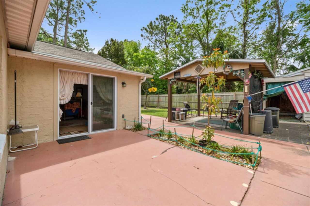 Spacious and well-maintained 3-bedroom, 2-bath home with 1, 896 sq. ft. of living space! Enjoy Florida living with an electric pull-up garage screen (installed 2022), and a Florida room for extra relaxation. The kitchen boasts granite countertops, oak cabinets, a pantry, and a fire door (2021) leading to the garage. The owner’s suite features a 10x10 walk-in closet, a Jacuzzi tub, and a separate tub/shower. Recent upgrades include a new roof and skylight (2021), , a water heater and shower valve (2022), and a generator outlet (2024). The guest bath offers a tiled shower, and window balances and sash slides were updated in 2021. Vaulted ceilings enhance the spacious feel of this home. The garage has a new LiftMaster opener, door, and cables (2022).Air conditioning unit newly installed as of June 2025, with a 10-year warranty included. Step outside to a beautifully landscaped yard with a 10x10 gazebo, an oversized shed, and two extra gates on the fenced backyard. Plus, a well for keeping the yard green! This home is high and dry! Close to the beach, stores, schools and the many miles of walking paths throughout Palm Coast. Don’t miss out on this gem!