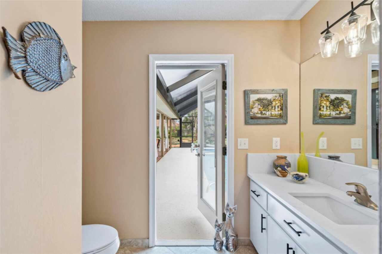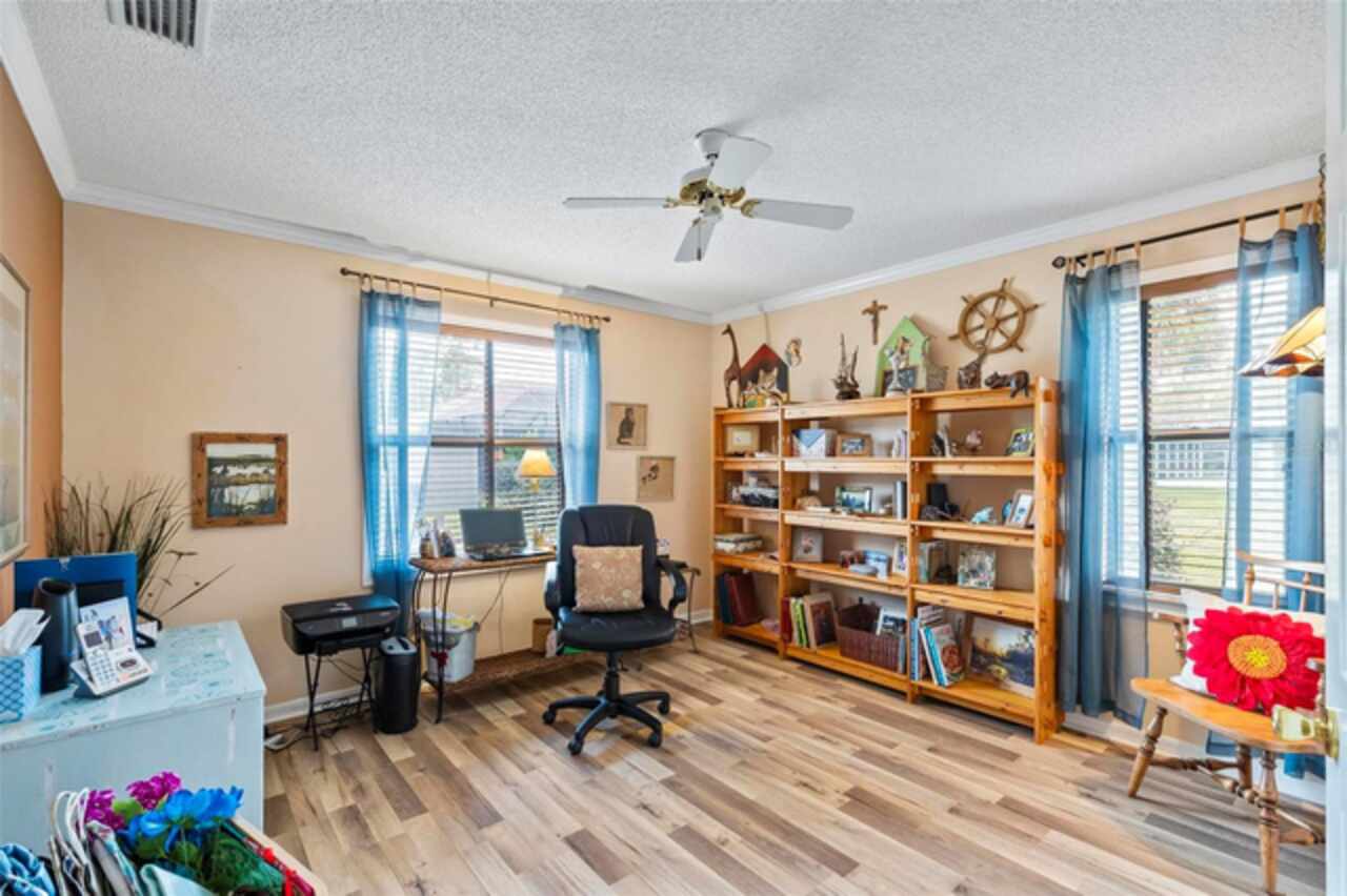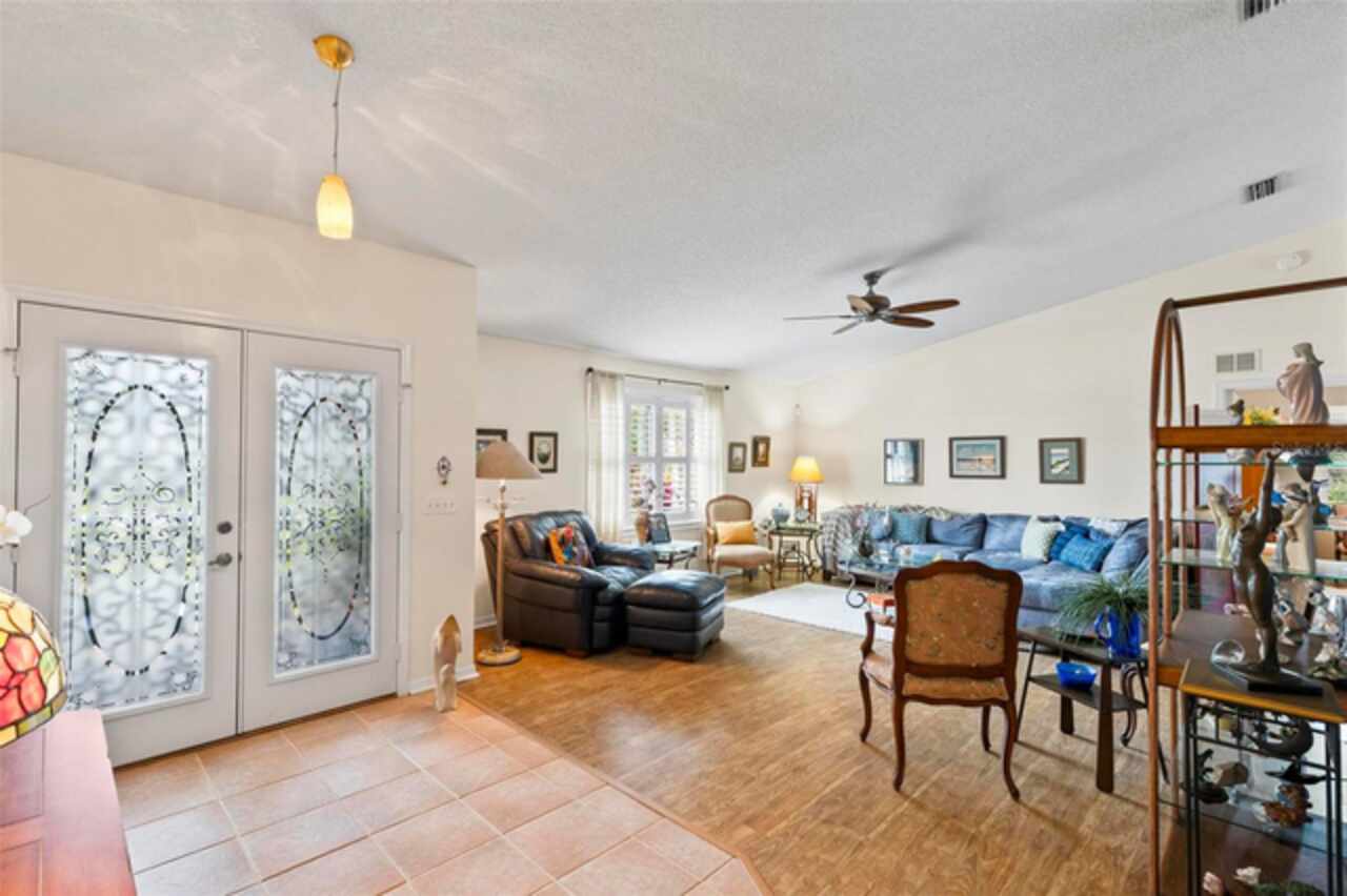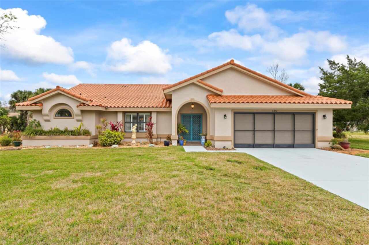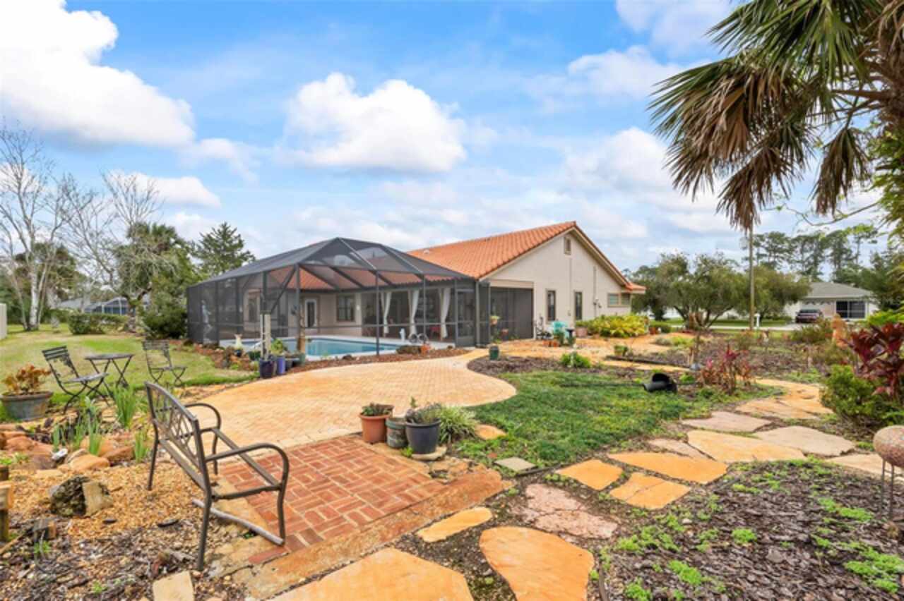 This well-appointed pool home sits on a beautifully landscaped lot and boasts a new tiled roof (Oct '24). The covered front door leads to a generous entry hall and large living room with bright windows to the front and a formal dining room opening to the pool deck. The centrally located kitchen opens to the dining room and den. Convenient pass-throughs to the breakfast area and the lanai make entertaining a cinch. Relax in front of the den's wood-burning fireplace or prepare a tasty drink at the built-in wet bar. The spacious Primary Suite, with two closets, benefits from the split-plan privacy. On the opposite side of the home are two oversized secondary bedrooms, and a full bathroom that opens to the pool. The recently screened lanai has a convenient wet bar and generous covered area. Enjoy exercising or playing in the private 15x30ft pool. With too many custom features to mention... granite countertops, storage galore, tile & laminate flooring, oversized garage(23x25ft), irrigation on well, .... this home is definitely worthy of your interest. Adjacent lot available. HVAC 06/19 Hot Water Heater 2024, Pool cage/screen 11/23, Pool Pump 11/23, 30’x15’ Pool relined 2020, Fenced along rear 2024, washer & dryer 3yrs old, refrigerator 2024