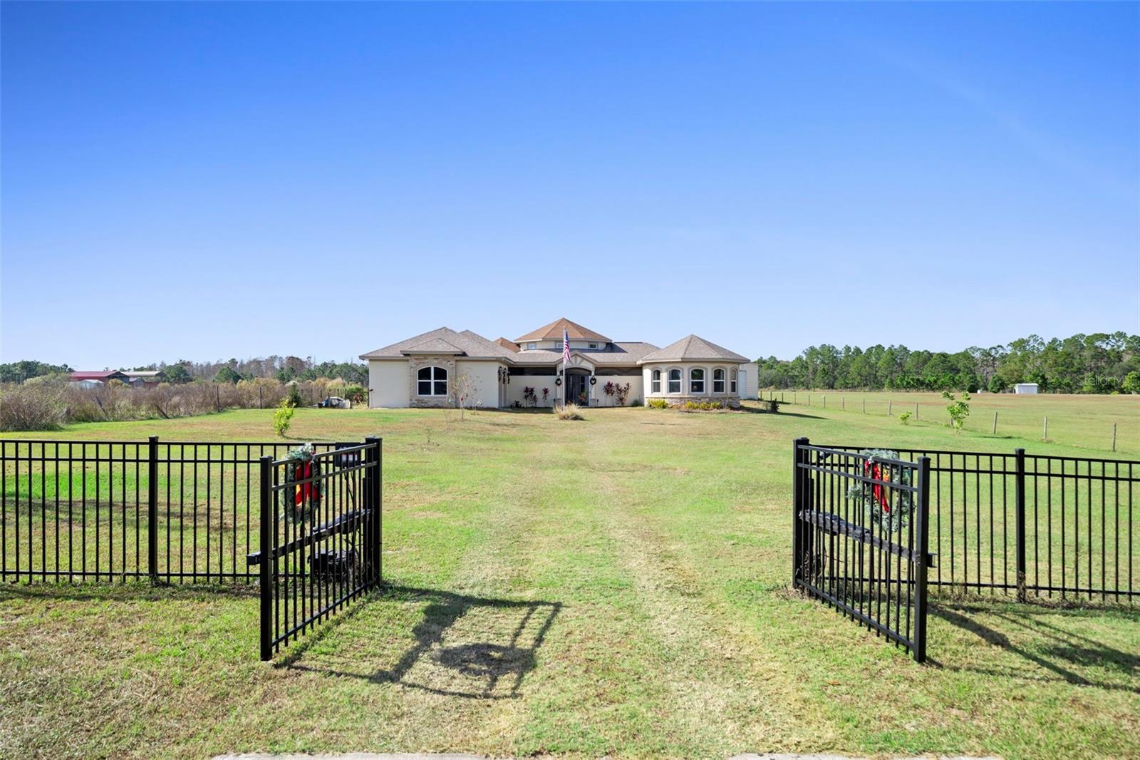 Step into unparalleled elegance with this stunning 2019-built estate, perfectly harmonizing luxury, privacy, and convenience. Boasting 4 spacious bedrooms and 4 sumptuous bathrooms, this residence offers 3, 489 square feet of thoughtfully designed living space, including a private in-law suite ideal for extended family or guests seeking serene accommodations. Marvel at the soaring high ceilings that create an airy, grand ambiance, complemented by expansive walk-in closets in every bedroom, providing a perfect blend of form and function. The gourmet kitchen and living areas flow seamlessly to a screened porch, ideal for relaxing evenings or entertaining amidst the tranquility of your private grounds. Park with ease in the 2-car garage, and take advantage of additional storage in the backyard shed. Situated on a generously sized, gated parcel, this home affords the ultimate in privacy and peace, with acres of land for recreation, gardening, or simply enjoying nature. Nestled in a quiet, serene community, yet ideally located just a short drive from Disney World, this estate effortlessly combines resort-style living with practical convenience. Whether you seek a lavish family residence, a private retreat, or a statement home that exemplifies luxury Florida living, this property delivers beyond expectation. Experience sophistication, comfort, and a lifestyle of distinction—schedule your private tour today and envision your life in this magnificent Polk City estate.