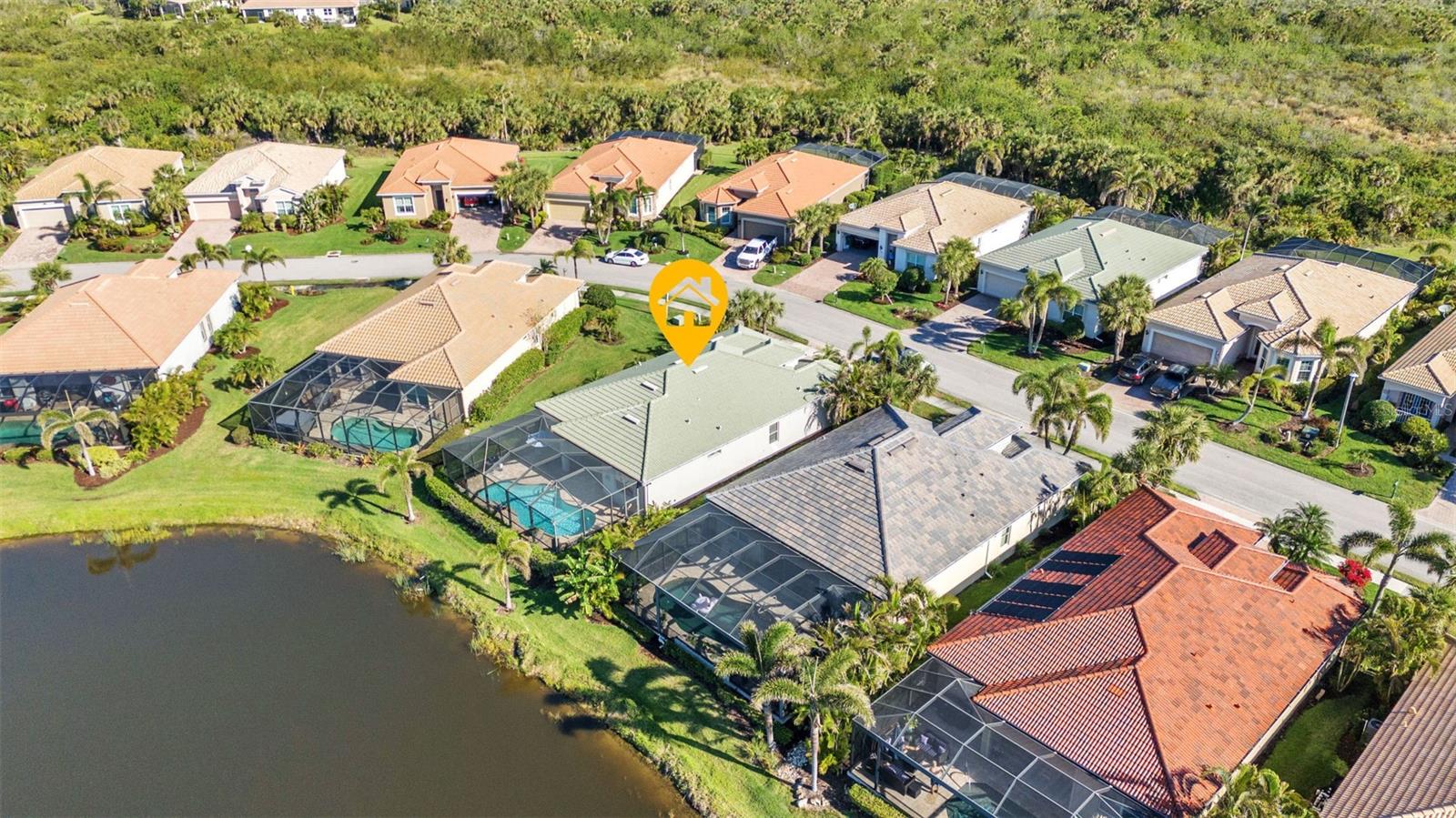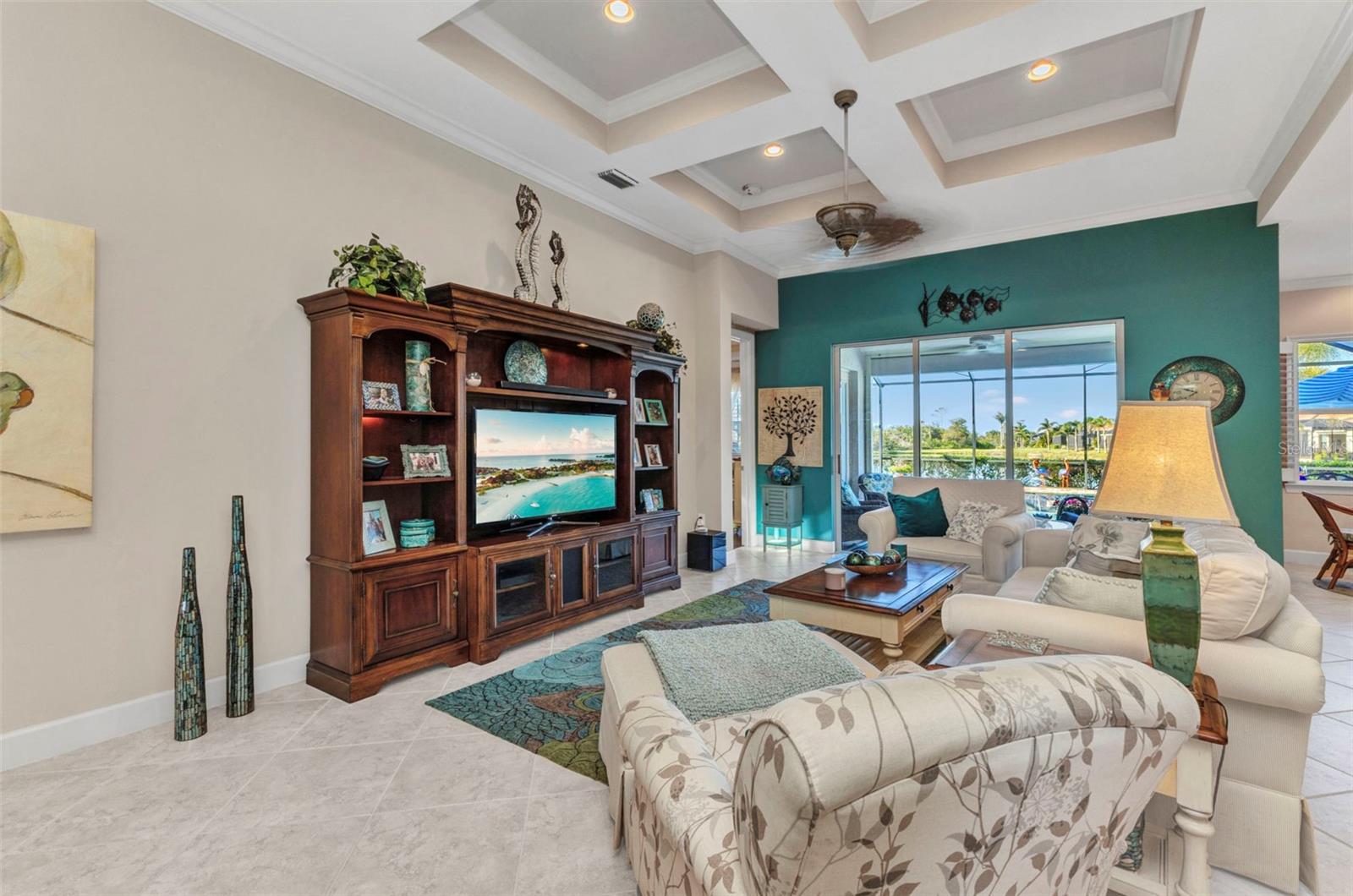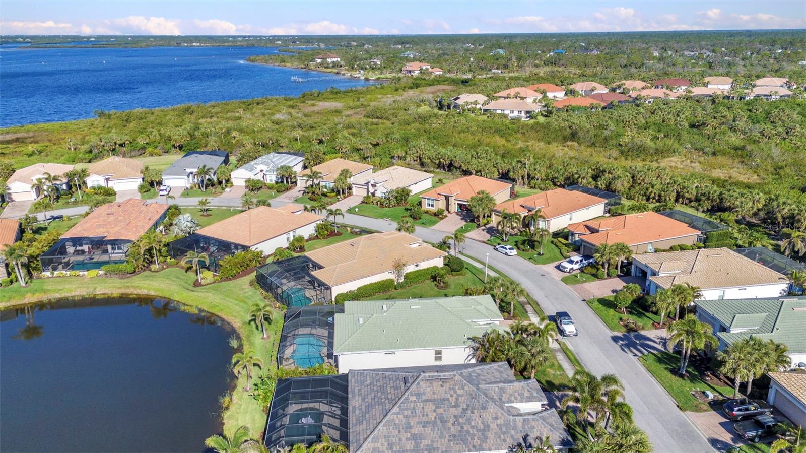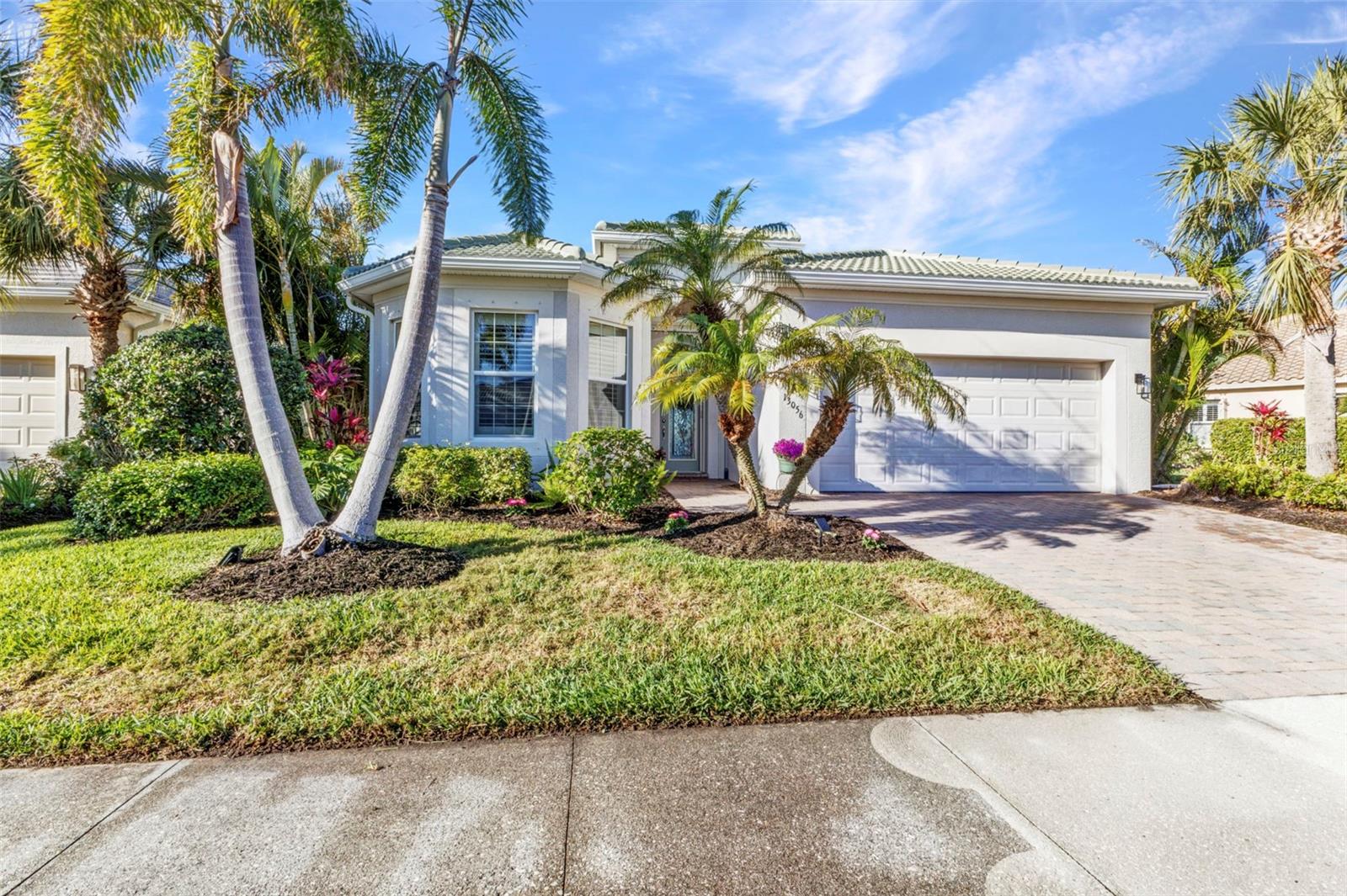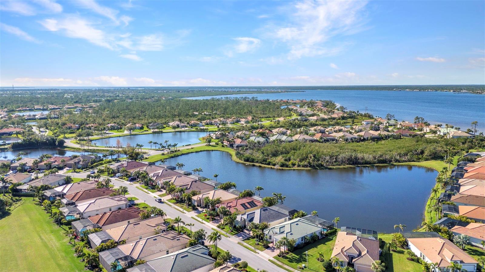 Under contract-accepting backup offers. Discover the finest in Florida living in this beautifully decorated 3-bedroom, 2-bath + office home situated in the sought-after gated golf course community of Riverwood. Overlooking a tranquil pond, this home greets you with a brick paver driveway and fresh coastal colors that establish a light and airy atmosphere throughout. Step inside to find ceramic tile flooring in the main living areas, while the bedrooms and office boast rich solid wood floors. Plantation shutters, crown molding, and a lovely tray ceiling in the living room enhance the open, split-bedroom floor plan. Sliding glass doors open to a spacious 26' x 40' brick lanai, where tranquil water views and a sparkling heated saltwater pool await. The soothing sound of the pool’s water feature adds to the relaxing atmosphere. Recent upgrades include a new pool heater and salt cell, ensuring worry-free enjoyment. Whether you're soaking up the sun or seeking shade, the electric awning has you covered, and the electric roll-down shutter on the lanai provides storm protection and peace of mind. Designed for easy entertaining, the kitchen opens directly to the living area and includes granite counters with a tile backsplash, solid wood soft-close cabinetry, stainless steel appliances, a breakfast bar, and a sunny dining nook. A spacious primary suite with a coffered ceiling and private access to the lanai is en suite, featuring dual sinks, a large tiled walk-in shower, and a generous walk-in closet. Two guest bedrooms and a full guest bath provide plenty of space for family and friends—one guest room even features a charming bay window! You’ll also appreciate the private office/den and the laundry room, with extra storage and a utility sink conveniently located off the kitchen. For added peace of mind, there’s an electric roll-down shutter at the front door, along with shutters for the rest of the home. A spacious 2-car garage completes the package, offering plenty of room for your vehicles and storage needs. Furnishings are negotiable outside of the contract, making this a truly move-in-ready opportunity. As a resident of the vibrant Riverwood community, you’ll enjoy resort-style amenities, including a par 72 championship golf course, a state-of-the-art fitness center, a resort-style pool, pickleball courts, and Har-Tru tennis courts. Just beyond your doorstep, take advantage of world-class fishing, boating, dining, shopping, and the pristine beaches of the Gulf of Mexico. Ideally situated between Sarasota and Ft. Myers on Florida’s scenic West Coast, Riverwood offers the perfect blend of relaxation and adventure. Don’t miss the opportunity to make this beautiful home your own! BEACH CLUB MEMBERSHIP AVAILIABLE!!
