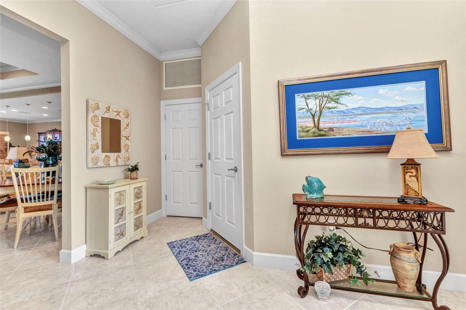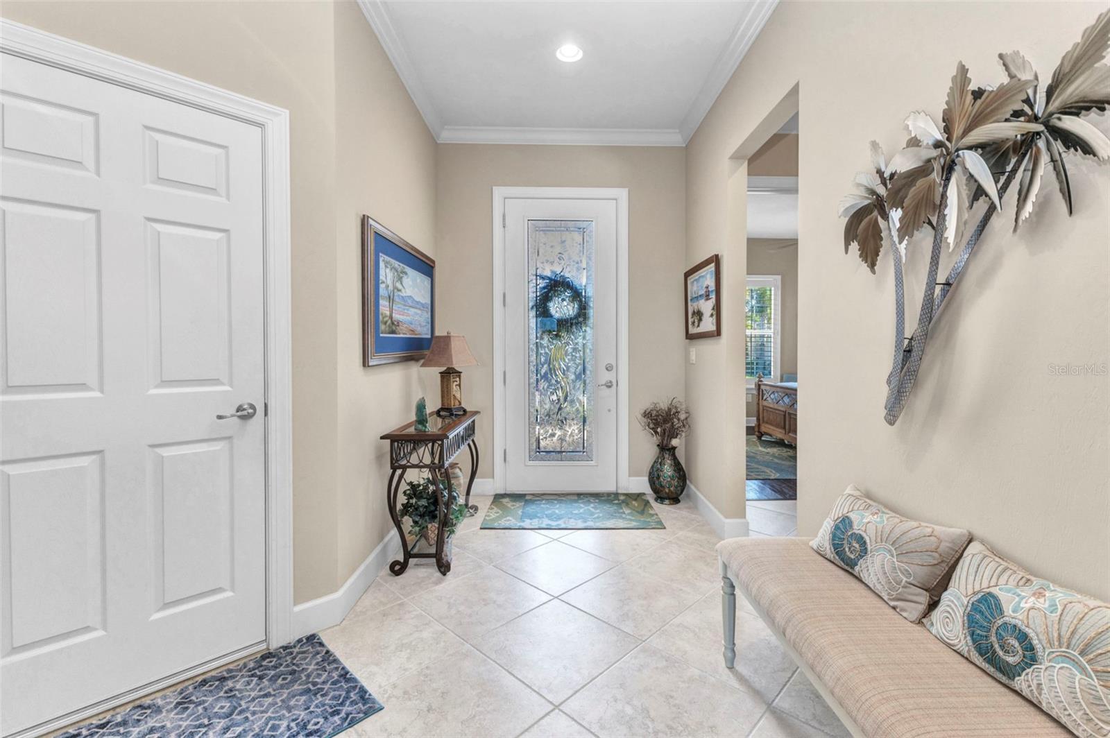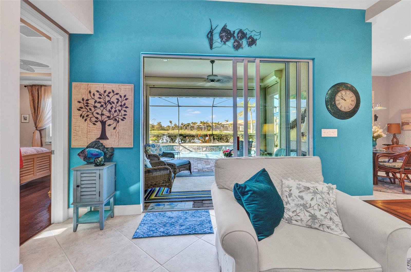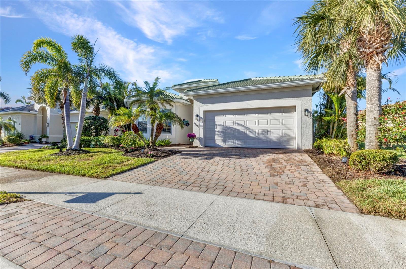 Under contract-accepting backup offers. Discover the finest in Florida living in this beautifully decorated 3-bedroom, 2-bath + office home situated in the sought-after gated golf course community of Riverwood. Overlooking a tranquil pond, this home greets you with a brick paver driveway and fresh coastal colors that establish a light and airy atmosphere throughout. Step inside to find ceramic tile flooring in the main living areas, while the bedrooms and office boast rich solid wood floors. Plantation shutters, crown molding, and a lovely tray ceiling in the living room enhance the open, split-bedroom floor plan. Sliding glass doors open to a spacious 26' x 40' brick lanai, where tranquil water views and a sparkling heated saltwater pool await. The soothing sound of the pool’s water feature adds to the relaxing atmosphere. Recent upgrades include a new pool heater and salt cell, ensuring worry-free enjoyment. Whether you're soaking up the sun or seeking shade, the electric awning has you covered, and the electric roll-down shutter on the lanai provides storm protection and peace of mind. Designed for easy entertaining, the kitchen opens directly to the living area and includes granite counters with a tile backsplash, solid wood soft-close cabinetry, stainless steel appliances, a breakfast bar, and a sunny dining nook. A spacious primary suite with a coffered ceiling and private access to the lanai is en suite, featuring dual sinks, a large tiled walk-in shower, and a generous walk-in closet. Two guest bedrooms and a full guest bath provide plenty of space for family and friends—one guest room even features a charming bay window! You’ll also appreciate the private office/den and the laundry room, with extra storage and a utility sink conveniently located off the kitchen. For added peace of mind, there’s an electric roll-down shutter at the front door, along with shutters for the rest of the home. A spacious 2-car garage completes the package, offering plenty of room for your vehicles and storage needs. Furnishings are negotiable outside of the contract, making this a truly move-in-ready opportunity. As a resident of the vibrant Riverwood community, you’ll enjoy resort-style amenities, including a par 72 championship golf course, a state-of-the-art fitness center, a resort-style pool, pickleball courts, and Har-Tru tennis courts. Just beyond your doorstep, take advantage of world-class fishing, boating, dining, shopping, and the pristine beaches of the Gulf of Mexico. Ideally situated between Sarasota and Ft. Myers on Florida’s scenic West Coast, Riverwood offers the perfect blend of relaxation and adventure. Don’t miss the opportunity to make this beautiful home your own! BEACH CLUB MEMBERSHIP AVAILIABLE!!