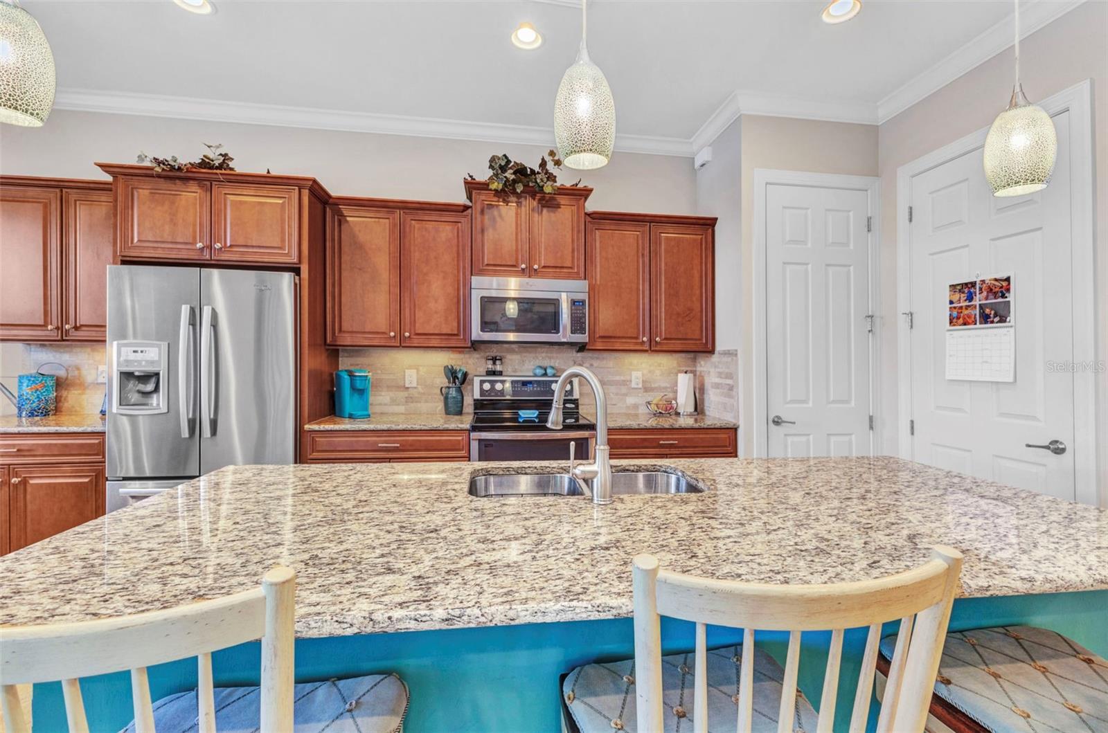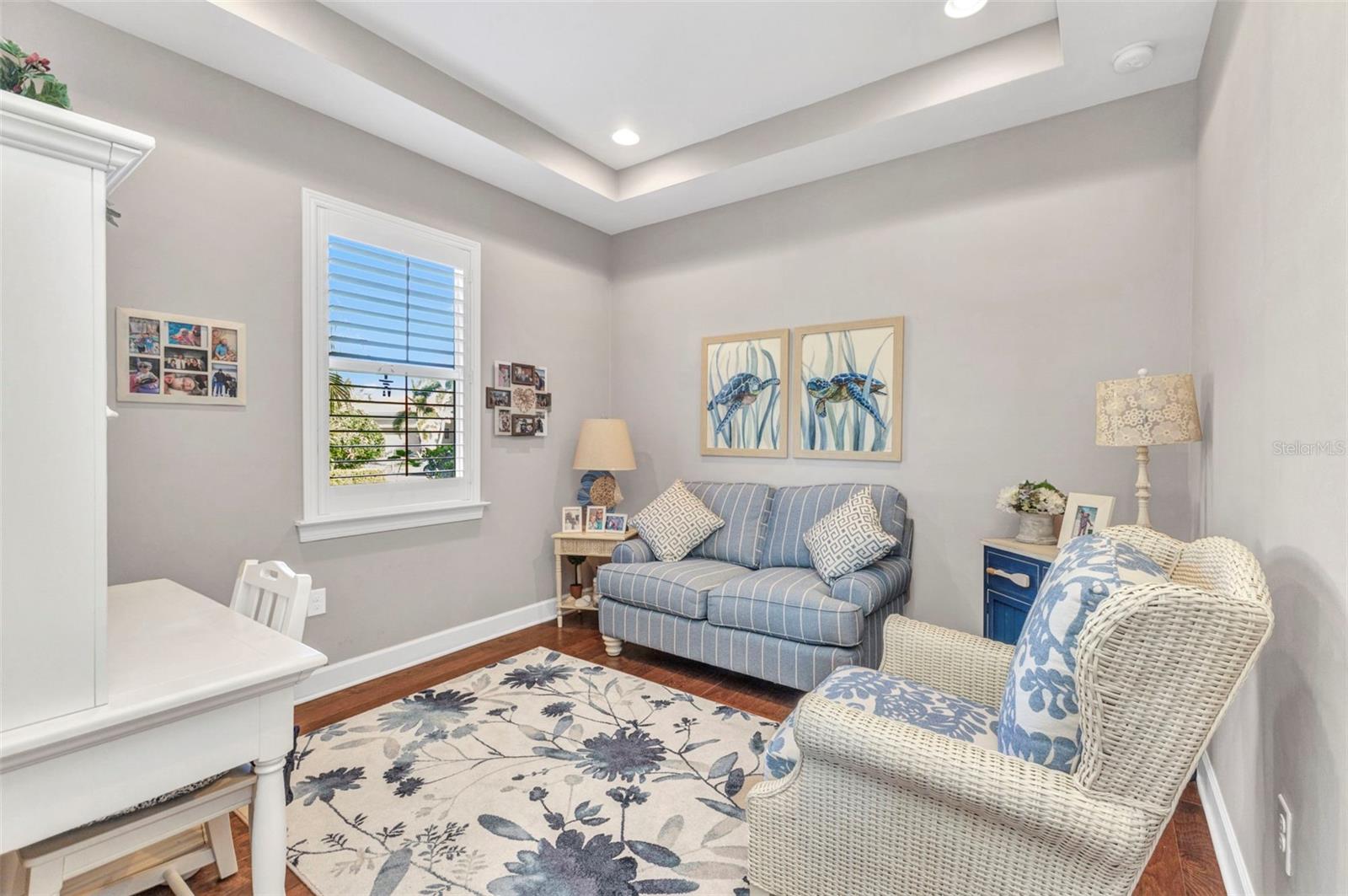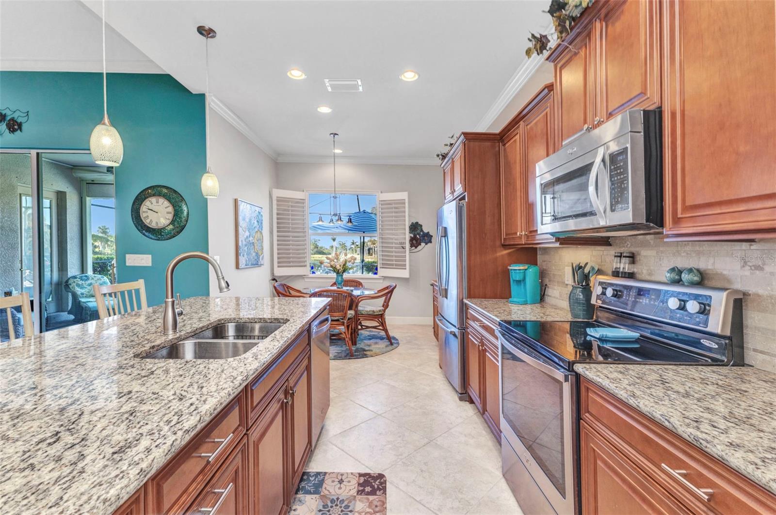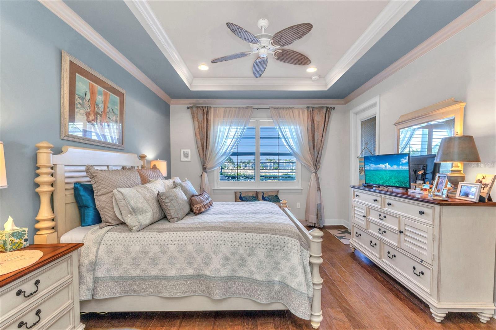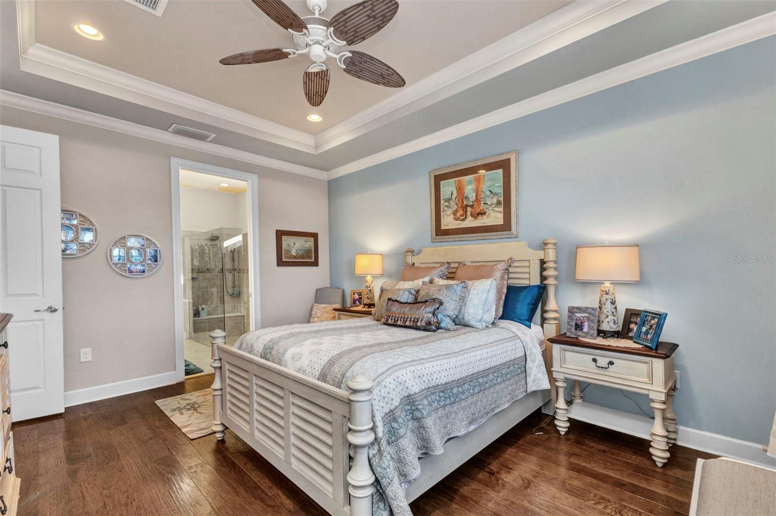 Ceiling Fans(s), Coffered Ceiling(s), Crown Molding, Eat-in Kitchen, Open Floorplan, Pest Guard System, Solid Wood Cabinets, Split Bedroom, Stone Counters, Tray Ceiling(s), Walk-In Closet(s)