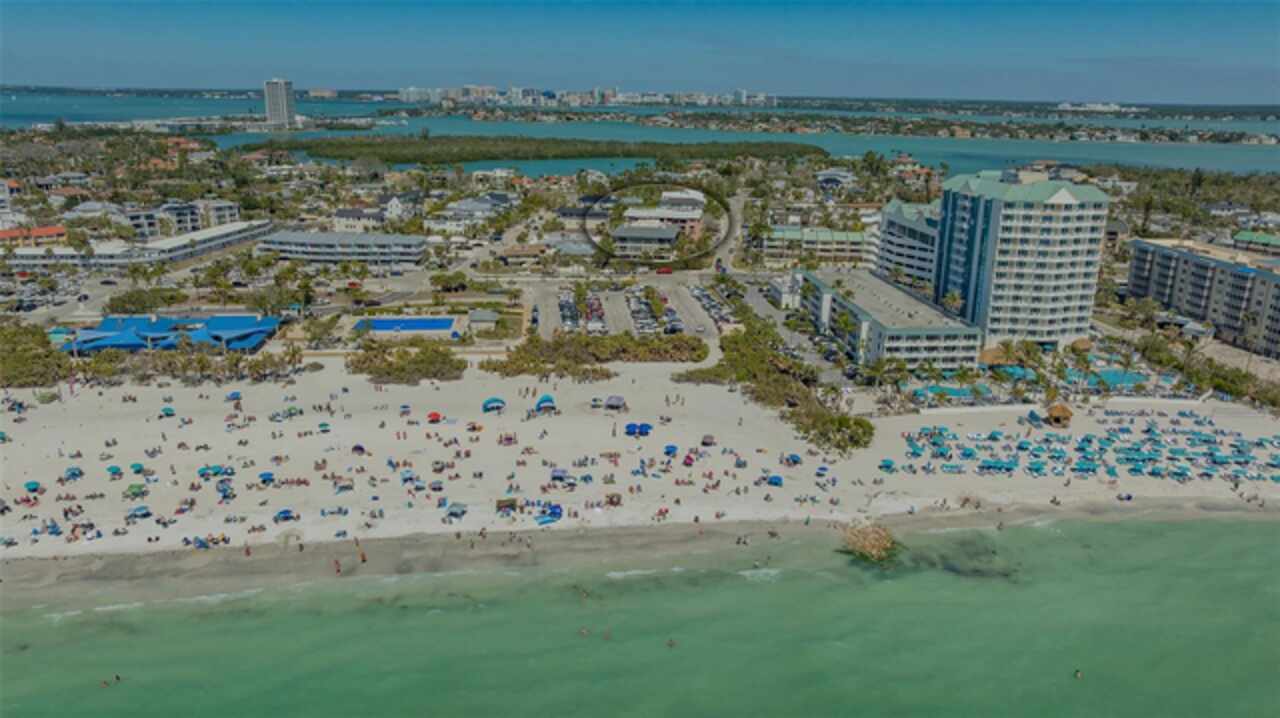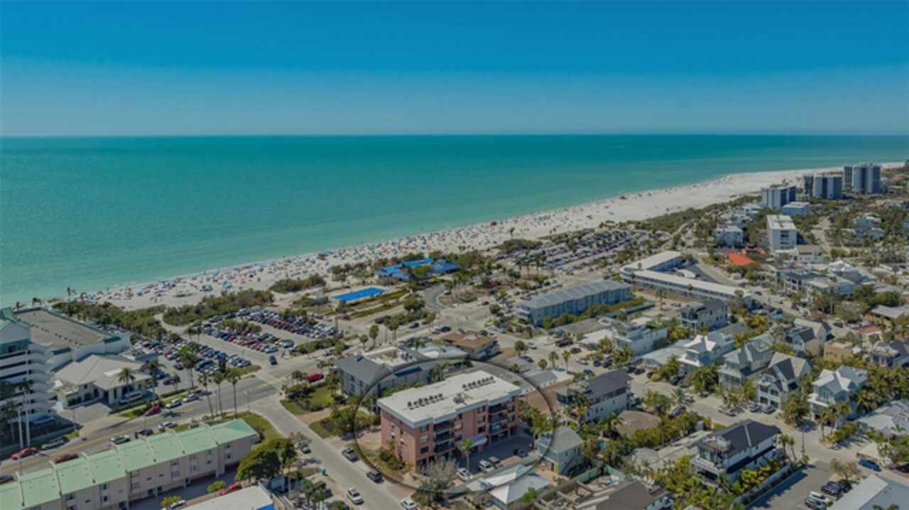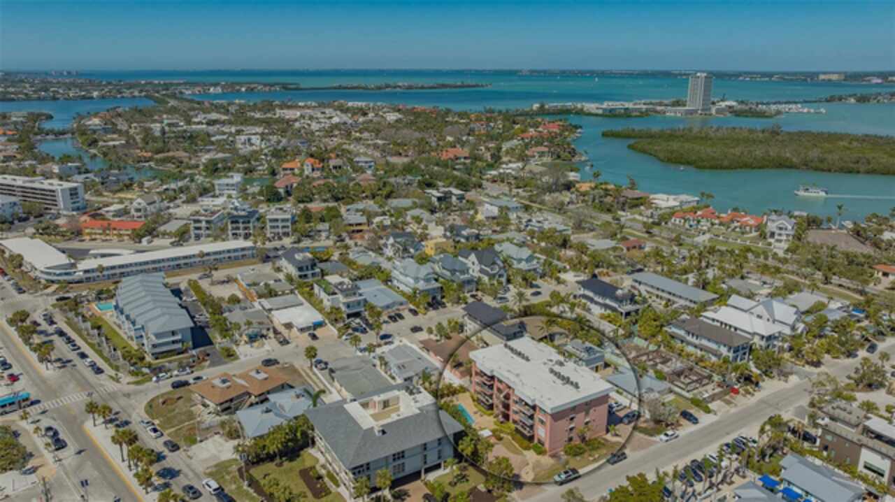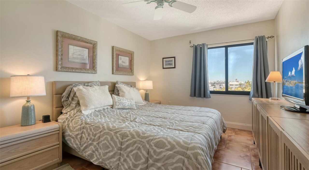 This bright and inviting 1, 200 sq. ft. condo is perched on the top fourth floor of the Riviera of Lido Beach, a charming 14-unit complex just steps from the powdery sand of Lido Beach. Large windows fill the space with natural light, while the private terrace offers picturesque city views and stunning sunrises. The updated kitchen features stone countertops and a breakfast bar, perfect for casual dining or entertaining. Both bedrooms offer private full bath access, and the in-unit laundry room adds extra convenience. The well-maintained complex includes a private pool, reserved parking with a storage closet, fenced grounds, and a generator for added peace of mind. Recent updates include hurricane rated windows and slider doors. Complex also has new entry doors. Located just across the street from Lido Beach, this condo offers easy access to sun and surf, while a nearby public kayak launch provides the perfect spot for water adventures. St. Armands Circle, known for its vibrant mix of dining, shopping, and entertainment, is just a short walk away. Downtown Sarasota, with its renowned arts scene and waterfront charm, is only a quick drive, along with Sarasota-Bradenton International Airport for added travel convenience. Experience the best of Lido Key living.