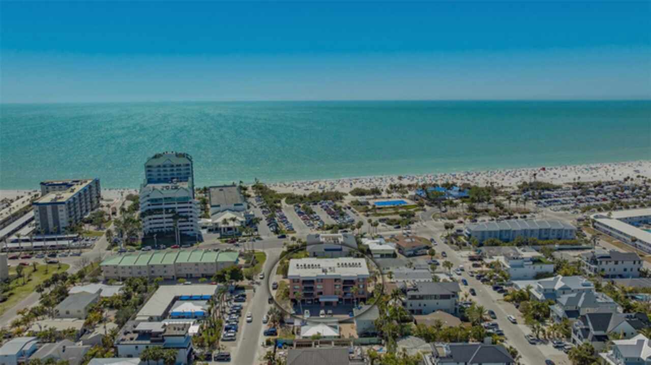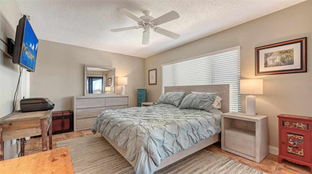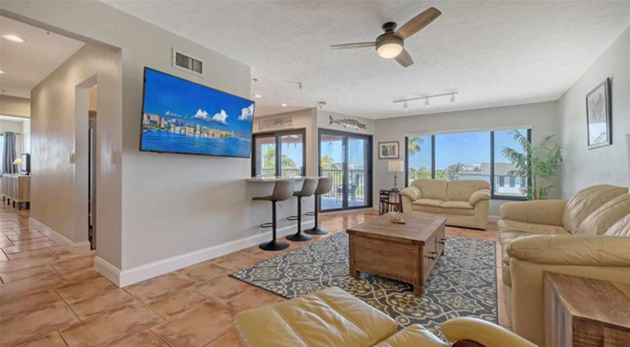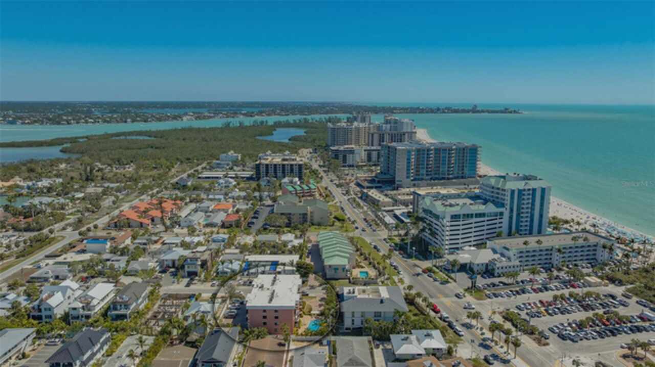 This bright and inviting 1, 200 sq. ft. condo is perched on the top fourth floor of the Riviera of Lido Beach, a charming 14-unit complex just steps from the powdery sand of Lido Beach. Large windows fill the space with natural light, while the private terrace offers picturesque city views and stunning sunrises. The updated kitchen features stone countertops and a breakfast bar, perfect for casual dining or entertaining. Both bedrooms offer private full bath access, and the in-unit laundry room adds extra convenience. The well-maintained complex includes a private pool, reserved parking with a storage closet, fenced grounds, and a generator for added peace of mind. Recent updates include hurricane rated windows and slider doors. Complex also has new entry doors. Located just across the street from Lido Beach, this condo offers easy access to sun and surf, while a nearby public kayak launch provides the perfect spot for water adventures. St. Armands Circle, known for its vibrant mix of dining, shopping, and entertainment, is just a short walk away. Downtown Sarasota, with its renowned arts scene and waterfront charm, is only a quick drive, along with Sarasota-Bradenton International Airport for added travel convenience. Experience the best of Lido Key living.