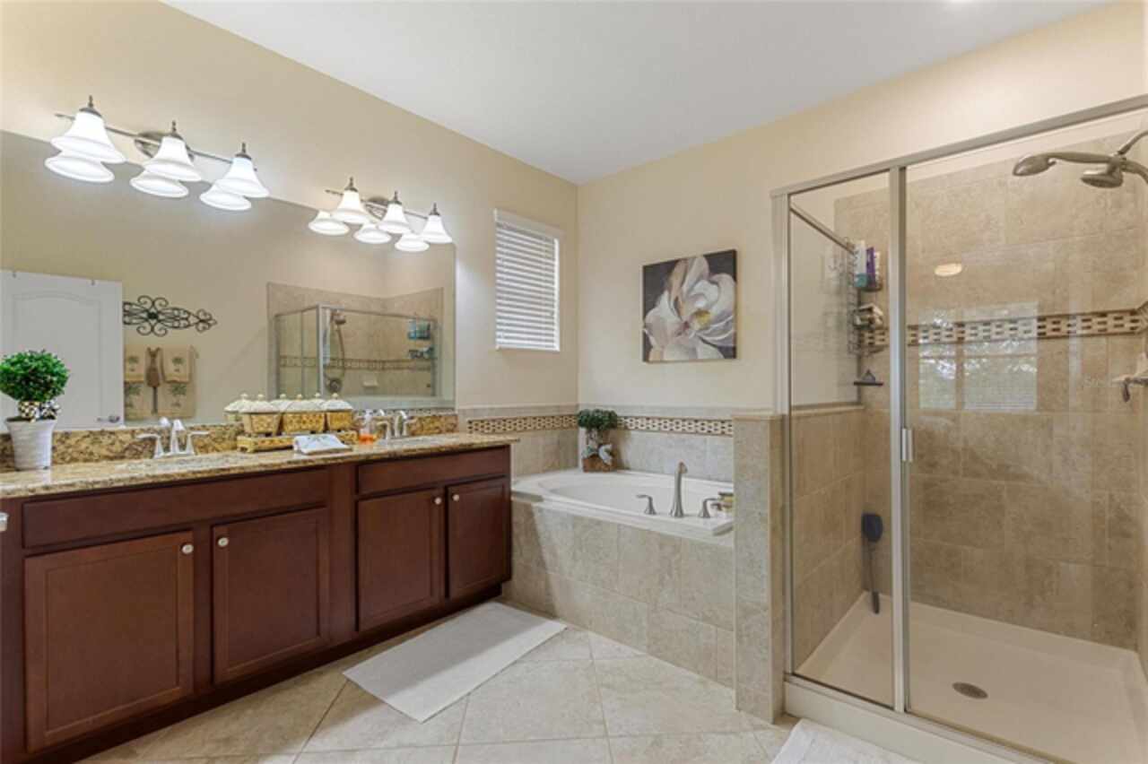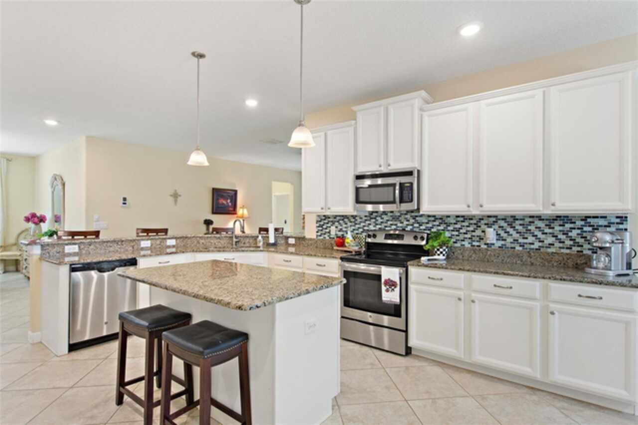 FULL GOLF & TENNIS MEMBERSHIP INCLUDED with your HOA! Live like a champion in this beautifully maintained 4-bedroom, 3-bath home with a spacious 3-car garage, ideally located in the highly sought-after Phase 1 of ChampionsGate Country Club. From the moment you arrive, pride of ownership is evident. This light-filled, move-in-ready home features an open-concept layout designed for effortless living and entertaining. The chef’s kitchen is a dream come true, boasting granite countertops, 42” solid wood cabinetry, and diagonally laid 18” tile flooring throughout the main living areas. The luxurious primary suite offers a spa-like retreat with dual vanities, a soaking tub, and a walk-in shower. Relax on your east-facing screened lanai, the perfect spot to enjoy rocket launches, hot air balloons, and evening fireworks. Professionally landscaped grounds add to the home’s impressive curb appeal. Perfectly positioned just steps away from The Plaza and a short walk to the golf course and Oasis Club, this home offers unmatched access to world-class amenities. The Oasis Club is a private 14, 000+ sq ft clubhouse featuring a restaurant, bar, lazy river, movie theater, waterslide, fitness center, game room, and more. Homeowners also enjoy exclusive access to The Plaza’s private clubhouse, which includes a $75/month food and beverage credit at the restaurant, pickleball courts, two additional pools, and a second fitness center. You’ll also enjoy the all-new Retreat Club with a full water park, putt-putt, restaurant, and bar. The HOA includes all of these resort-style amenities plus lawn care, gated security, cable, high-speed internet, phone service—and even the CDD and trash collection are already included in your taxes! Located just minutes from Orlando’s world-famous theme parks, top-rated dining, shopping, and major highways, this home offers the ultimate combination of luxury, convenience, and resort-style living. Homes like this don’t come around often, schedule your private showing today!