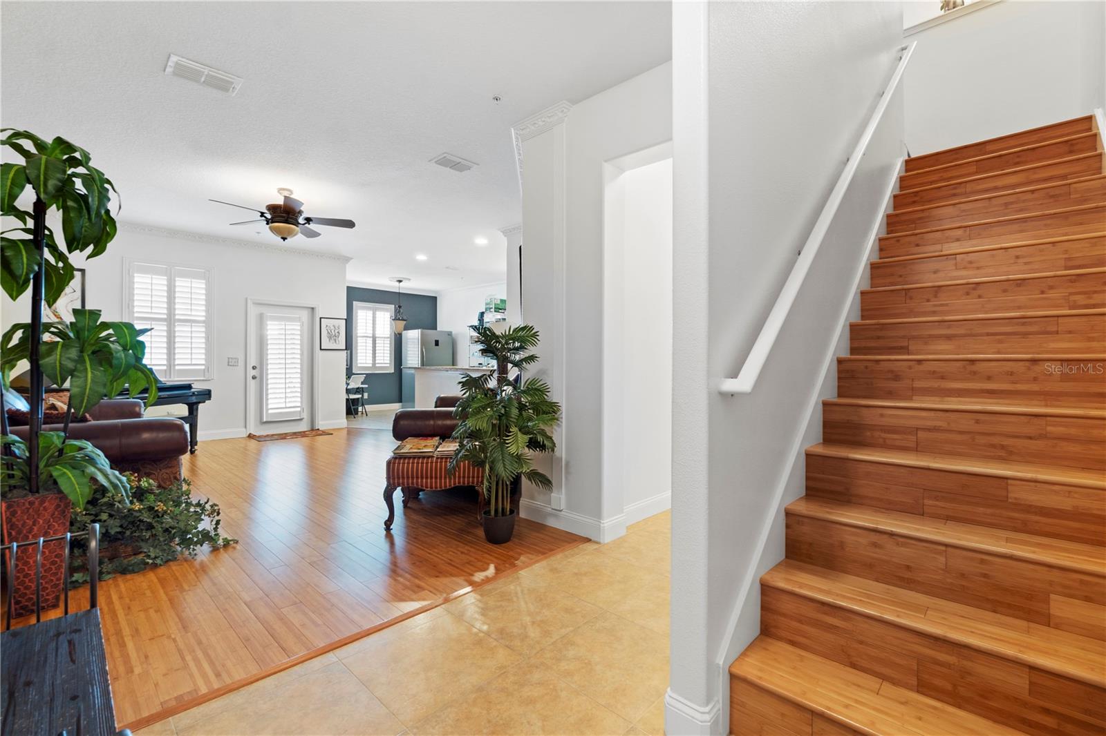 Ceiling Fans(s), Crown Molding, L Dining, Open Floorplan, PrimaryBedroom Upstairs, Split Bedroom, Walk-In Closet(s)