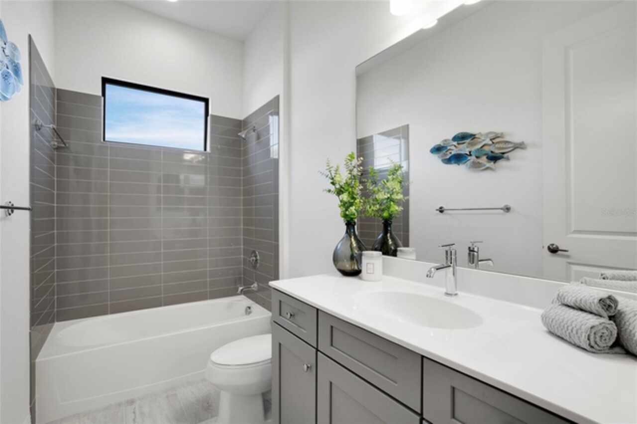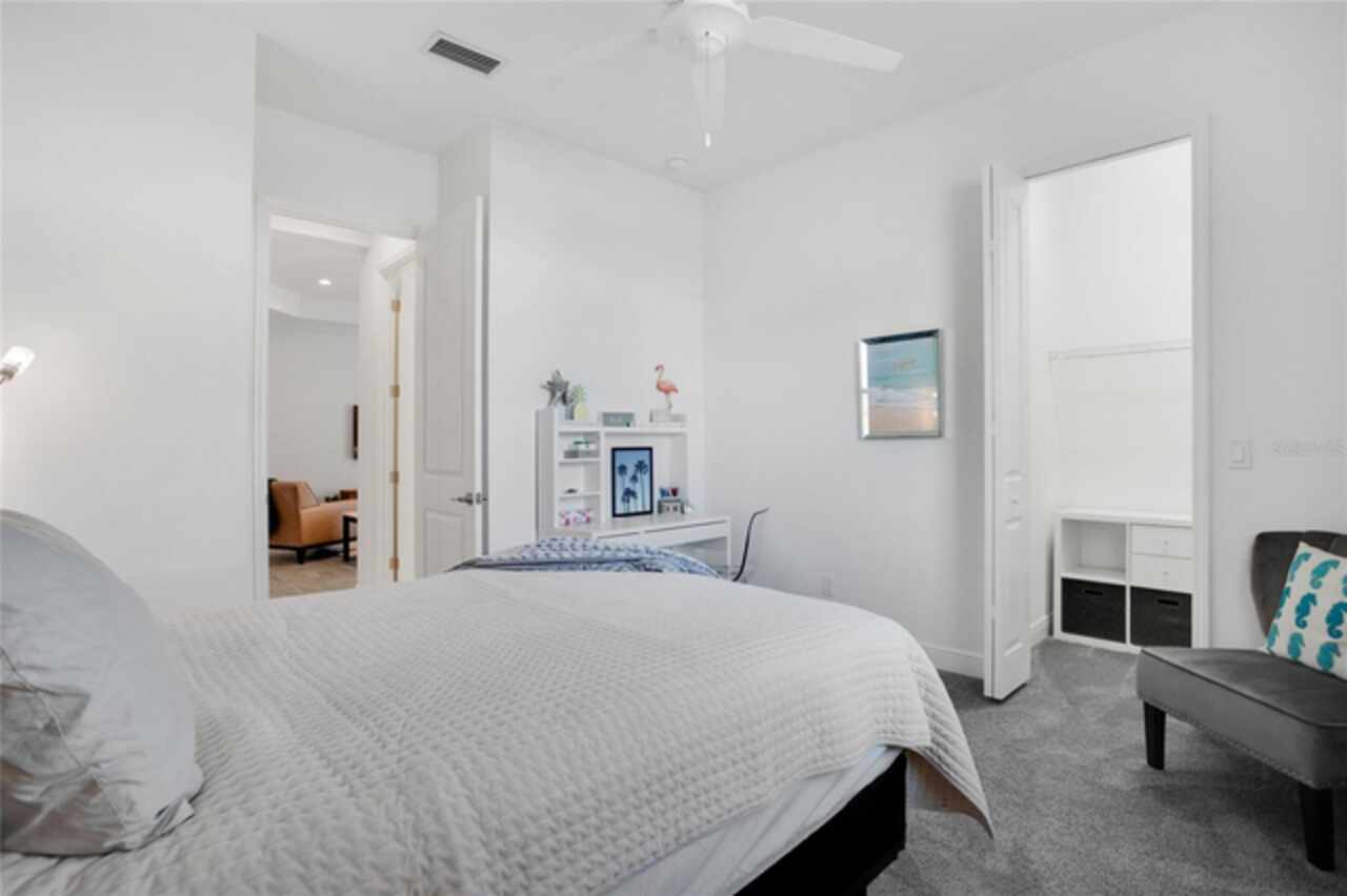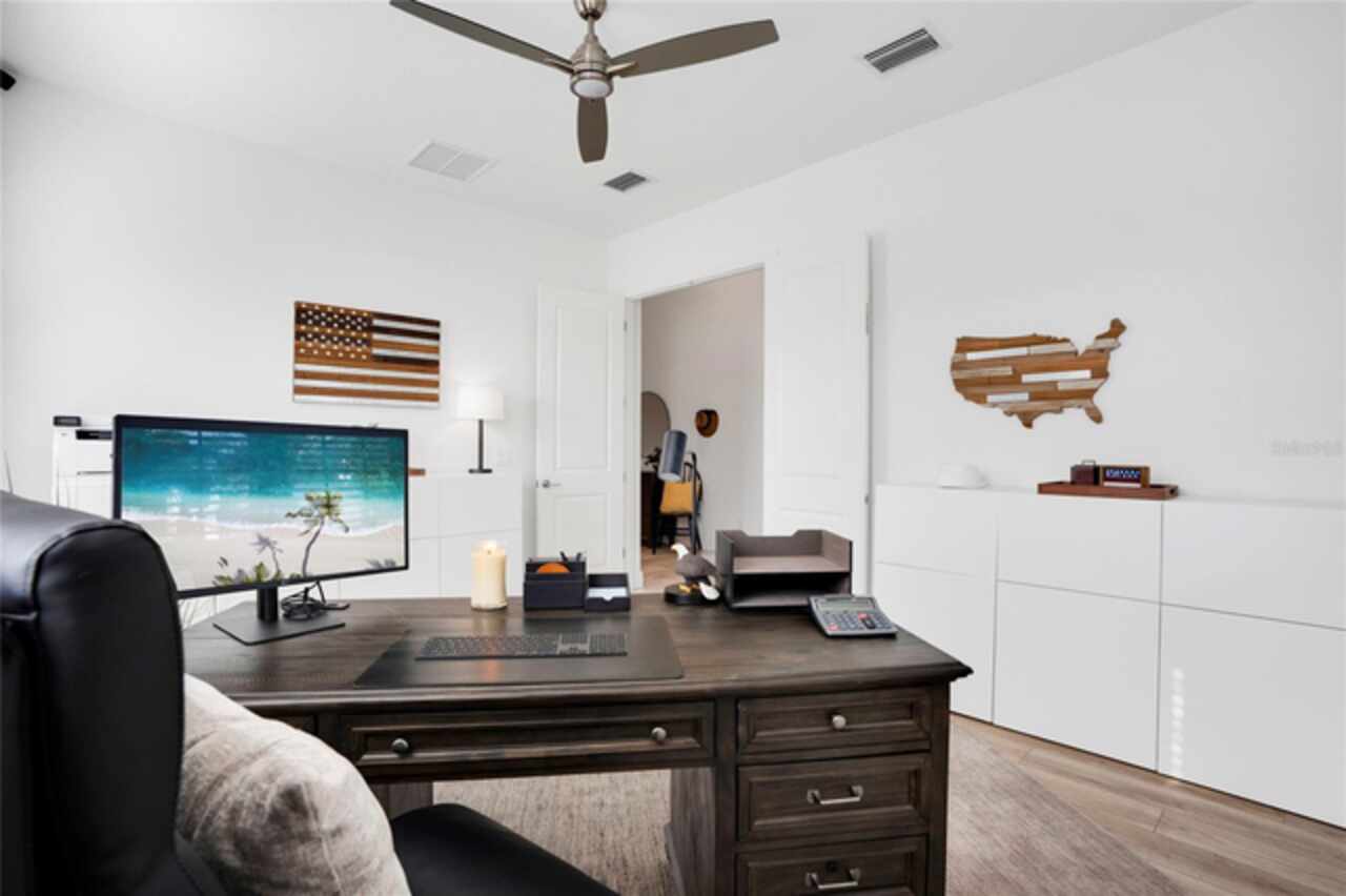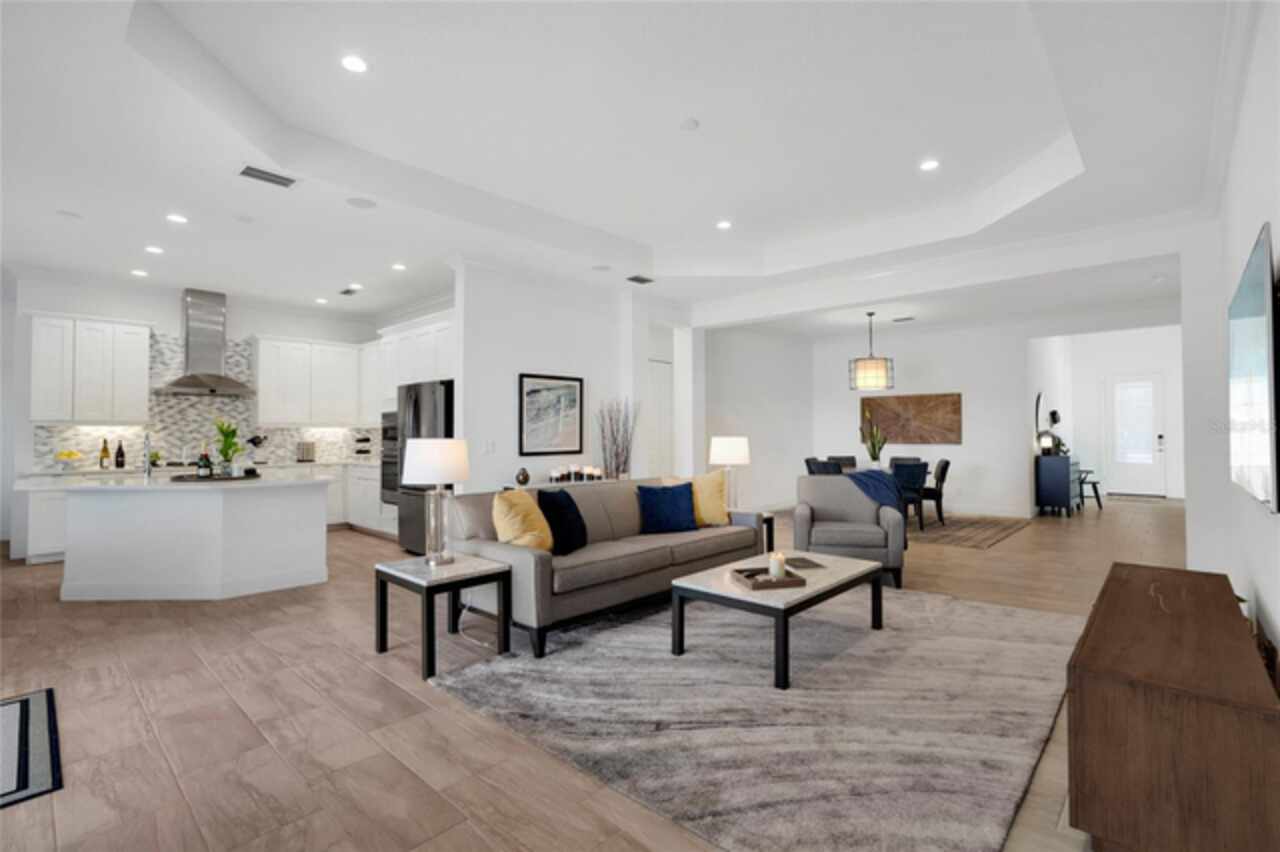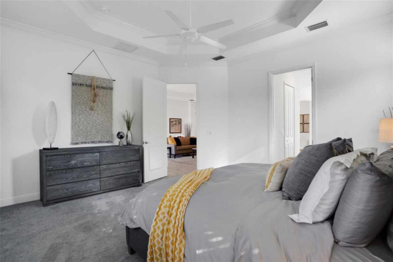 Welcome to your dream home at Indigo by Neal Communities. This furnished WINDSTAR floor plan sits on an oversize homesite with a long water view, offering nearly 2, 900 square feet of living space. This thoughtfully crafted home features 4 bedrooms, 3.5 bathrooms and a versatile den/study. Upon entering, you'll be captivated by the expansive open layout, enhanced by breathtaking views of the pool and peaceful lake beyond. Enjoy picturesque sunsets every evening with the coveted southwest exposure. The elegant living room showcases coffered ceilings, double crown molding & recessed lighting. The kitchen in your new home is a chef's paradise! Featuring premium GE Profile stainless steel appliances, 42" upper cabinets, stunning stone countertops, and an exceptionally spacious walk-in pantry, a large island and a spacious kitchen-dining room combination. The master suite bathroom is a true retreat, offering two walk-in closets, a large soaking tub, 2 generously sized individual vanities, a convenient water closet with a spacious walk-in shower. The stylish laundry room includes a cabinet base wash tub and a matching GE Energy Star washer and dryer. Step outside to your private lanai, where a full-width pool deck invites you to relax. Take a dip in your heated salt water pool that is surrounded by lush palm trees, beautiful landscaping and a water view that creates your very own oasis. This 5-year-old home is equipped with natural gas for the pool heater, cooktop, dryer, and hot water heater. Your 3-car garage showcases quality features, including the builder's upgraded epoxy flooring and practical overhead storage racks. Enjoy peace of mind with Hurricane-Rated Impact Glass Windows and Sliders, designed to withstand storms while contributing to lower insurance rates and enhanced energy efficiency. Additionally, energy efficiency is further optimized with foam-injected concrete block walls and radiant barrier panels in the attic, complete with attic space flooring. Embrace a true maintenance included lifestyle in the sought-after neighborhood of Indigo. Here, residents have access to an impressive array of top-notch amenities. Our Amenity Center features a luxurious Clubhouse with a catering kitchen, a heated resort-style pool with cabanas, a Spa, a 24/7 fitness center, pickleball courts, bocce ball and a playground. The best part? All these amenities are expertly overseen by a dedicated full-time activity's director, ensuring a lively calendar of events and services for our residents—all for an affordable HOA fee. Don't let this extraordinary opportunity pass you by—make Indigo your home, where luxury, comfort, and convenience come together to elevate your everyday living!