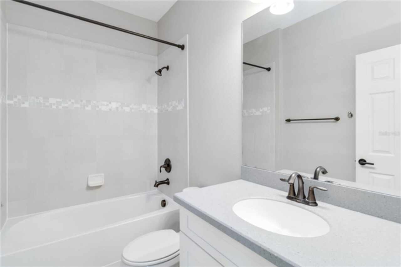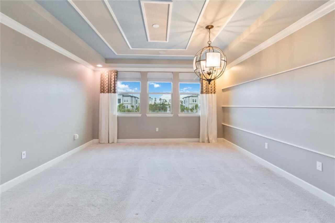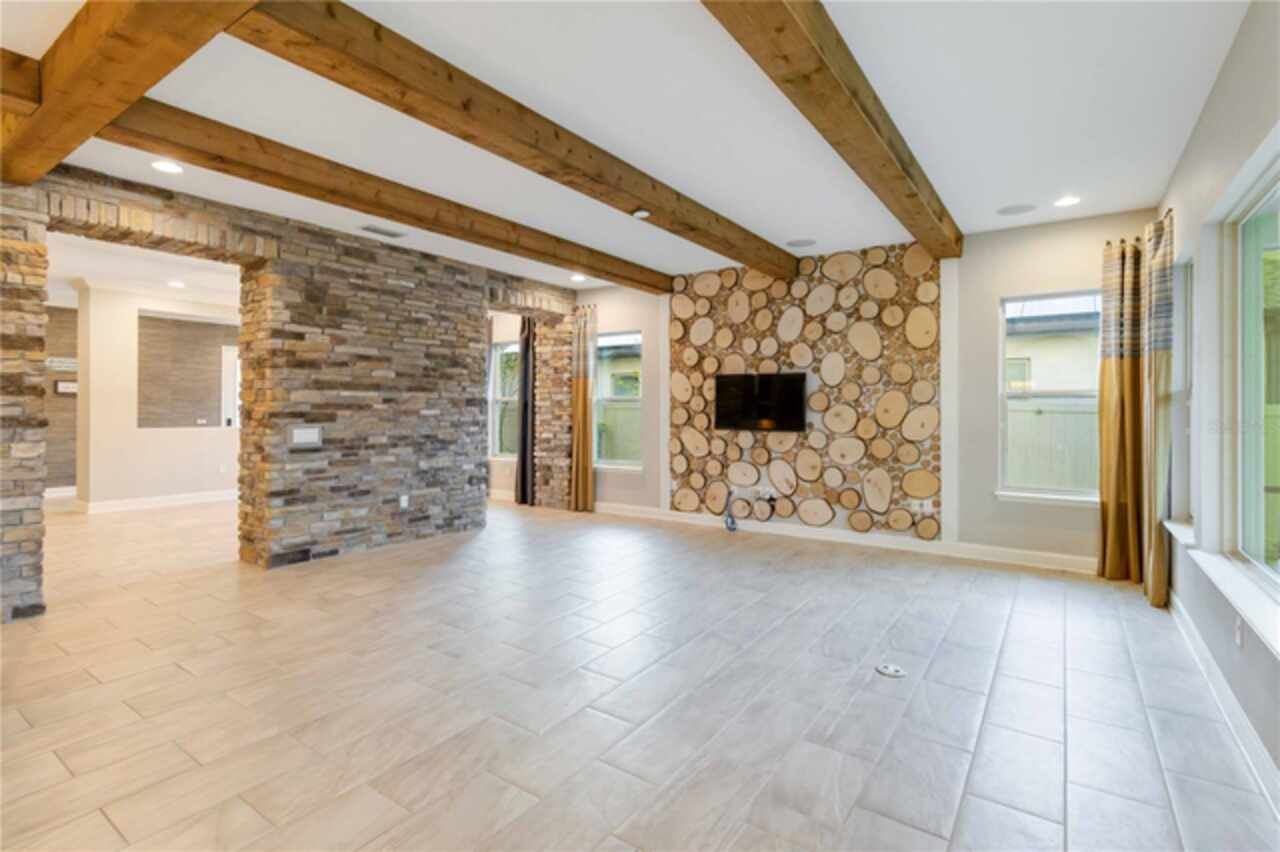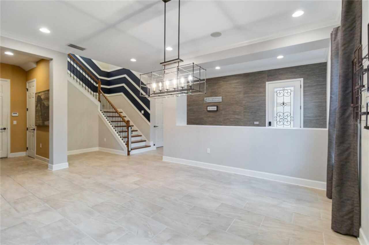 One or more photo(s) has been virtually staged. The seller has transitioned on to their next chapter, presenting a rare opportunity for you to claim this exceptional property. Their departure is your gain-don't miss the chance to make it yours! Welcome home to this stunning 5-bedroom, 4-bathroom residence in the coveted Serenity Creek community. This meticulously designed home is a former model home and boasts high-end finishes and thoughtful upgrades throughout. As you step inside, you're welcomed by an abundance of natural light and a spacious open floor plan. Wood beams and several wallpaper, stone and wood accent walls add uniqueness and elegance to this home. You will feel like a Chef in the gourmet kitchen, featuring granite countertops, Stainless Steel appliances and an expansive center island, perfect for culinary enthusiasts and entertaining guests. The oversized primary bedroom is the perfect relaxing retreat, complete with a tray ceiling and a custom closet which has direct access to the laundry room. The primary bathroom offers dual vanities, a luxurious garden tub, and a separate shower. Three additional bedrooms, each thoughtfully designed with walk in closet space, two additional bathrooms and a spacious bonus area completes the upstairs space. A fifth bedroom and 4Th full bathroom is located on the main level. This home has been meticulously maintained and boasts numerous upgrades, including newer upgraded carpet, an epoxy-floored three-car garage and a brand-new roof installed in 2023. Enjoy the beautiful FL weather in the extended screened lanai, spanning the width of the home, which invites you to relax and enjoy the serene outdoor space. The lush, green landscape and oversized backyard provide a perfect setting for outdoor activities. Don't miss this incredible opportunity to own a truly exceptional home in a highly sought-after community. With low HOA fees and no CDD, conveniently located to restaurants, retail and schools its the perfect place to call home. Schedule your private tour today!
