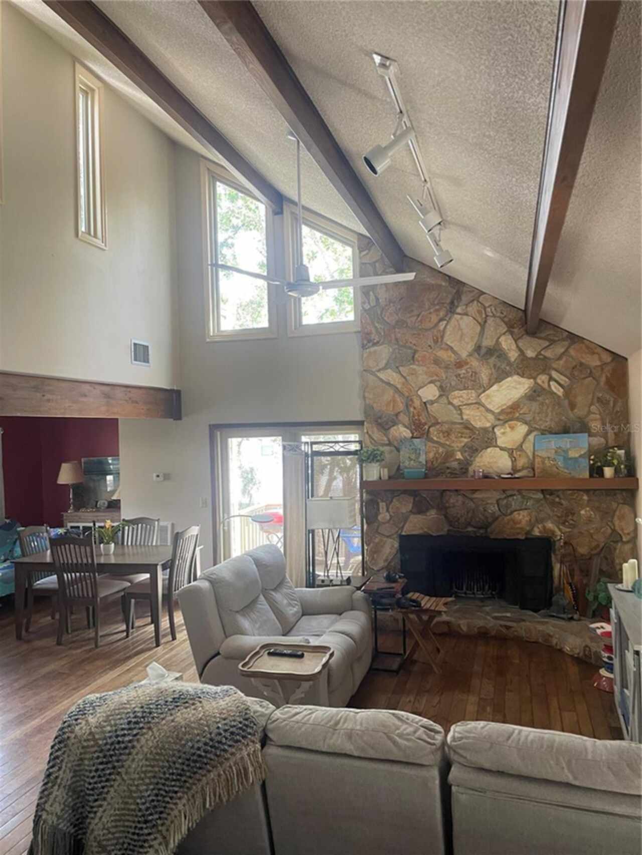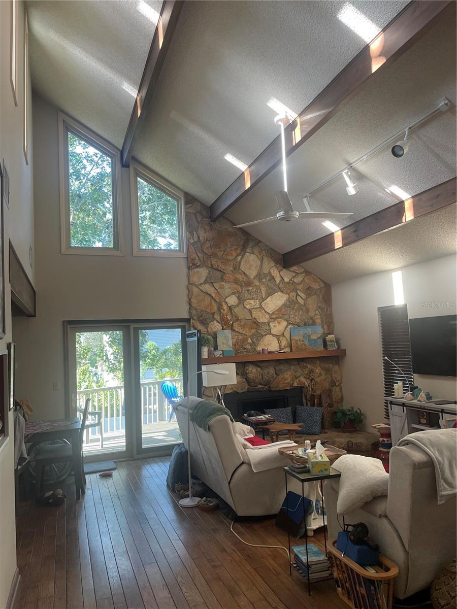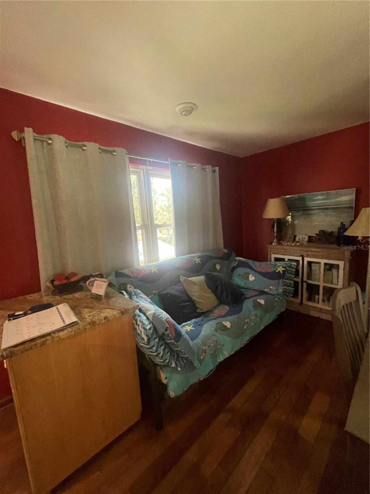 Location! Location! Highly desired Seminole neighborhood. Just minutes from beach, parks, grocery and pharmacies, highly rated public schools and Seminole City Center. Unique contemporary designed home nestled in the shade among a dozen established live oak trees on an oversized lot (1.5x) of average size lot on the street. Deep back yard open for multiple opportunities for your personal desires - custom pool, pickleball court, animal exercise area, putting green - to name a few. Constructed of Hardee board siding and hurricane rated windows. New roof installed and exterior painted in 2022. Open floor plan with 3/4” oak hardwood floors in living and dining room area, newly installed carpet in 3 bedrooms. Post and beam construction. Wood burning fireplace with vents. Ceiling fans throughout. Gorgeous granite countertops and movable island made of solid maple. Propane stove, water heater (replaced 2022), and dryer resulting in lower utility costs, especially in summer. Lots of natural light. An indoor jacuzzi tub on the main floor. Exterior stairwell was rebuilt in 2022 along with renovated deck. There is 662 sq ft of covered area under the 10’ high stilts with space for parking 2 vehicles plus added available space. Concrete driveway was replaced and extended in 2021. 8’ x 10’ storage shed under the deck. The 4th bedroom/office has a Murphy desk/bed on the ground level and was newly finished in 2022 and has it’s own private full bath and exterior entrance. The private deck off the living room extends your enjoyment of being outdoors. You will also enjoy many beautiful sunsets from there.