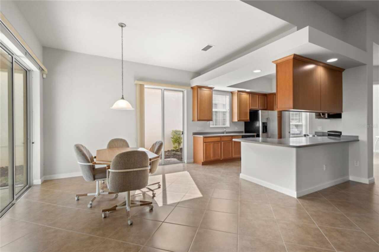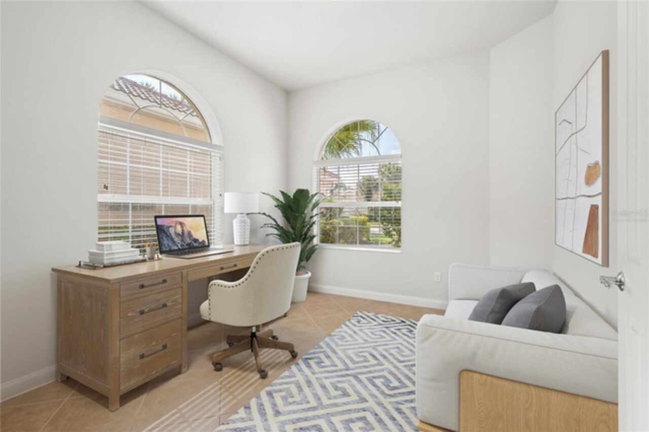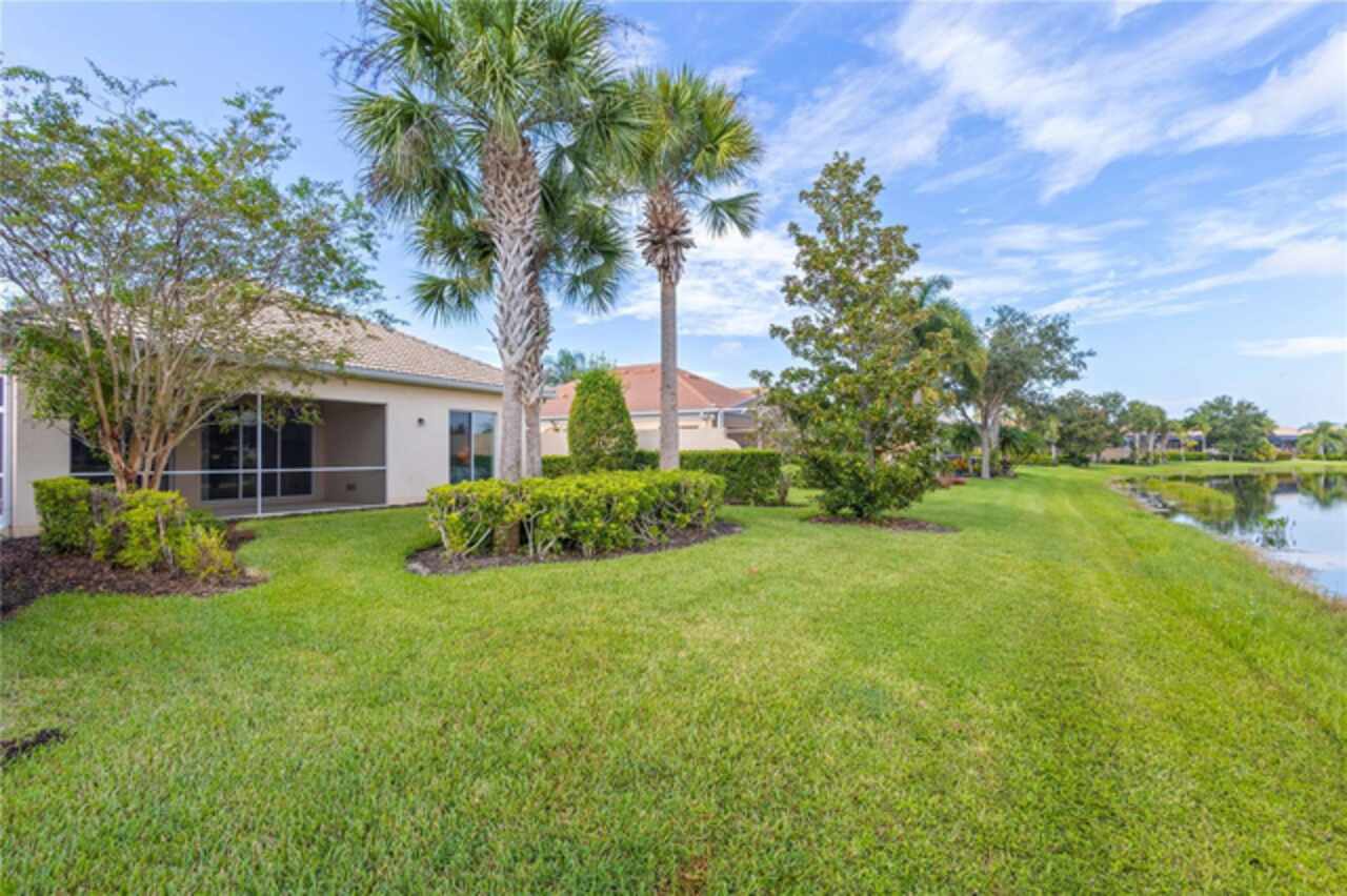 One or more photo(s) has been virtually staged. $105k price improvement! Welcome to this impeccably maintained Divosta Oakmont model, owned by a single owner. As you enter, you'll be greeted by breathtaking lake views and an open, flowing layout that seamlessly connects the Great Room, Dining Room, and Kitchen—ideal for both daily living and entertaining. The kitchen is a chef’s dream, featuring maple cabinetry, Corian countertops, and stainless steel appliances, all designed to keep you engaged with guests in the adjacent living area. High ceilings and 8-foot doors enhance the home’s spacious ambiance. The air conditioning system, just four years old, includes a transferable warranty and has been serviced biannually, with two additional service visits already paid for. The primary suite serves as a serene retreat with ample closet space and generously sized his and hers bathrooms. The split floor plan ensures privacy, with two additional bedrooms and a guest bathroom on the opposite side of the home. A versatile den offers a quiet space for work or relaxation and can be easily closed off for uninterrupted focus. The large laundry room features a drop sink and cabinets for added storage, leading to an oversized side-entry garage with an extended driveway. Step outside to the expansive covered and screened lanai, perfect for dining, entertaining, or simply relaxing while taking in the gentle breeze and panoramic water views. Privacy walls between you and your neighbors further enhance your outdoor enjoyment. Islandwalk is a pristine 830-acre gated community surrounded by lakes and preserves. With a full-time Lifestyle Director, the community offers a wealth of events, clubs, and activities to foster a vibrant social life. Amenities include three amenity buildings, a heated lagoon pool, a heated outdoor lap pool, bocce ball courts, pickleball courts, Har-Tru tennis courts, a dog park, a playground, a basketball court, and a community garden. The beautifully maintained grounds feature miles of nature and biking trails, Venetian bridges, and scenic water views. The location is exceptionally convenient, with a rear exit to Cool Today Park, the Atlanta Braves Spring Training Stadium, and the new Downtown Wellen Park, all just a short bike or golf cart ride away. Enjoy easy access to shopping, medical services, dining, and the stunning Gulf Beaches, with quick access to I-75. This home is being offered turnkey with all furnishings, dishes, cookware, silverware, TVs, and more. Don’t miss this opportunity to embrace the Florida sunshine and relaxed lifestyle!
