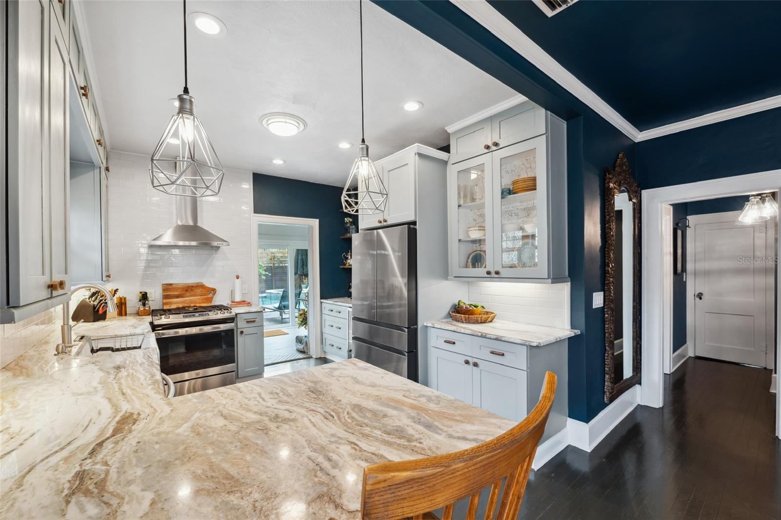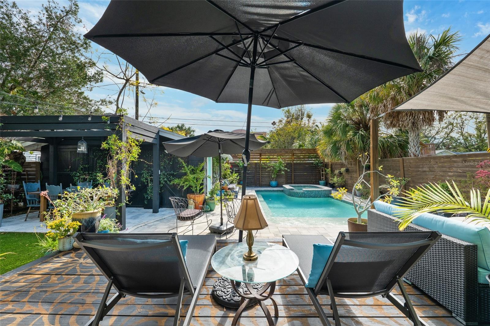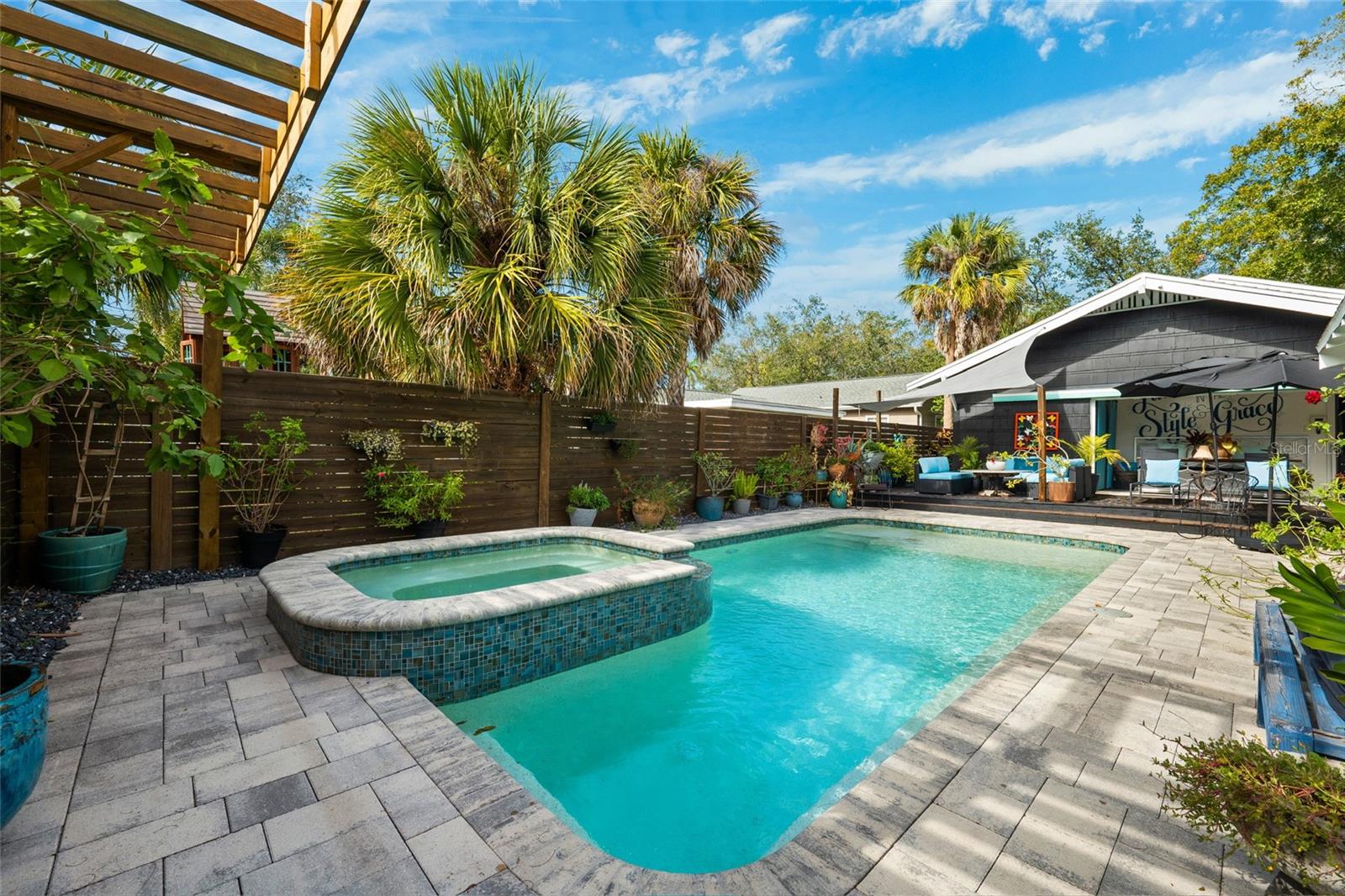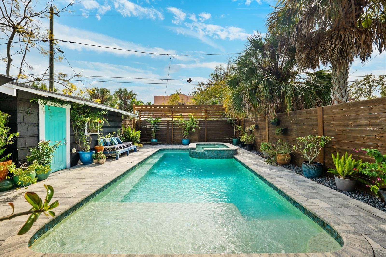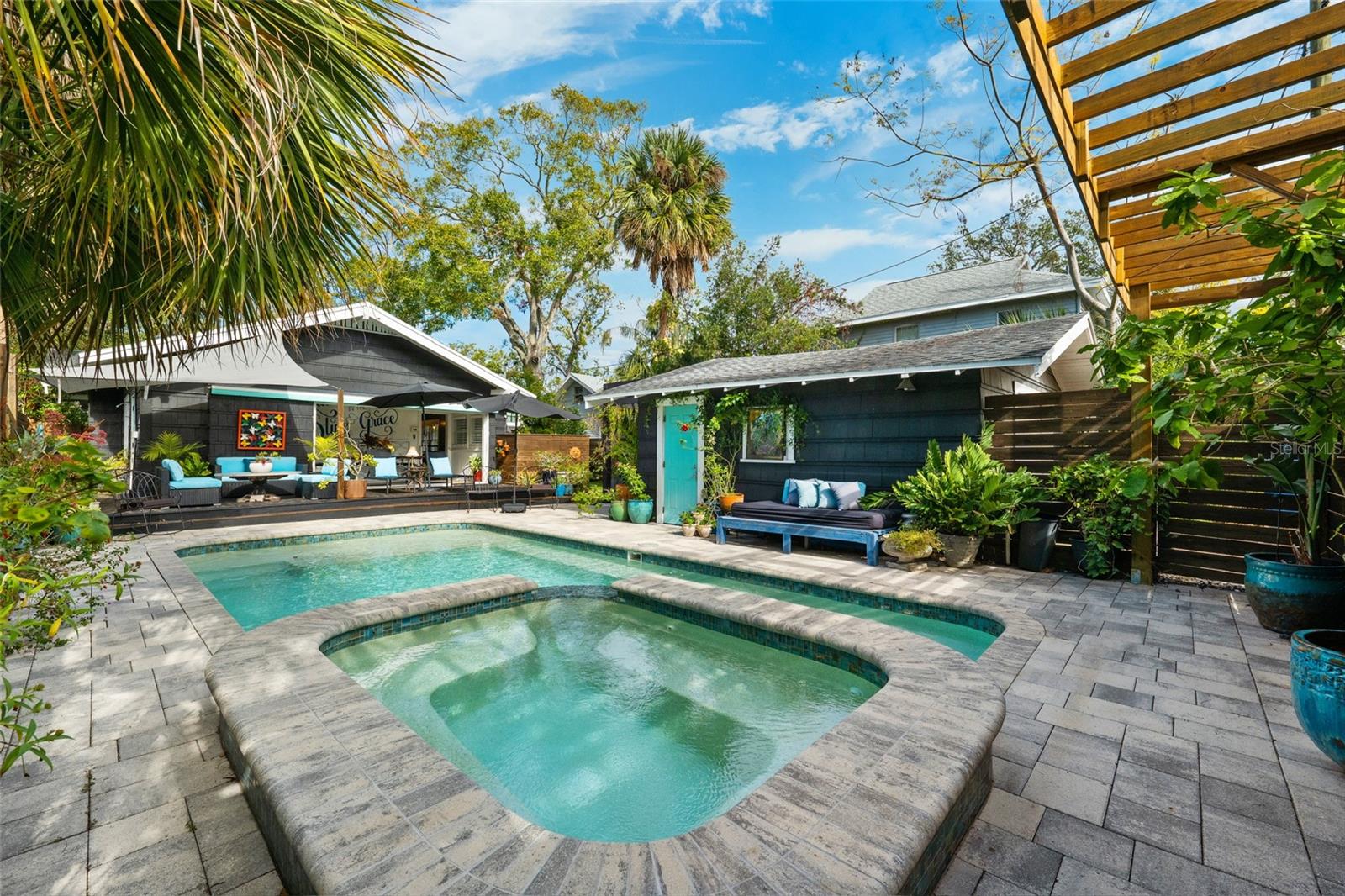 Under contract-accepting backup offers. Welcome to your dream retreat in the heart of Old Northeast! This 2-bedroom, 2-bath Centennial Arts & Crafts-style home blends timeless charm with modern luxury in one of St. Pete's most desired neighborhoods. Inside, youll find original 1.5" oak floors, soaring 9-foot ceilings, tall baseboards, crown molding, and an arched door way. Every detail showcases the home’s historic character, seamlessly blended with contemporary design finishes. Large windows and 14' glass sliders flood the space with natural light and offer a seamless transition to the backyard oasis! The open floor plan centers around a fireplace and includes thoughtful touches like a built-in coffee bar and wine chiller. Step outside to zero-maintenance landscaping with turf and pavers, a heated pool and spa, a custom privacy fence, two pergolas for dining and lounging, a spacious wrap around deck, an outdoor shower, and direct bathroom access from the pool area. The custom sparkling pool and hot tub feature a brand-new pump Enjoy rare convenience with a long private driveway, alley access, and a detached garage all just minutes from downtown St. Pete and the bayfront. This home is not in a flood zone and has not lost power or sustained any hurricane damage with this current owner. This is Old Northeast living at its best: rich in character, effortless in comfort, and made for the way you live today.