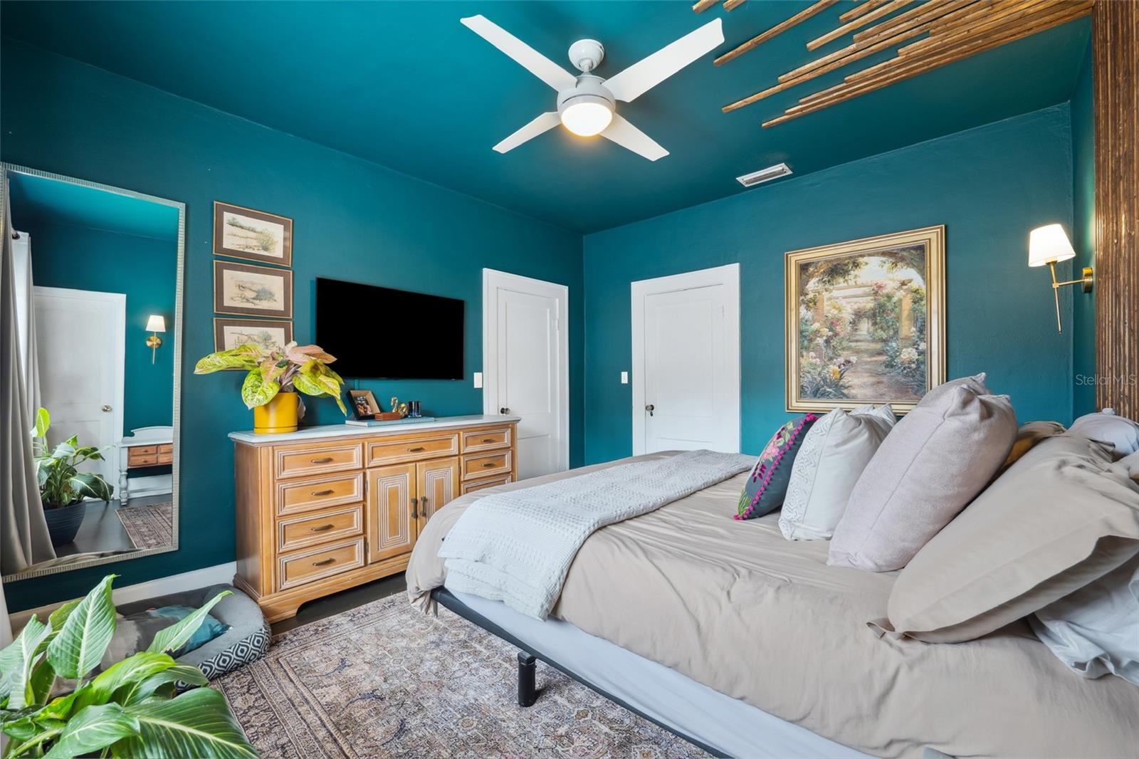 Ceiling Fans(s), Dry Bar, High Ceilings, Open Floorplan, Pest Guard System, Solid Wood Cabinets, Stone Counters, Thermostat, Walk-In Closet(s), Window Treatments