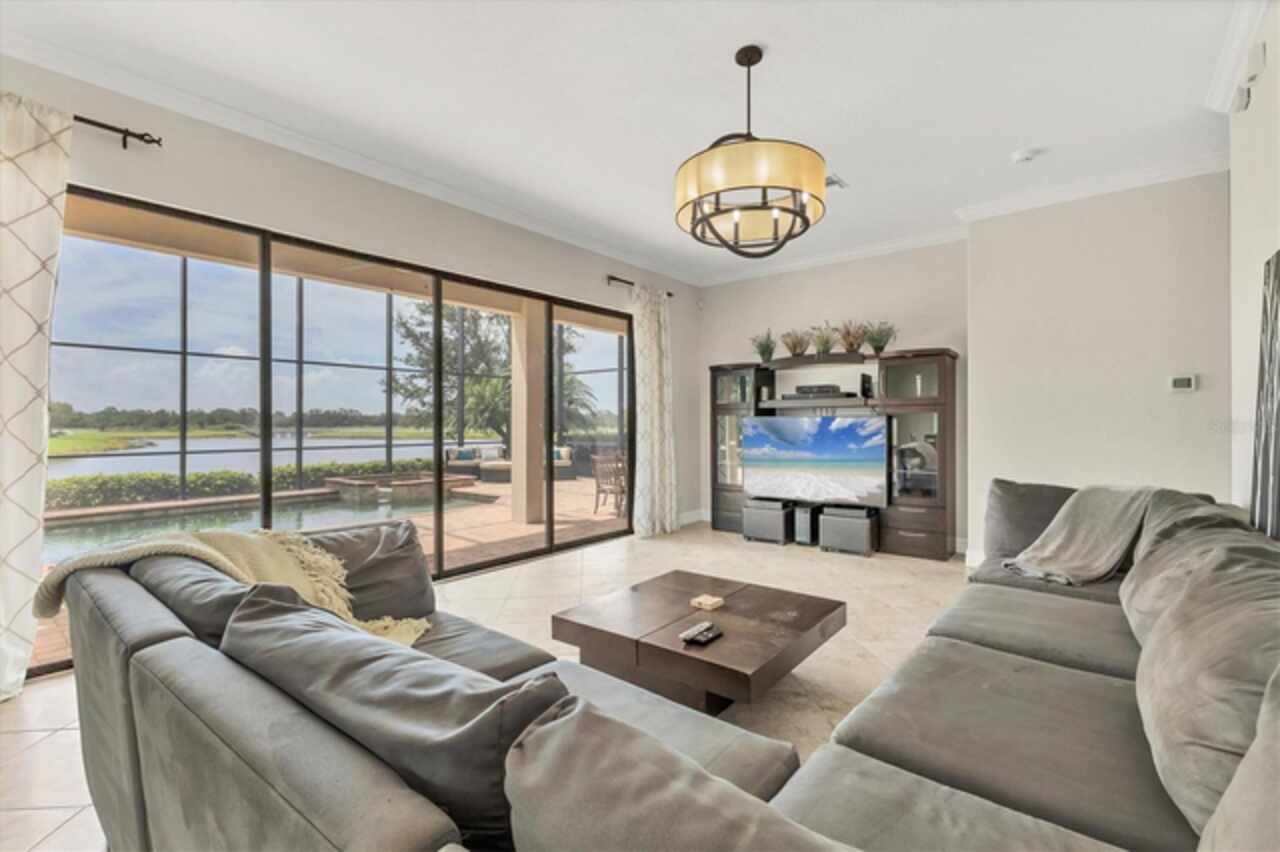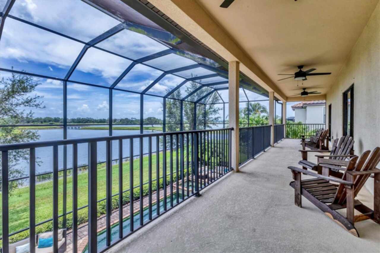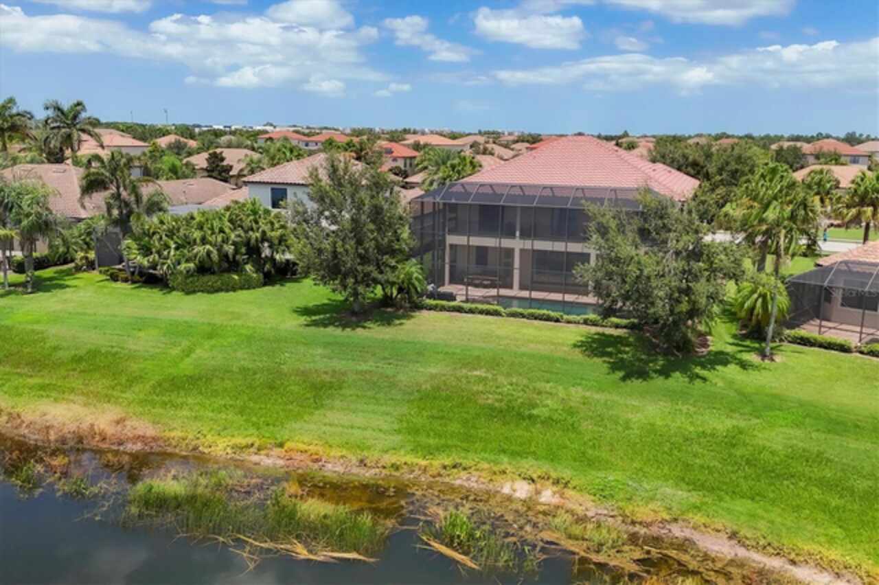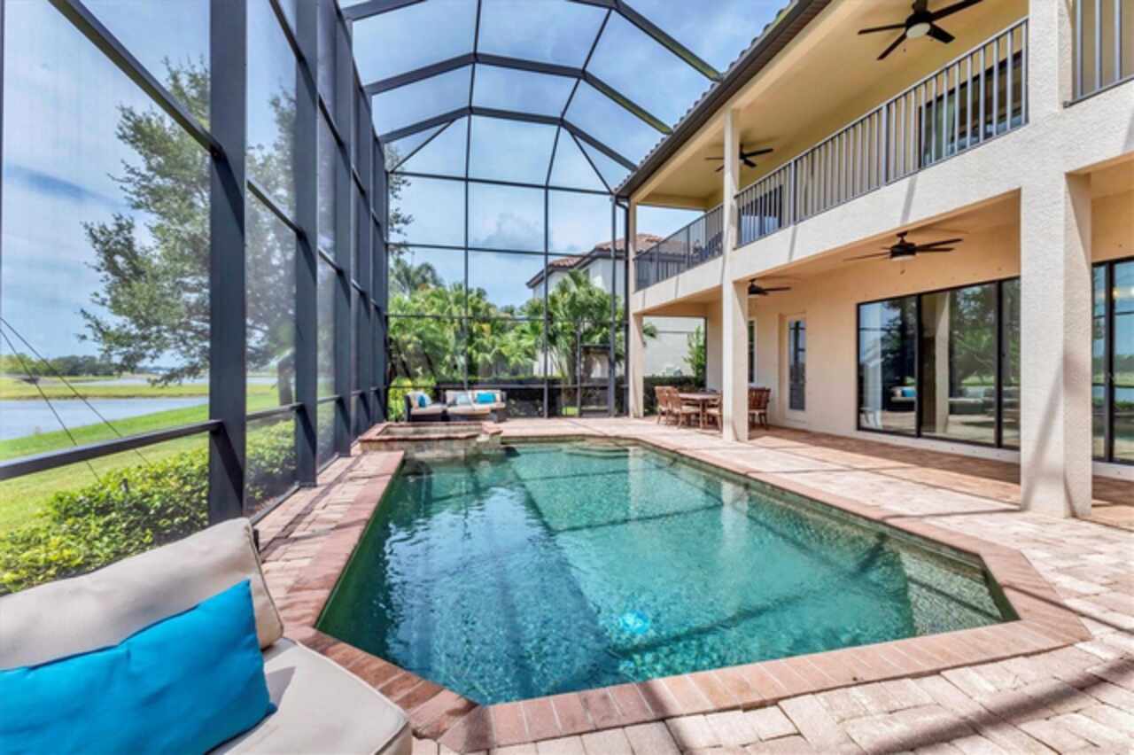 Under contract-accepting backup offers. If you are looking for a water view, you won't want to miss this breathtaking estate home with a pool and spa in the exclusive, gated community of Bridgewater, nestled in the heart of Lakewood Ranch. This exceptional residence offers nearly 4, 000 square feet of luxury living space with long, serene water views! With 6 spacious bedrooms, 4 bathrooms, a private pool and spa, and an expansive lanai, this home provides an idyllic blend of elegance and functionality for indoor and outdoor living. Upon entering, you’re greeted by a grand two-story foyer leading to a formal living room adorned with bay windows that bathe the space in natural light and staircase that provides access to the second story and kitchen. The formal dining room showcases a stunning chandelier, setting the stage for unforgettable gatherings. The family room features a large sliding glass door offering picturesque pool and water views and high-end drapery. Designed for culinary enthusiasts, the gourmet kitchen is equipped with premium finishes and stainless steel appliances, including a cooktop with a hood, built-in oven and microwave. A breakfast bar that seats four and an additional eat-in area with pool deck access provide multiple dining options. The covered lanai is ideal for alfresco entertaining, offering ample seating and direct access to a poolside bathroom with a walk-in shower. There is plenty of room to install an outdoor kitchen or bar as well! Relax and unwind in the pool or hot tub while enjoying the tranquil water views, or soak up the Florida sunshine on the expansive, screened-in lanai. Upstairs, the luxurious primary suite boasts a screened-in balcony, two walk-in closets, and an elegant en-suite bathroom with dual vanities, a soaking tub, and a large walk-in shower. Three additional bedrooms - two with screened-in balconies - share a bathroom with a double sink vanity, while a versatile oversized bedroom with an en-suite bathroom serves as a potential theater, game room, or in-law suite. The loft is the perfect spot for an office, play room or space to relax after a day in the sun. There is another bedroom on the main level that can be used a guest suite or private home office. Freshly painted on the interior, this home also features an oversized, side-load 3-car garage with ample room for storage, a golf cart, and all your recreational gear! HOA-provided lawn care and irrigation ensure low-maintenance living, giving you more time to enjoy all Lakewood Ranch has to offer. This home sits on one of the best lots in the community - which offers privacy, unbelievable views, space for entertainment and gardening enjoyment. Located in an A-rated school district and close to Lakewood Ranch Prep Academy, this home is just minutes from “The Green, ” Lakewood Ranch’s bustling shopping and dining hub. Experience the active Florida lifestyle in the top-ranked Lakewood Ranch community, offering golf courses, downtown amenities, 60+ resident clubs, 150 miles of trails, dog parks, and more. Beautiful Sarasota and Bradenton beaches are just 15 miles away and you'll have easy access to Sarasota and Tampa International Airports. Don’t miss the chance to make this stunning home yours and live the ultimate Florida lifestyle!