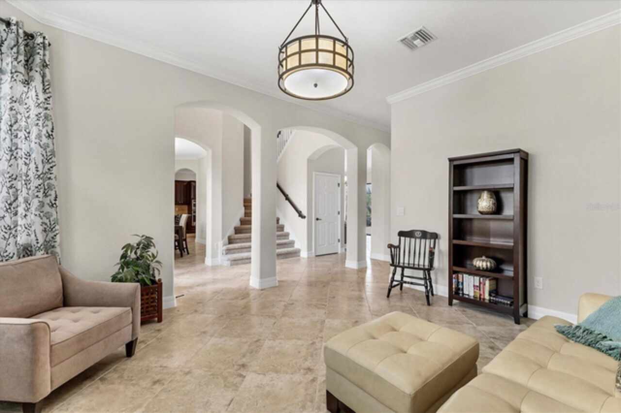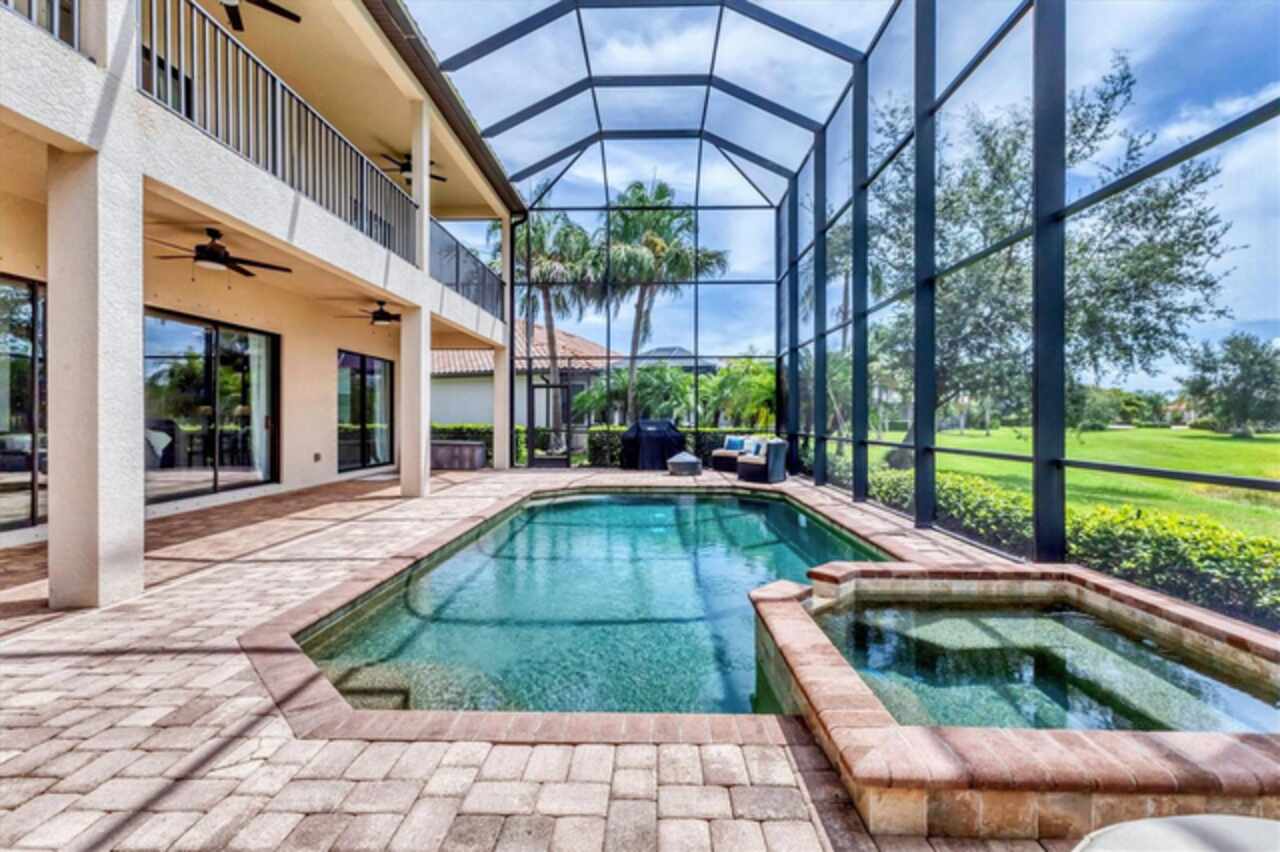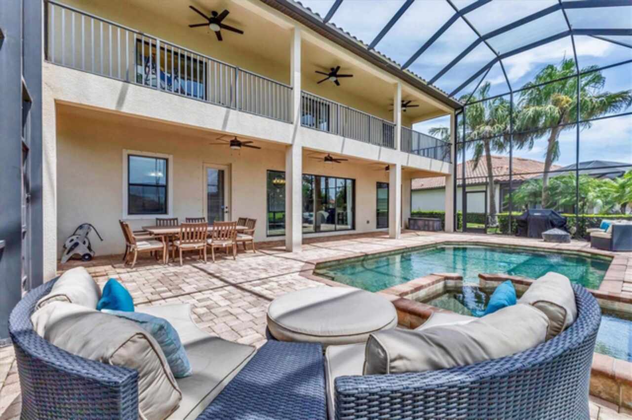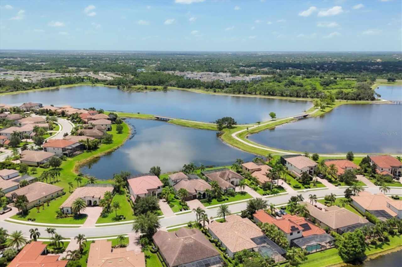 Under contract-accepting backup offers. If you are looking for a water view, you won't want to miss this breathtaking estate home with a pool and spa in the exclusive, gated community of Bridgewater, nestled in the heart of Lakewood Ranch. This exceptional residence offers nearly 4, 000 square feet of luxury living space with long, serene water views! With 6 spacious bedrooms, 4 bathrooms, a private pool and spa, and an expansive lanai, this home provides an idyllic blend of elegance and functionality for indoor and outdoor living. Upon entering, you’re greeted by a grand two-story foyer leading to a formal living room adorned with bay windows that bathe the space in natural light and staircase that provides access to the second story and kitchen. The formal dining room showcases a stunning chandelier, setting the stage for unforgettable gatherings. The family room features a large sliding glass door offering picturesque pool and water views and high-end drapery. Designed for culinary enthusiasts, the gourmet kitchen is equipped with premium finishes and stainless steel appliances, including a cooktop with a hood, built-in oven and microwave. A breakfast bar that seats four and an additional eat-in area with pool deck access provide multiple dining options. The covered lanai is ideal for alfresco entertaining, offering ample seating and direct access to a poolside bathroom with a walk-in shower. There is plenty of room to install an outdoor kitchen or bar as well! Relax and unwind in the pool or hot tub while enjoying the tranquil water views, or soak up the Florida sunshine on the expansive, screened-in lanai. Upstairs, the luxurious primary suite boasts a screened-in balcony, two walk-in closets, and an elegant en-suite bathroom with dual vanities, a soaking tub, and a large walk-in shower. Three additional bedrooms - two with screened-in balconies - share a bathroom with a double sink vanity, while a versatile oversized bedroom with an en-suite bathroom serves as a potential theater, game room, or in-law suite. The loft is the perfect spot for an office, play room or space to relax after a day in the sun. There is another bedroom on the main level that can be used a guest suite or private home office. Freshly painted on the interior, this home also features an oversized, side-load 3-car garage with ample room for storage, a golf cart, and all your recreational gear! HOA-provided lawn care and irrigation ensure low-maintenance living, giving you more time to enjoy all Lakewood Ranch has to offer. This home sits on one of the best lots in the community - which offers privacy, unbelievable views, space for entertainment and gardening enjoyment. Located in an A-rated school district and close to Lakewood Ranch Prep Academy, this home is just minutes from “The Green, ” Lakewood Ranch’s bustling shopping and dining hub. Experience the active Florida lifestyle in the top-ranked Lakewood Ranch community, offering golf courses, downtown amenities, 60+ resident clubs, 150 miles of trails, dog parks, and more. Beautiful Sarasota and Bradenton beaches are just 15 miles away and you'll have easy access to Sarasota and Tampa International Airports. Don’t miss the chance to make this stunning home yours and live the ultimate Florida lifestyle!