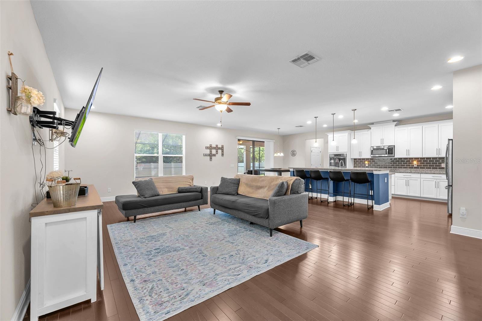 Ceiling Fans(s), Eat-in Kitchen, High Ceilings, Kitchen/Family Room Combo, L Dining, Open Floorplan, Split Bedroom, Walk-In Closet(s)