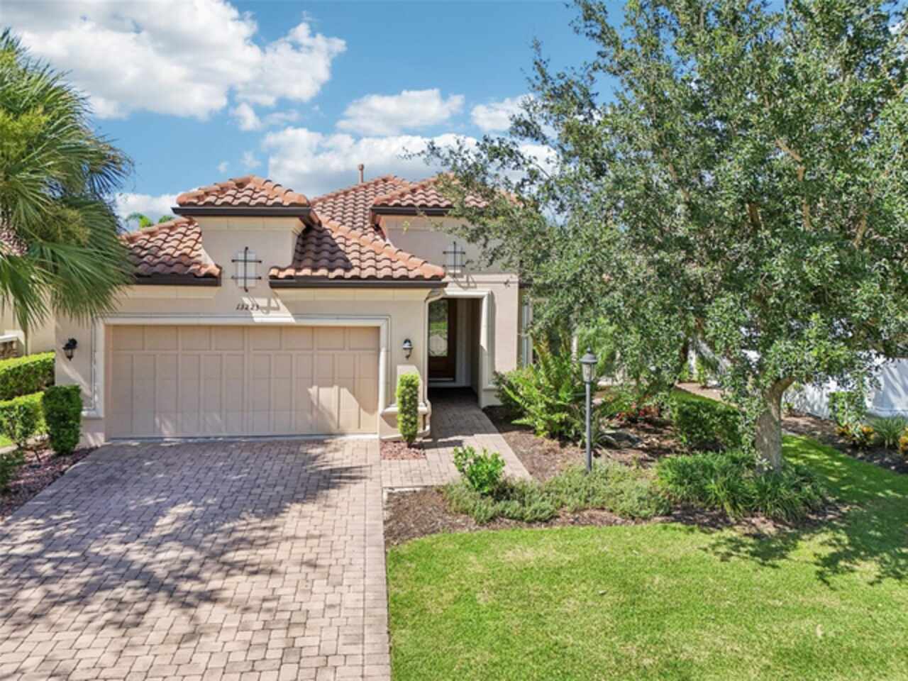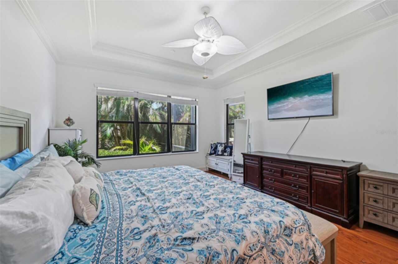 Come live the resort lifestyle in the highly desired Esplanade community. A sanctuary inside and out, this home welcomes you with a light filled open concept Lazio model design with engineered hardwood floors, designer light fixtures, tray ceilings and opulent crown molding throughout. The chef's kitchen boasts Monogram appliances, double ovens, pantry, touchless faucet, granite counters with a huge island for entertaining. The open living and dining areas are great to accommodate all your guests inside or you can open all the sliders to the screened extra large lanai. This 25 x 36 peaceful area is gorgeously landscaped and you can enjoy the serene waterfall of the koi pond and lush greenery. There is plenty of space for seating and access to the granite wet bar and full outdoor kitchen with stainless cabinets, grill, sink and refrigerator. The owner's suite is equipped with a large closet with custom built ins, an expanded size shower with seat, and double sinks over granite marble counter. Two other full baths with granite counters and fine finishes are adjacent to the two other nicely sized bedrooms. Additionally there is also a 11x13 bonus room/office/den behind frosted glass doors offering great flexibility. A full laundry room with plenty of cabinets and counter space is right off the 2 car garage. At the end of the street you have tennis courts, pickleball, waterfront park and large pool; with 2 additional pools, fitness center, golf club, spa, nail salon, dog parks, and restaurants just a short walk away in the community. There is no need to pay more for a deeded golf membership when all residents can use the amenities for just a fee. Explore all the benefits at the community website, esplanadelwr. Whether you are going to out of the town to the Waterside district, Sarasota's wealth of cultural highlights, or a lazy day at the nearby beaches of Anna Maria or Siesta Key, there is something here for everyone.