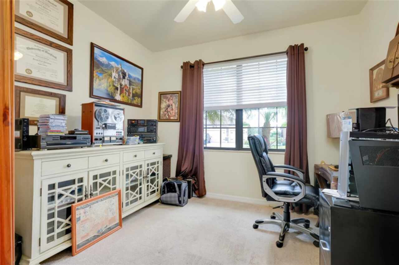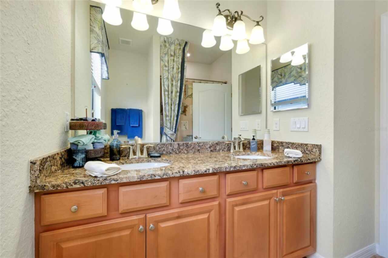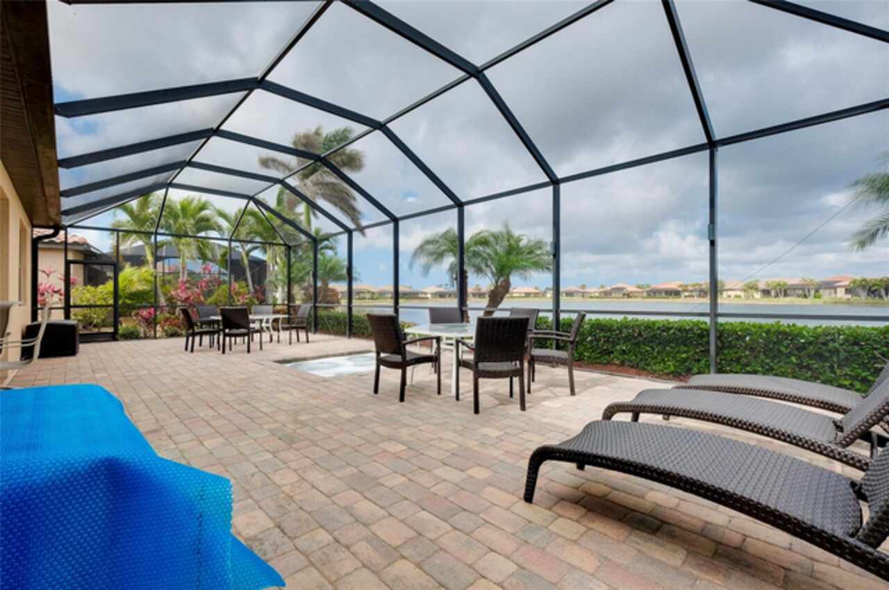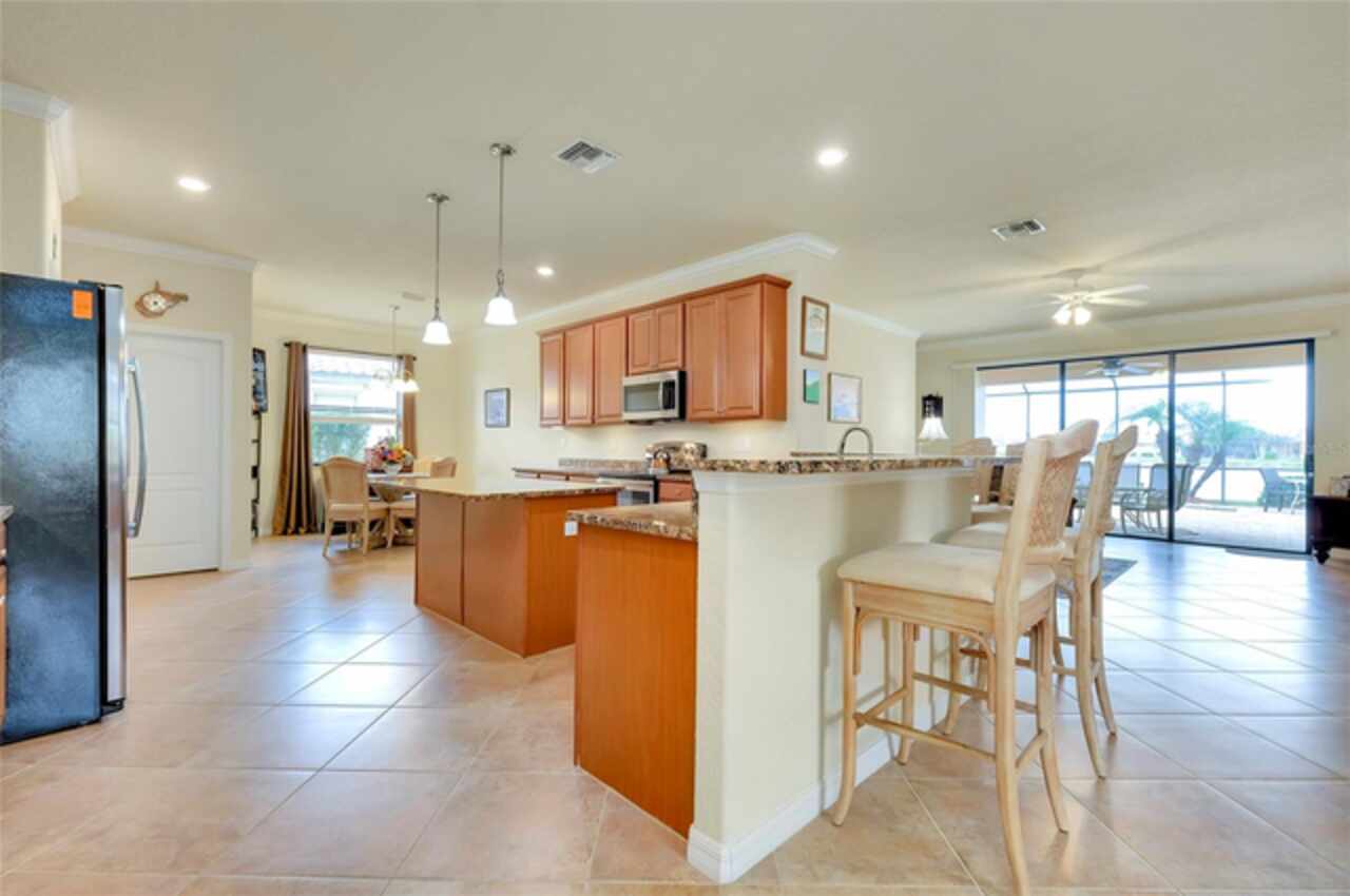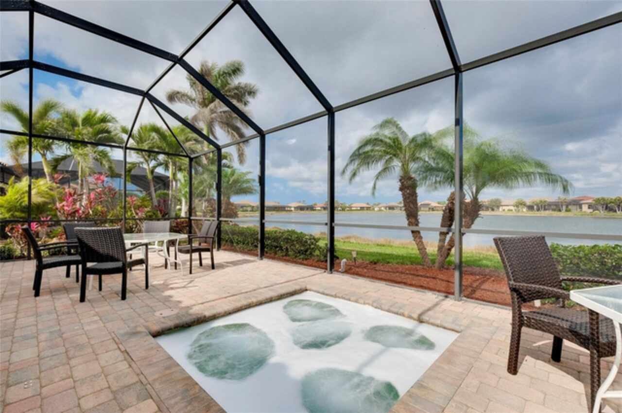 Welcome to Tuscan-Inspired RESORT LIVING in this 4 bedroom, 3 bathroom home in the Gran Paradiso. Ideally situated on a generous lot overlooking a picturesque waterview with breathtaking sunset views. Relax and unwind in your own Saltwater Inground Spa or in the resort-Style living community pool, just steps from your front door. The Heart of this home is a beautifully appointed kitchen, where the combination of rich granite countertop and an abundance of cabinets featuring under lighting ensures both functionally and style. Enjoy casual meals at the breakfast bar or gather with family and friends in the cozy dinette nook that fills the space with natural light. The separate Dining Room offers an elegant setting for those special occasions. Inside you will find a spacious Great Room layout perfect for family and entertaining, including 4 bedrooms & 3 Bathrooms, 2 En-Suite Bedrooms with private bathrooms. The 3 Car Garage provides ample space for vehicles and storage, with convenient overhead storage. Experience the perfect blend of elegance and comfort in this exceptional home. Conveniently located in Wellen Park a golf cart drive to many restaurants, much entertainment, Braves Stadium & Stores including a 20 minute drive to nearby Gulf of Mexico Prestige Beaches. Schedule your private to showing today!! The Beach is Calling...... Have you??