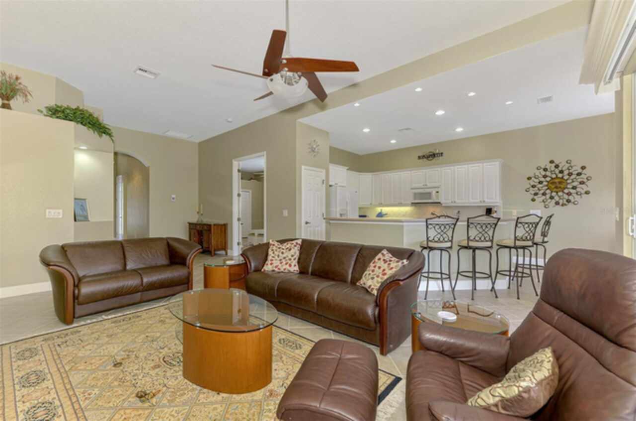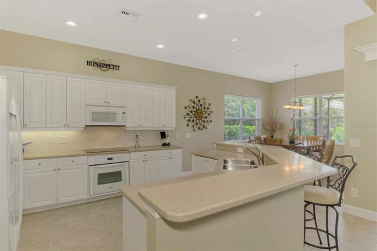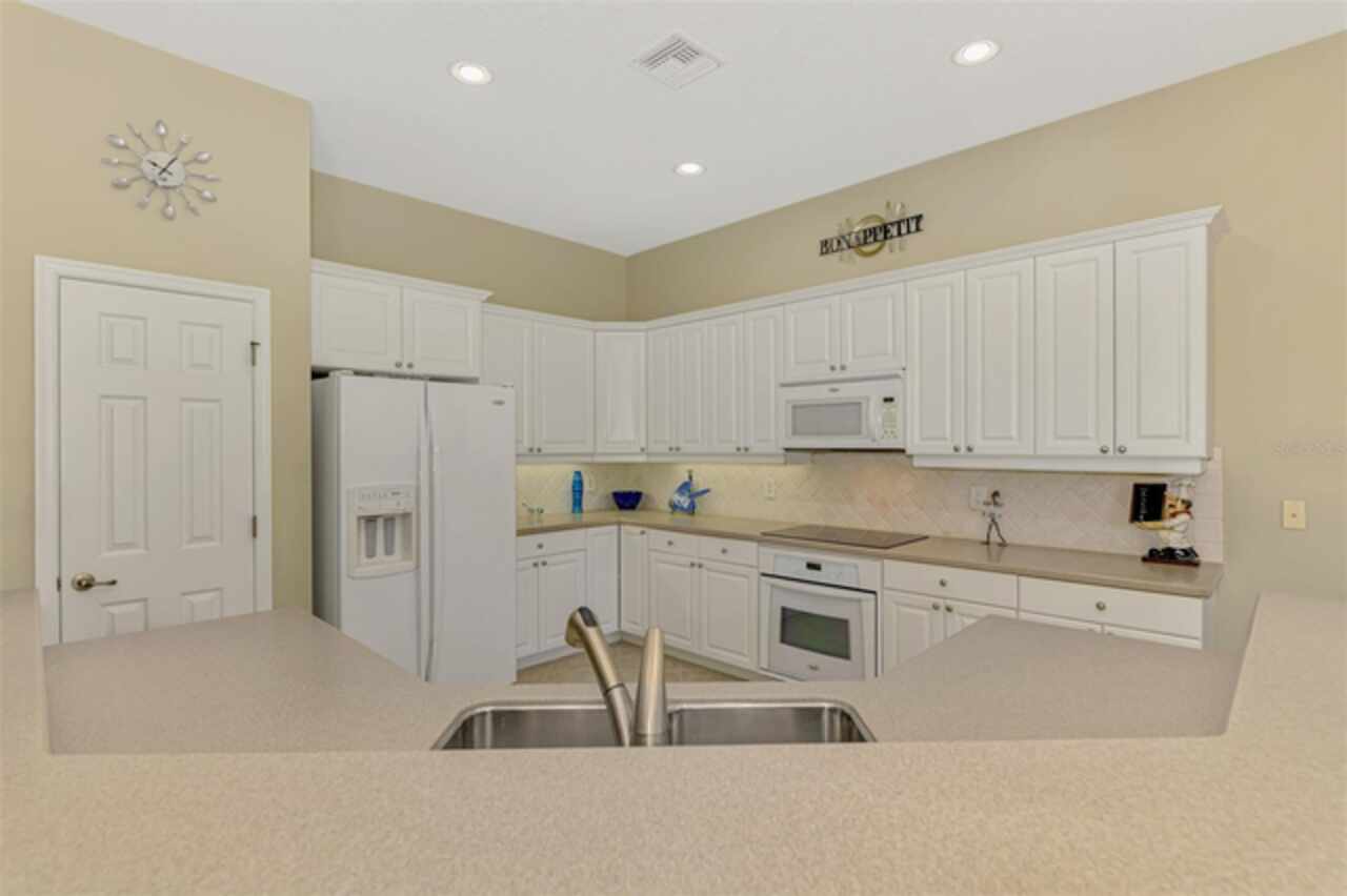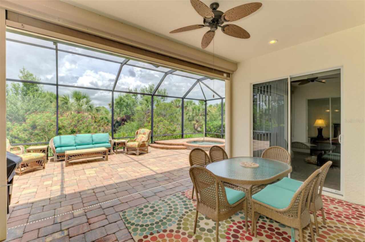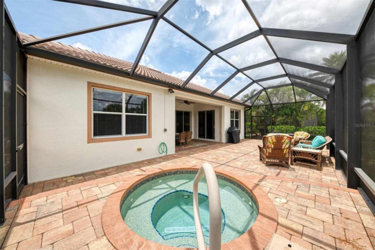 Welcome Home to your Florida Lifestyle at this TURNKEY FURNISHED, Open Floor Plan Home with 3-Bedrooms, 2-Baths, 2-Car Garage and private preserve backyard with a Spacious Paver Lanai and extended screened Patio/Deck with an in-ground heated Spa! This home offers great curb appeal with a nicely landscaped yard, a paver driveway & walkway, NEW ROOF (2024) and NEW EXTERIOR PAINT (2024). The enticing paver Lanai and Extended Patio/Deck provide ample space for entertaining and relaxation in the sparkling heated Spa. The interior is Freshly Painted (2024) and you’ll find a welcoming foyer leading to a generous Great Room with sliding glass doors that are adorned with Luminette blinds. The Great Room is Open to a Roomy Dinette and Kitchen, complete with a breakfast bar, extensive counter space, 36” upper cabinets with crown and light rail with under cabinet lighting, tile back splash and sleek cooktop. Living Areas boast Designer Lights and Fans, ample Recessed Ceiling Lights and desired Ceramic Tile flooring set diagonally. Laminate flooring in the 2nd bedroom, Carpet in Primary Bedroom and 3rd Bedroom/Office. The 2nd & 3rd Bedrooms share a “Jack and Jill” Guest Bathroom. The 3rd Bedroom is a roomy 11’10” x 16’10” and can double as an Office or Flex-Space. An en suite Primary Bedroom includes a large Walk-In Closet and Sliding Glass Doors to Lanai. Primary Bathroom with Walk-In Shower, soaking tub, Separate Vanities, Linen Closet and water closet. The Laundry Room includes a utility sink and storage closet as well as upper cabinetry over the washer & dryer. SEE ATTACHED LIST OF MINOR ITEMS EXCLUDED FROM TURNKEY FURNISHINGS. Enjoy all Riverwood has to offer: GOLF CLUB NAMED *TOP 50 US COURSES* *GOLF ADVISOR* *2018*, NEWLY RENOVATED ACTIVITY CENTER CAMPUS (May 2019) INCLUDES LAP & RESORT STYLE POOL, FITNESS CENTER, PICKLEBALL COURTS, SMALL AND LARGE DOG PARKS, TENNIS COURTS, LAWN CROUQET, BOCCE COURTS, CRAFT ROOM, LIBRARY AND SOCIAL ACTIVITIES! Take a walk on our lush tree lined streets of our Audubon Green Community Award Winner for its natural habitat for Florida Wildlife. Additional fees apply for Dog Park, Riverwood Golf Club, Par 72 Championship course & Private Beach Club on Manasota Key. Riverwood is Close to our natural waterways for boating, cultural events, dining, shopping & beautiful beaches of SWFL. A place we call Paradise!
