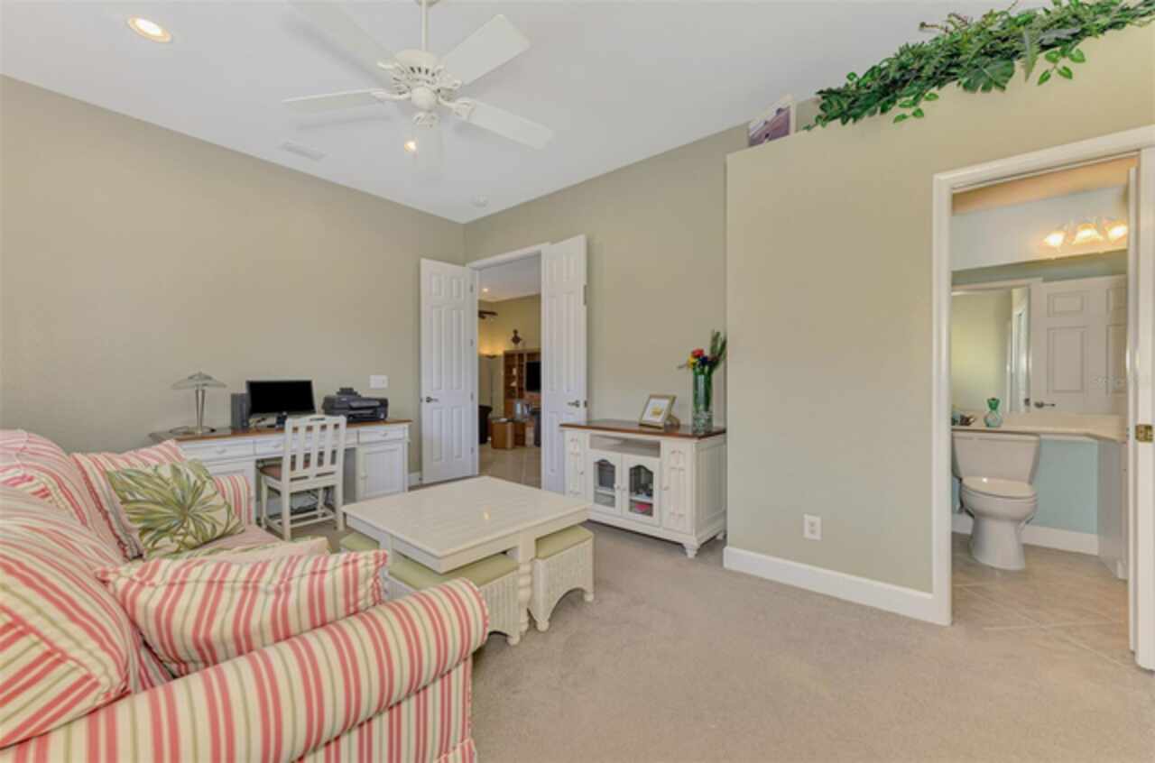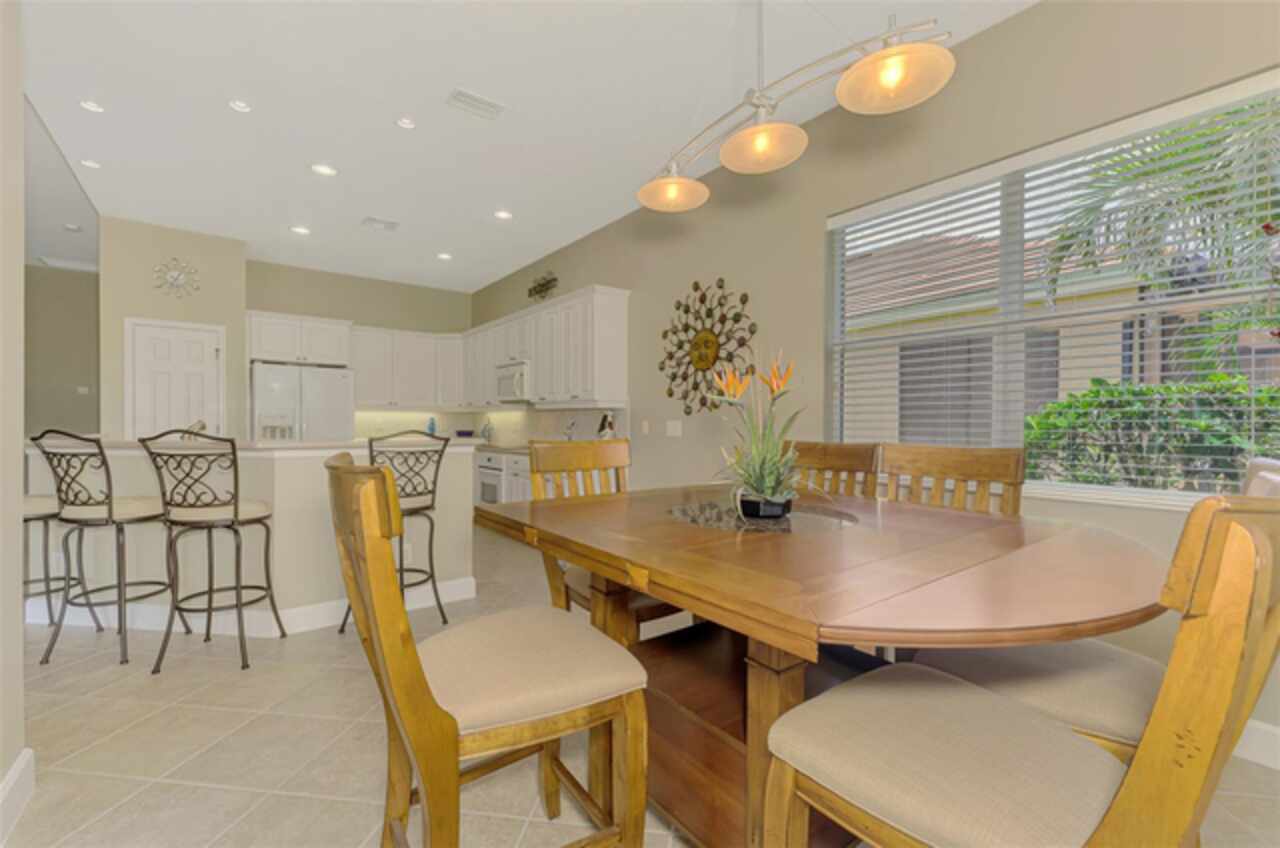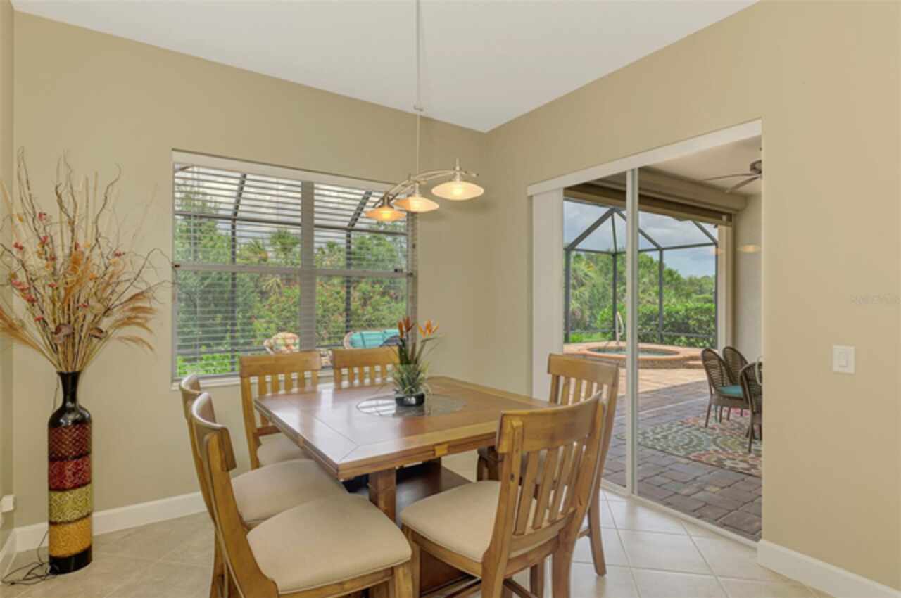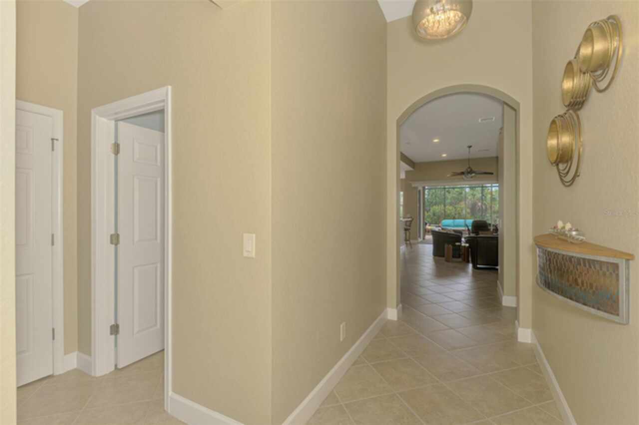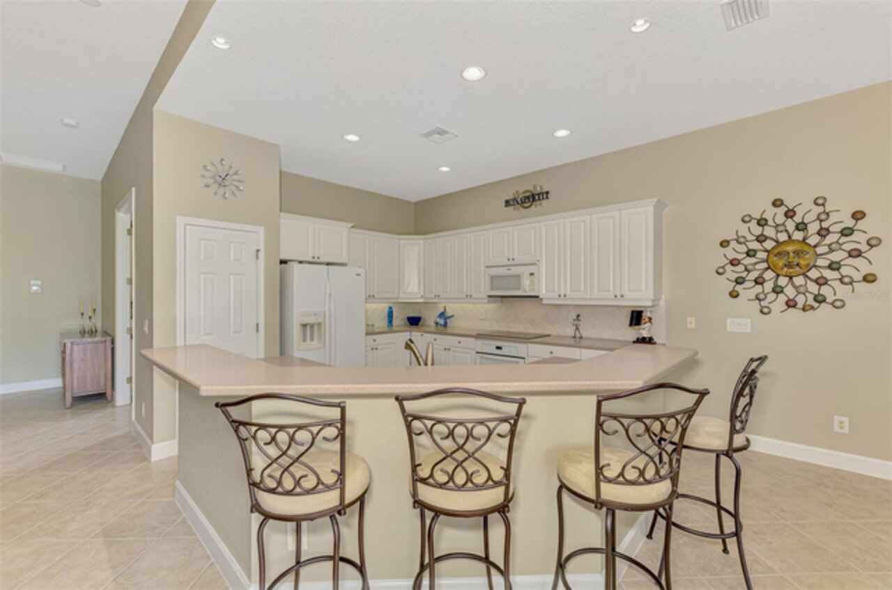 Welcome Home to your Florida Lifestyle at this TURNKEY FURNISHED, Open Floor Plan Home with 3-Bedrooms, 2-Baths, 2-Car Garage and private preserve backyard with a Spacious Paver Lanai and extended screened Patio/Deck with an in-ground heated Spa! This home offers great curb appeal with a nicely landscaped yard, a paver driveway & walkway, NEW ROOF (2024) and NEW EXTERIOR PAINT (2024). The enticing paver Lanai and Extended Patio/Deck provide ample space for entertaining and relaxation in the sparkling heated Spa. The interior is Freshly Painted (2024) and you’ll find a welcoming foyer leading to a generous Great Room with sliding glass doors that are adorned with Luminette blinds. The Great Room is Open to a Roomy Dinette and Kitchen, complete with a breakfast bar, extensive counter space, 36” upper cabinets with crown and light rail with under cabinet lighting, tile back splash and sleek cooktop. Living Areas boast Designer Lights and Fans, ample Recessed Ceiling Lights and desired Ceramic Tile flooring set diagonally. Laminate flooring in the 2nd bedroom, Carpet in Primary Bedroom and 3rd Bedroom/Office. The 2nd & 3rd Bedrooms share a “Jack and Jill” Guest Bathroom. The 3rd Bedroom is a roomy 11’10” x 16’10” and can double as an Office or Flex-Space. An en suite Primary Bedroom includes a large Walk-In Closet and Sliding Glass Doors to Lanai. Primary Bathroom with Walk-In Shower, soaking tub, Separate Vanities, Linen Closet and water closet. The Laundry Room includes a utility sink and storage closet as well as upper cabinetry over the washer & dryer. SEE ATTACHED LIST OF MINOR ITEMS EXCLUDED FROM TURNKEY FURNISHINGS. Enjoy all Riverwood has to offer: GOLF CLUB NAMED *TOP 50 US COURSES* *GOLF ADVISOR* *2018*, NEWLY RENOVATED ACTIVITY CENTER CAMPUS (May 2019) INCLUDES LAP & RESORT STYLE POOL, FITNESS CENTER, PICKLEBALL COURTS, SMALL AND LARGE DOG PARKS, TENNIS COURTS, LAWN CROUQET, BOCCE COURTS, CRAFT ROOM, LIBRARY AND SOCIAL ACTIVITIES! Take a walk on our lush tree lined streets of our Audubon Green Community Award Winner for its natural habitat for Florida Wildlife. Additional fees apply for Dog Park, Riverwood Golf Club, Par 72 Championship course & Private Beach Club on Manasota Key. Riverwood is Close to our natural waterways for boating, cultural events, dining, shopping & beautiful beaches of SWFL. A place we call Paradise!