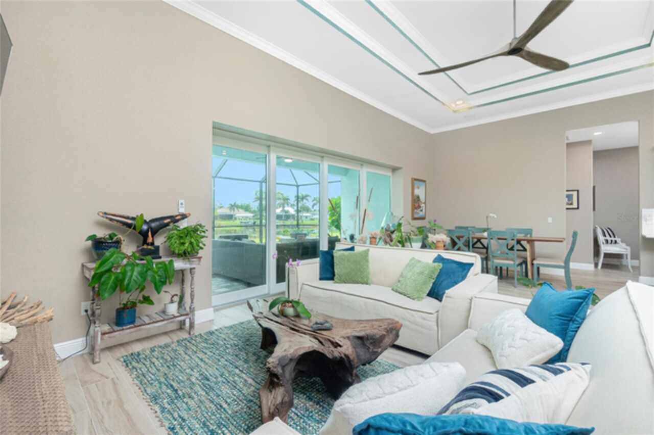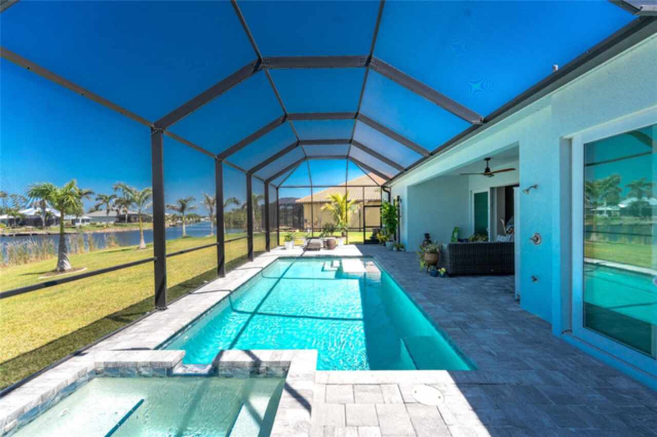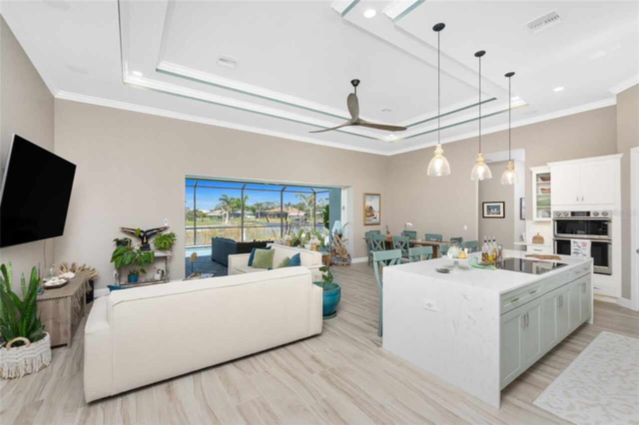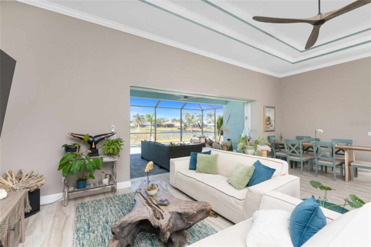 Stunning Waterfront Paradise with Gulf Access, Saltwater Pool, Spa & Pool Bath This beautifully crafted 3-bedroom, 2 and a half-bath custom single-family home sits on an oversized lot along the Gazania Waterway, just minutes from the Santa Cruz Waterway and open Gulf access—a true boater’s paradise. Enjoy beautiful water views throughout this thoughtfully designed open-concept home, featuring extra attic insulation and impact-rated windows and doors for storm protection and energy efficiency. The spacious chef’s kitchen is fully upgraded with a high-end cooktop, custom cabinetry, solid surface waterfall-edge countertops, premium built-in appliances, and a deep stainless-steel sink with designer fixtures. The home includes a convenient pool bath, ideal for seamless indoor-outdoor living. Step outside to your tropical backyard retreat with a heated saltwater pool and spa, irrigation system fed from the canal, and lush landscaping. Other highlights include public water and sewer, a large 2-car garage, and luxurious finishes throughout. Whether you're entertaining or relaxing, this home delivers the ultimate Florida waterfront lifestyle with access to open water.