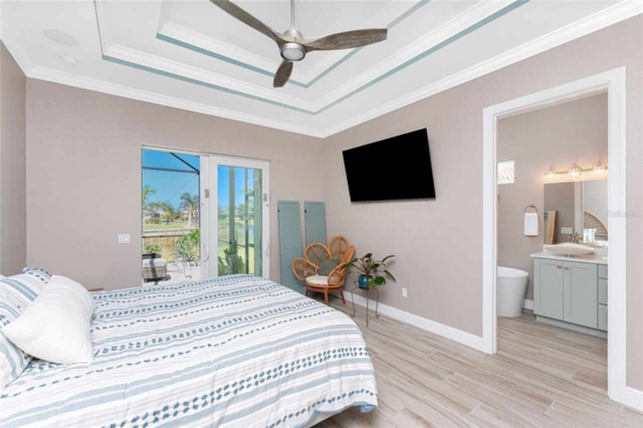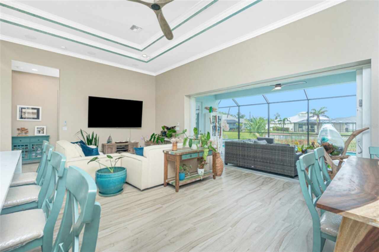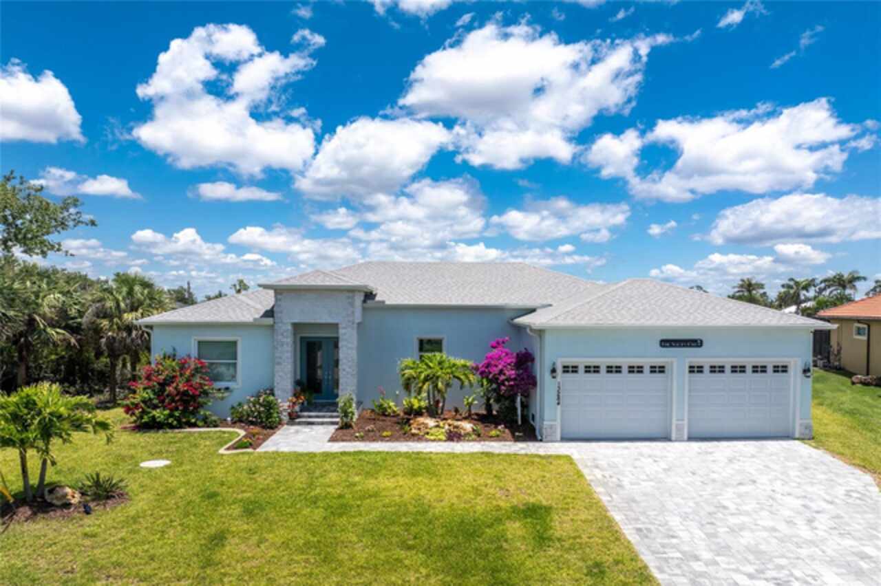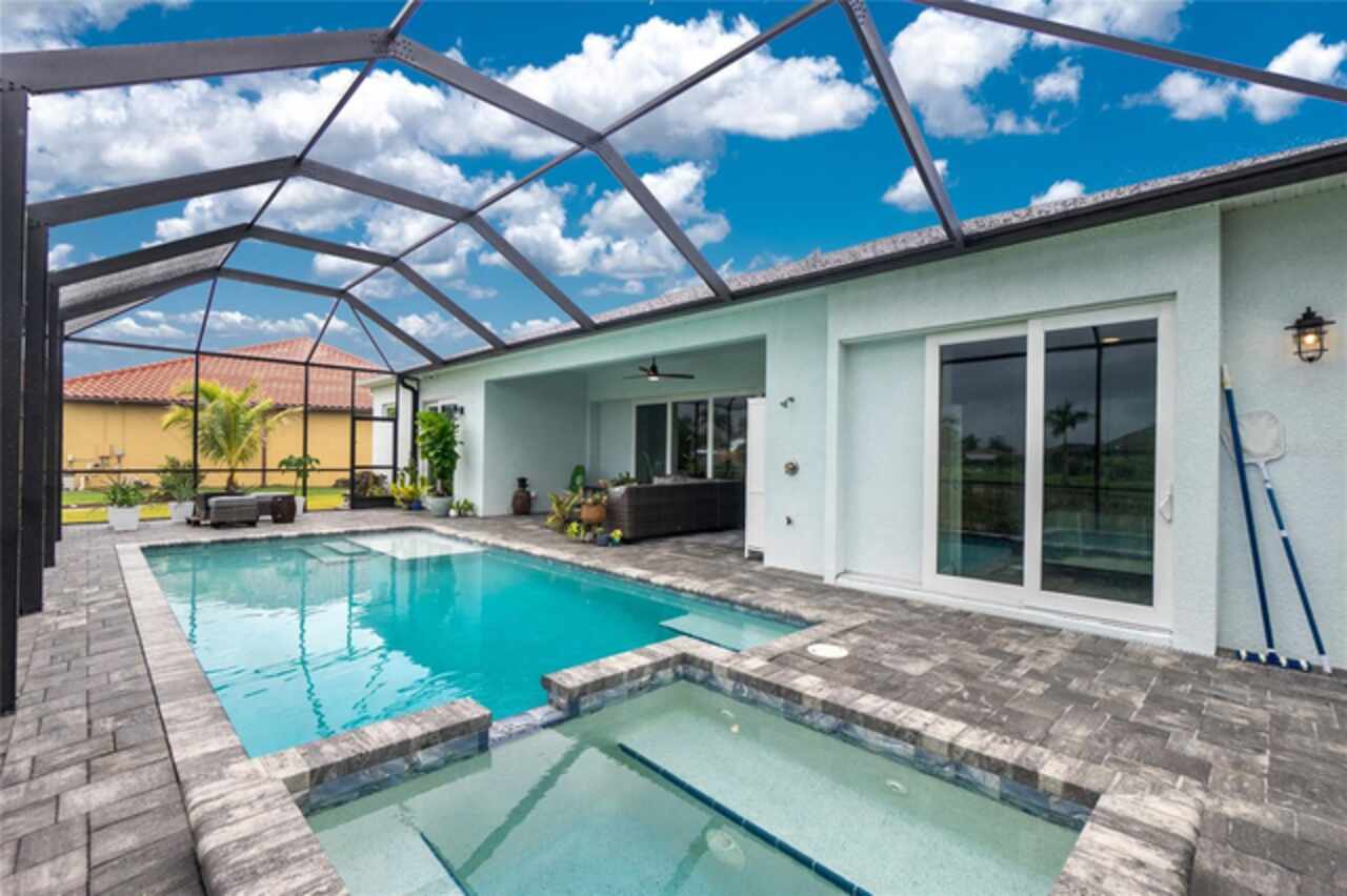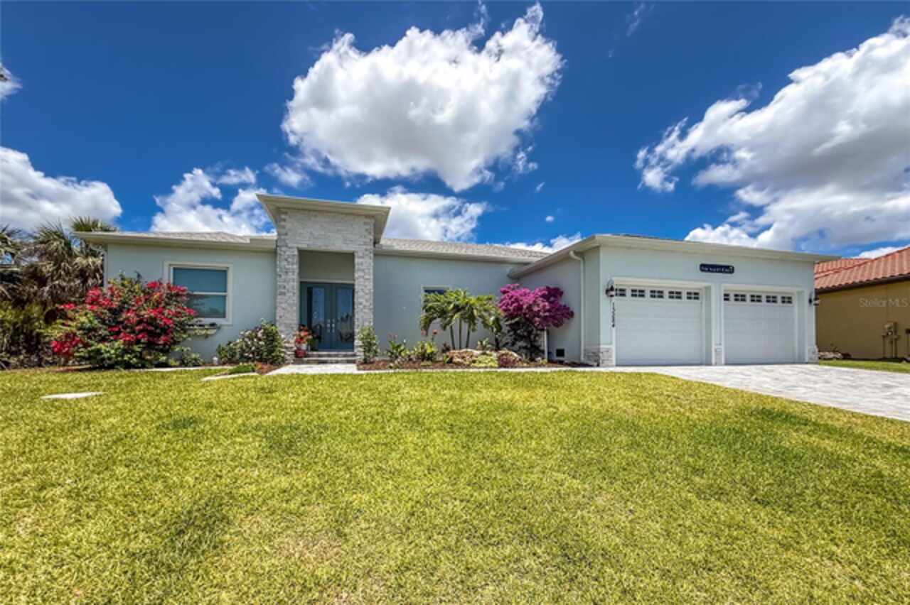 Stunning Waterfront Paradise with Gulf Access, Saltwater Pool, Spa & Pool Bath This beautifully crafted 3-bedroom, 2 and a half-bath custom single-family home sits on an oversized lot along the Gazania Waterway, just minutes from the Santa Cruz Waterway and open Gulf access—a true boater’s paradise. Enjoy beautiful water views throughout this thoughtfully designed open-concept home, featuring extra attic insulation and impact-rated windows and doors for storm protection and energy efficiency. The spacious chef’s kitchen is fully upgraded with a high-end cooktop, custom cabinetry, solid surface waterfall-edge countertops, premium built-in appliances, and a deep stainless-steel sink with designer fixtures. The home includes a convenient pool bath, ideal for seamless indoor-outdoor living. Step outside to your tropical backyard retreat with a heated saltwater pool and spa, irrigation system fed from the canal, and lush landscaping. Other highlights include public water and sewer, a large 2-car garage, and luxurious finishes throughout. Whether you're entertaining or relaxing, this home delivers the ultimate Florida waterfront lifestyle with access to open water.