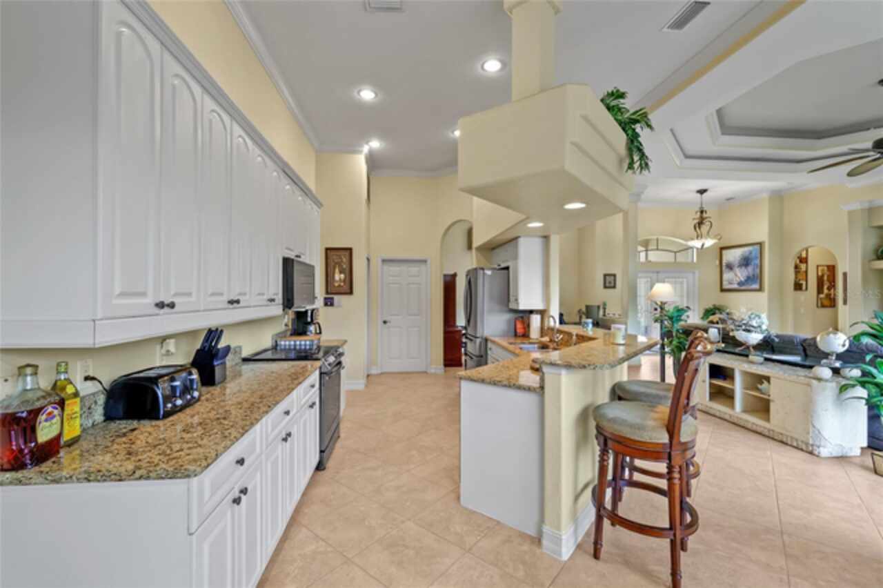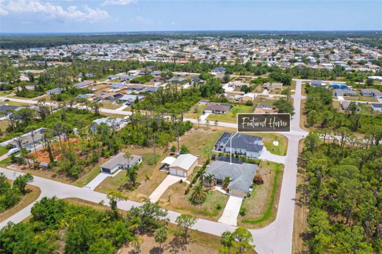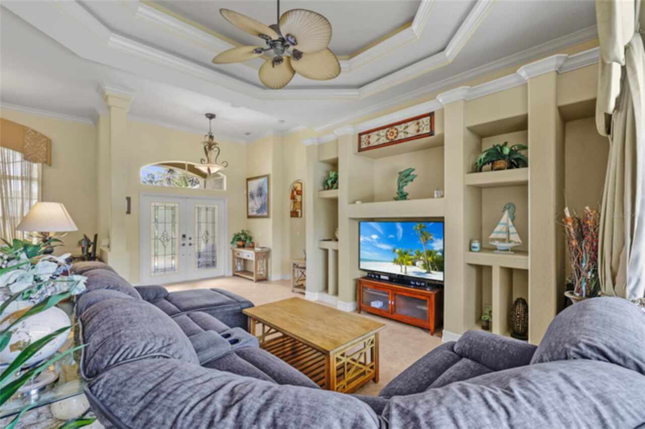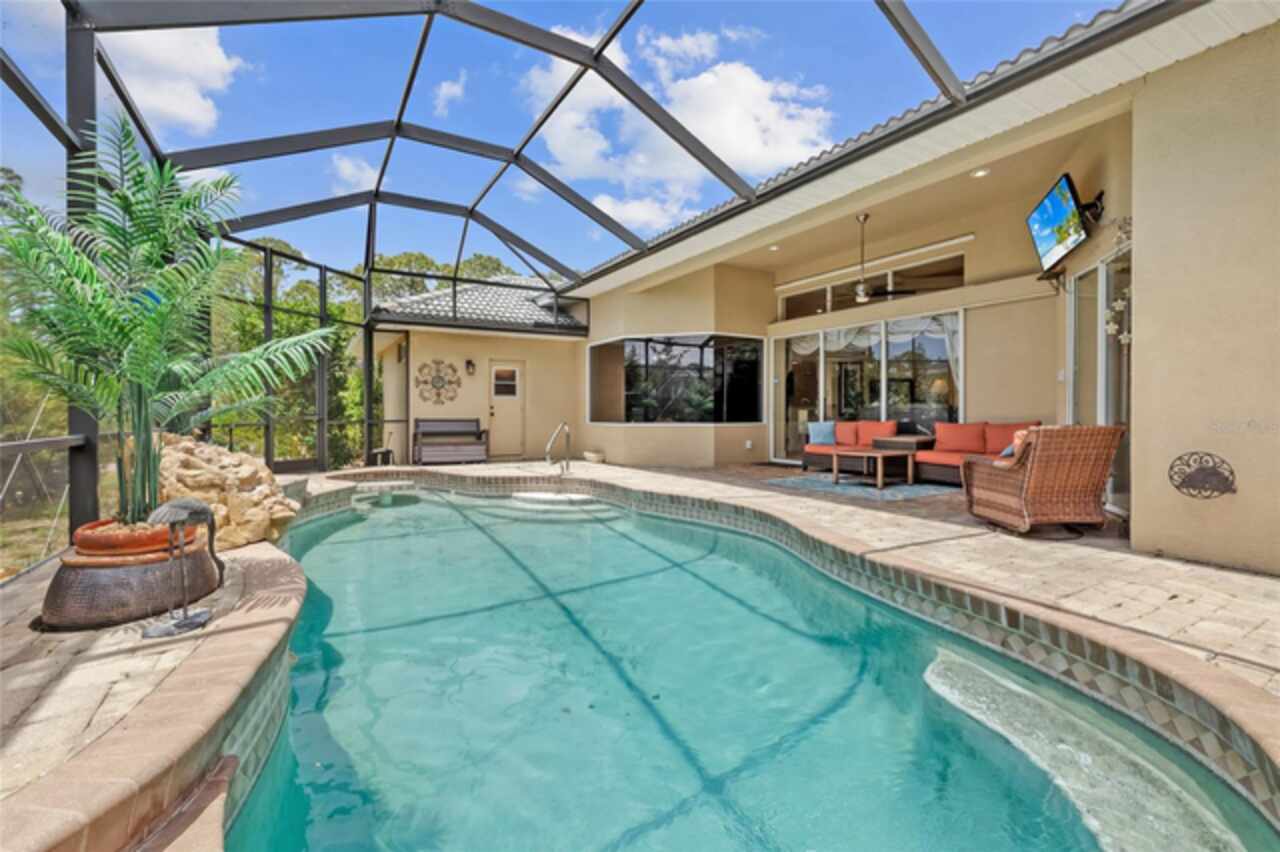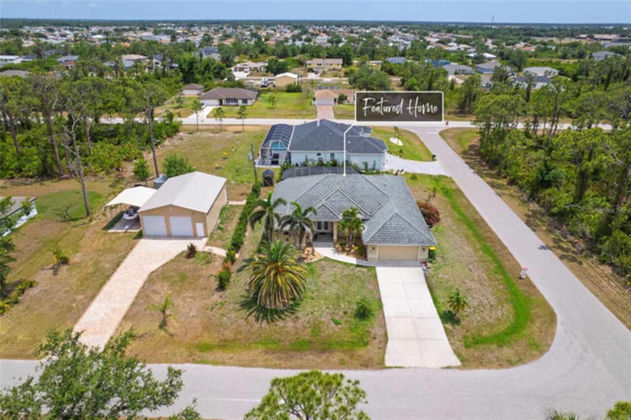 UNIQUE PROPERTY in quiet highly sought after Gulf Cove development. This stunning Contemporary Ranch style 4/3/2 is a flagship pool home with tray ceilings and numerous architectural upgrades. It is situated on a CORNER DOUBLE LOT with Direct Gulf Access via a private park and boat ramp on the Myakka River. Follow the pavers to your fully insulated 40X35 MAN CAVE!! Store your toys or work on your muscle cars, boats, etc. The hoist is already there! This is a MUST SEE to appreciate EVERYTHING!!! Intercom stereo system throughout, 3 zone AC system new 2021, On demand water heater 2022. Irrigation system installed 2021. Pool skimmer 2023. AC new 2021. MANY EXTRAS! NO HOMEOWNERS OR FLOOD CLAIMS. SOLID HOME.