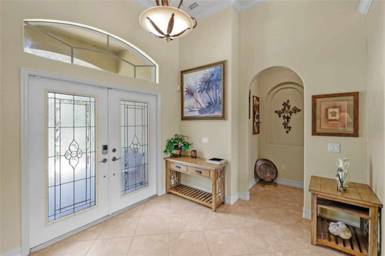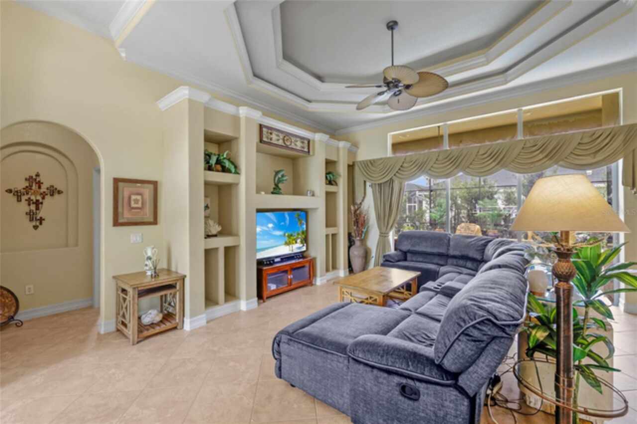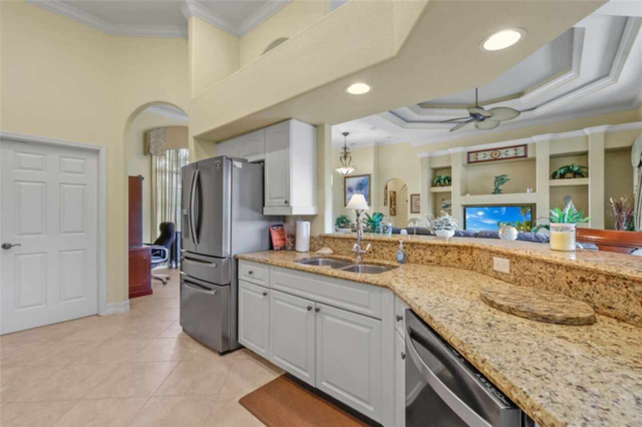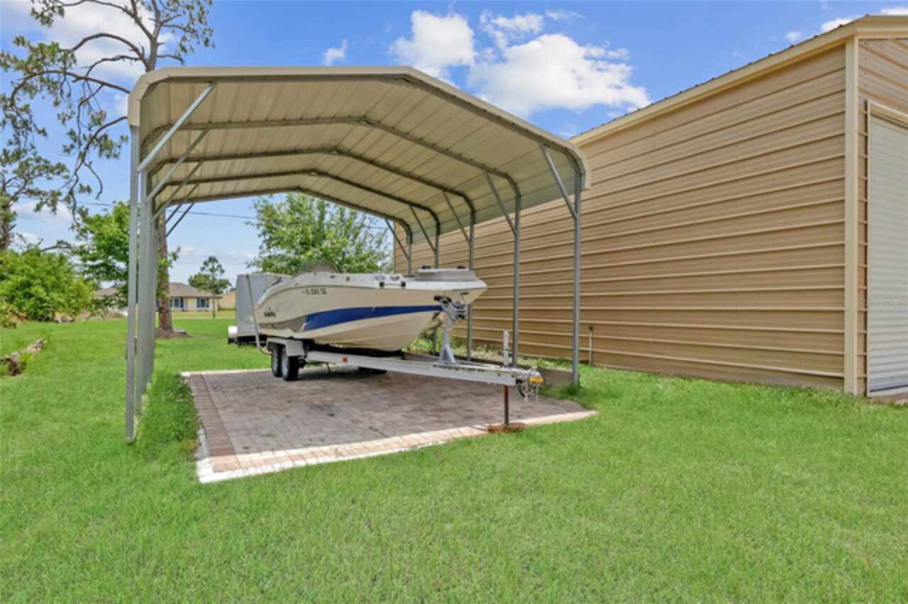 UNIQUE PROPERTY in quiet highly sought after Gulf Cove development. This stunning Contemporary Ranch style 4/3/2 is a flagship pool home with tray ceilings and numerous architectural upgrades. It is situated on a CORNER DOUBLE LOT with Direct Gulf Access via a private park and boat ramp on the Myakka River. Follow the pavers to your fully insulated 40X35 MAN CAVE!! Store your toys or work on your muscle cars, boats, etc. The hoist is already there! This is a MUST SEE to appreciate EVERYTHING!!! Intercom stereo system throughout, 3 zone AC system new 2021, On demand water heater 2022. Irrigation system installed 2021. Pool skimmer 2023. AC new 2021. MANY EXTRAS! NO HOMEOWNERS OR FLOOD CLAIMS. SOLID HOME.