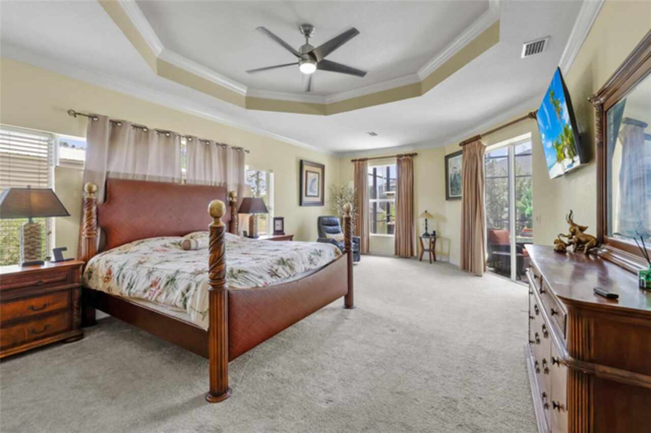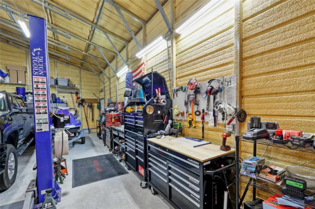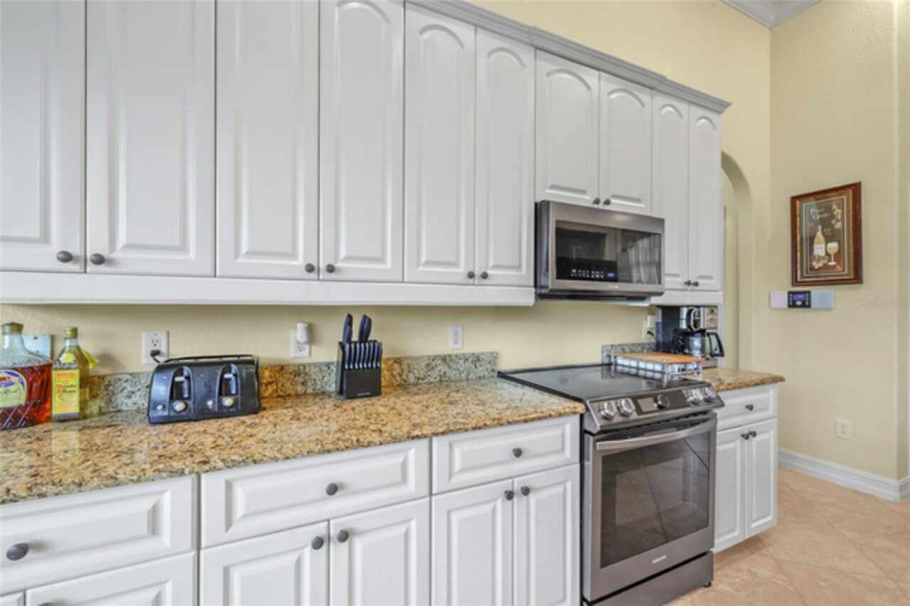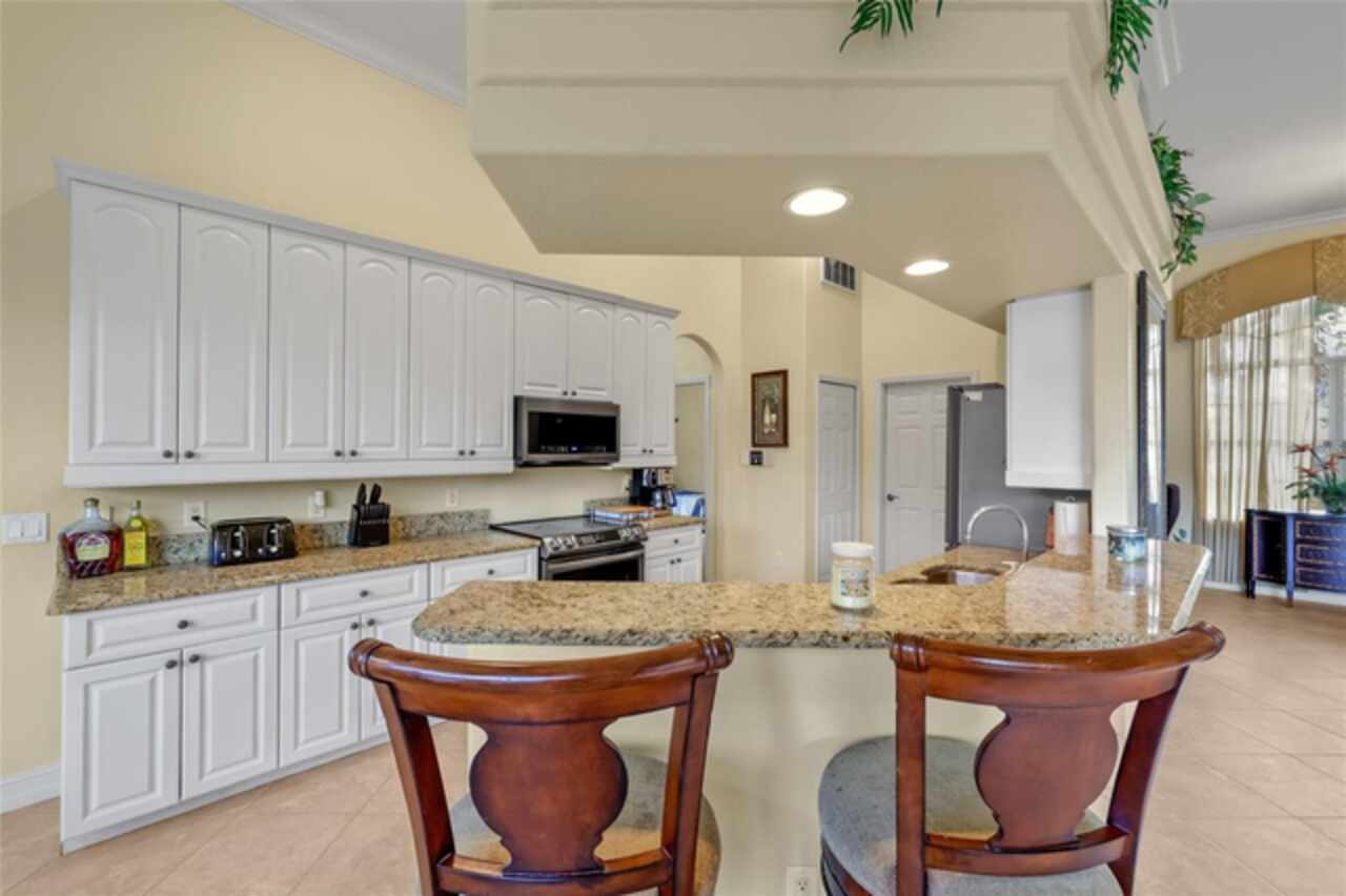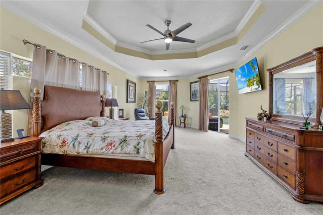 UNIQUE PROPERTY in quiet highly sought after Gulf Cove development. This stunning Contemporary Ranch style 4/3/2 is a flagship pool home with tray ceilings and numerous architectural upgrades. It is situated on a CORNER DOUBLE LOT with Direct Gulf Access via a private park and boat ramp on the Myakka River. Follow the pavers to your fully insulated 40X35 MAN CAVE!! Store your toys or work on your muscle cars, boats, etc. The hoist is already there! This is a MUST SEE to appreciate EVERYTHING!!! Intercom stereo system throughout, 3 zone AC system new 2021, On demand water heater 2022. Irrigation system installed 2021. Pool skimmer 2023. AC new 2021. MANY EXTRAS! NO HOMEOWNERS OR FLOOD CLAIMS. SOLID HOME.