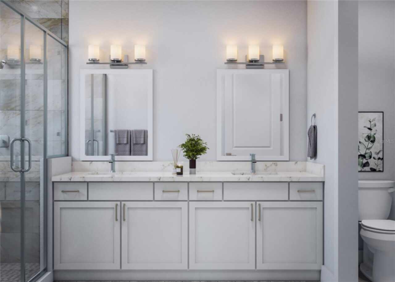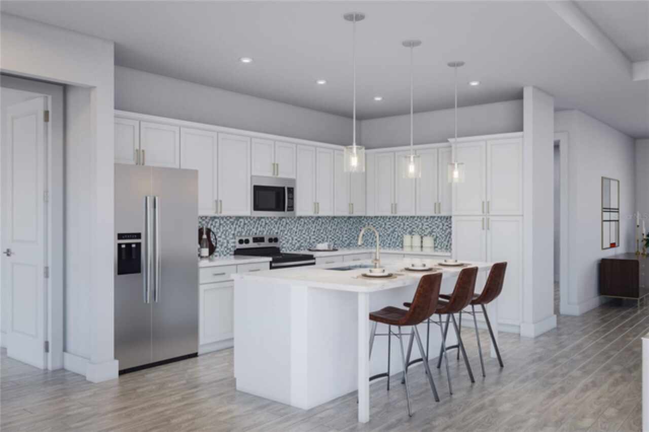 Welcome to elevated living at its finest with the stunning Boca floorplan by Carpenter Homes—a true masterpiece within the Signature Series, proudly certified by the Florida Green Building Coalition (FGBC). This exquisite new construction boasts 3 spacious bedrooms, an oversized office/flex room, and 2 full bathrooms—perfectly designed to envelop you in luxury, comfort, and style. As you enter, be captivated by the custom-designed kitchen that serves as the heart of the home. An expansive oversized Waterfall island flows effortlessly into the open living and dining areas, creating a perfect space for entertaining and daily living. The kitchen dazzles with soft-close 42" painted cabinets, a beautiful Anatolia Bliss Glass & Stone 5/8”x5/8” Mosaic Tile Iceland backsplash, and sleek Cambria 3cm Quartz Sandgate waterfall countertops. Every detail has been carefully curated, including a Moen Sleek chrome kitchen faucet with a contemporary zero radius kitchen sink, energy-efficient stainless steel appliances, and a built-in garbage disposal—merging style with function. The great room features a soaring vaulted ceiling, and expansive 8 foot 3-panel sliding glass doors that lead to your private, oversized patio—an oasis designed for relaxation and entertaining. Enjoy the luxurious Brushed Nickel Chandeliers in your dining room & breakfast nook. The 52” Indoor Brushed Nickel 5-Blade Modern Reversible Ceiling Fans in every bedroom and the great room keep the air flowing in the Florida warmth, while the stunning 12”x24” Ceramic Tile flooring ties the space together with modern elegance. The Owner’s suite is nothing short of a luxurious retreat, featuring dual sinks, an upgraded glass-enclosed shower adorned with SOHO 4”x16” Canvas White Ceramic Tile walls, complemented by Anatolia Zen Flat Pebble vertical listello accents, a striking 72x36” contemporary mirror with front and back LED lighting, anti-fog technology, customizable color settings with a dimmer, and two expansive walk-in closets—offering both indulgence and practicality. The second bathroom continues the luxe experience with the front and back LED mirror, Valor White quartz vanity, and Moen Genta LX chrome fixtures for a sleek, polished look. Thoughtfully designed with every convenience in mind, this home includes a utility room with a wash basin, energy-efficient R-4.1 insulation on exterior concrete walls, Taexx pest control tubes, and metal hurricane shutters for every window. The Florida-friendly landscaping is complemented by an irrigation system with a rain sensor, ensuring a sustainable and low-maintenance outdoor retreat. The expansive 2.5-car garage provides ample space for your vehicles and storage needs, equipped with an electronic door opener and two remotes for convenience. he 13x26' outdoor pool with a water feature is a standout addition of this home, offering a luxurious sun shelf and enclosed with a birdcage for year-round enjoyment. The pool is 3-5 feet deep and includes stunning 2-color LED lighting, a variable-speed circulation pump, and an advanced salt-chlorine generator. Additional upgrades include a heater for comfortable swimming in any season, plus smart automation with a cell phone adapter, allowing you to control the pool’s settings from anywhere. Available for viewing anytime—schedule your tour today!