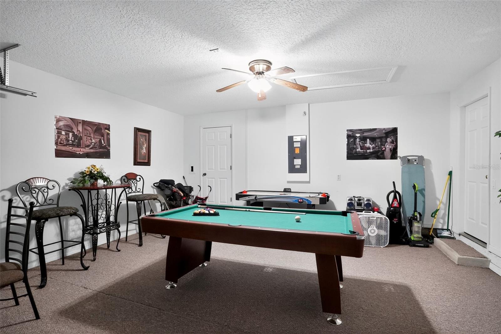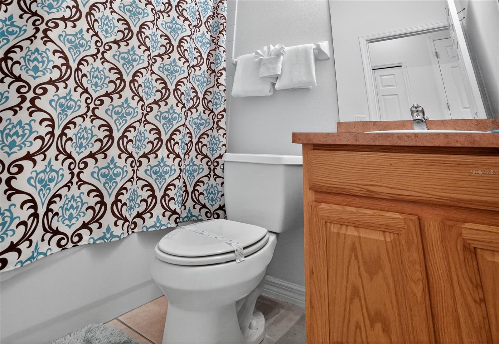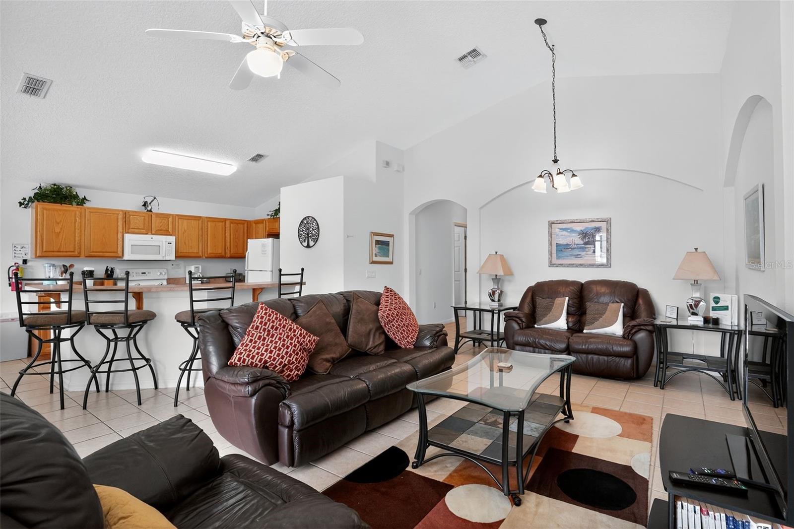 Welcome to this fully furnished 4-bedroom, 3-bathroom home located in the gated community of Highgate Park at Legacy Park. This property is zoned for both short-term rental and residential living, making it an excellent income-producing opportunity or vacation retreat. The home features a spacious, open floor plan designed for comfort, with a bright living area flowing into the dining space and fully equipped kitchen. The garage has been converted into a games room, providing additional entertainment to attract renters. Two Master Bedrooms/ensuites. The primary suite offers direct pool access, two walk-in closets, and an ensuite with double sinks, a garden tub, a large tiled shower, and a private water closet. The outdoor space is a highlight, with an oversized pool, spa, extended deck, lanai, and screened enclosure. Community amenities include a playground and tennis courts, and the home is conveniently located near shopping, dining, major routes, and all of Central Florida’s attractions including Disney. This is move-in ready home and a seamless investment opportunity. Age of Aircon replaced with new in 2017. Age of Pool equipment - brand new pump. Age of Pool Heater : pool heater replaced 2021. Maintenance of paintwork interior / exterior new exterior painted 2021