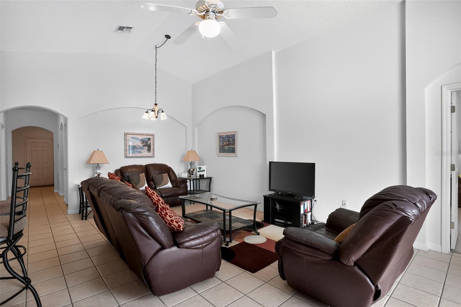Ceiling Fans(s), Eat-in Kitchen, High Ceilings, Kitchen/Family Room Combo, Living Room/Dining Room Combo, Open Floorplan, Primary Bedroom Main Floor, Walk-In Closet(s), Window Treatments