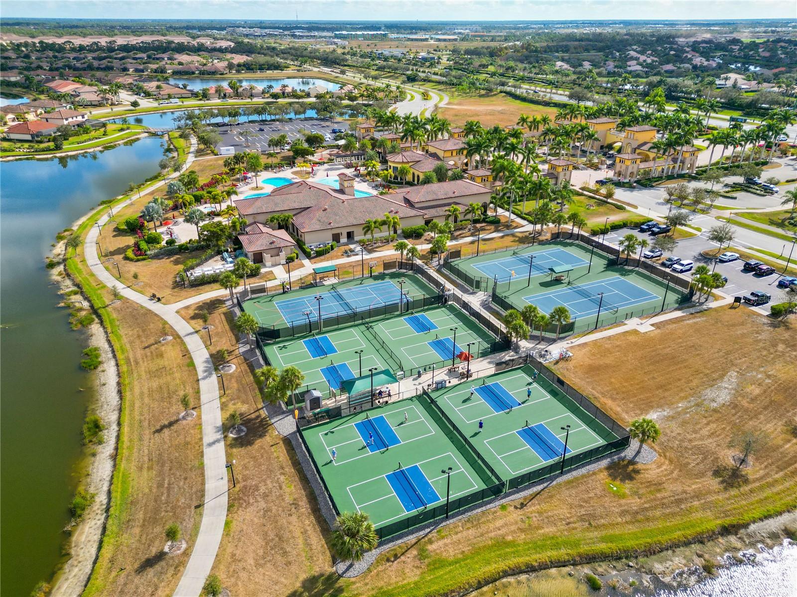 Welcome to this stunning Sam Rodgers built Napoli executive style home located in the community of Gran Paradiso, Wellen Park Florida. This home is richly appointed with custom upgrades throughout. Light, bright, and airy, the residence features soaring cathedral ceilings and a fresh, modern color palette. Smart-home technology seamlessly controls the outdoor storm shutters, pool and spa, color-changing lighting, and interior temperature for effortless comfort. The spacious primary suite offers a serene retreat complete with a luxurious bath featuring a garden tub and a beautifully designed tech closet. The chef’s kitchen is a true showpiece, boasting custom wood cabinetry, quartz countertops, a convection oven, and a striking herringbone tile accent wall. Outdoor living is exceptional in this home. Step outside to an expansive brick-paver lanai showcasing a sparkling salt water pool and spa with a waterfall feature, along with a full outdoor kitchen—perfect for entertaining or simply relaxing in your private oasis. All this, combined with quality craftsmanship and thoughtful design, makes this home an extraordinary opportunity. Please see attachments for all upgrades like for example the tankless water heater, EV garage charging station and more. Sellers are also providing 1 full year of American Home Shield Warranty!