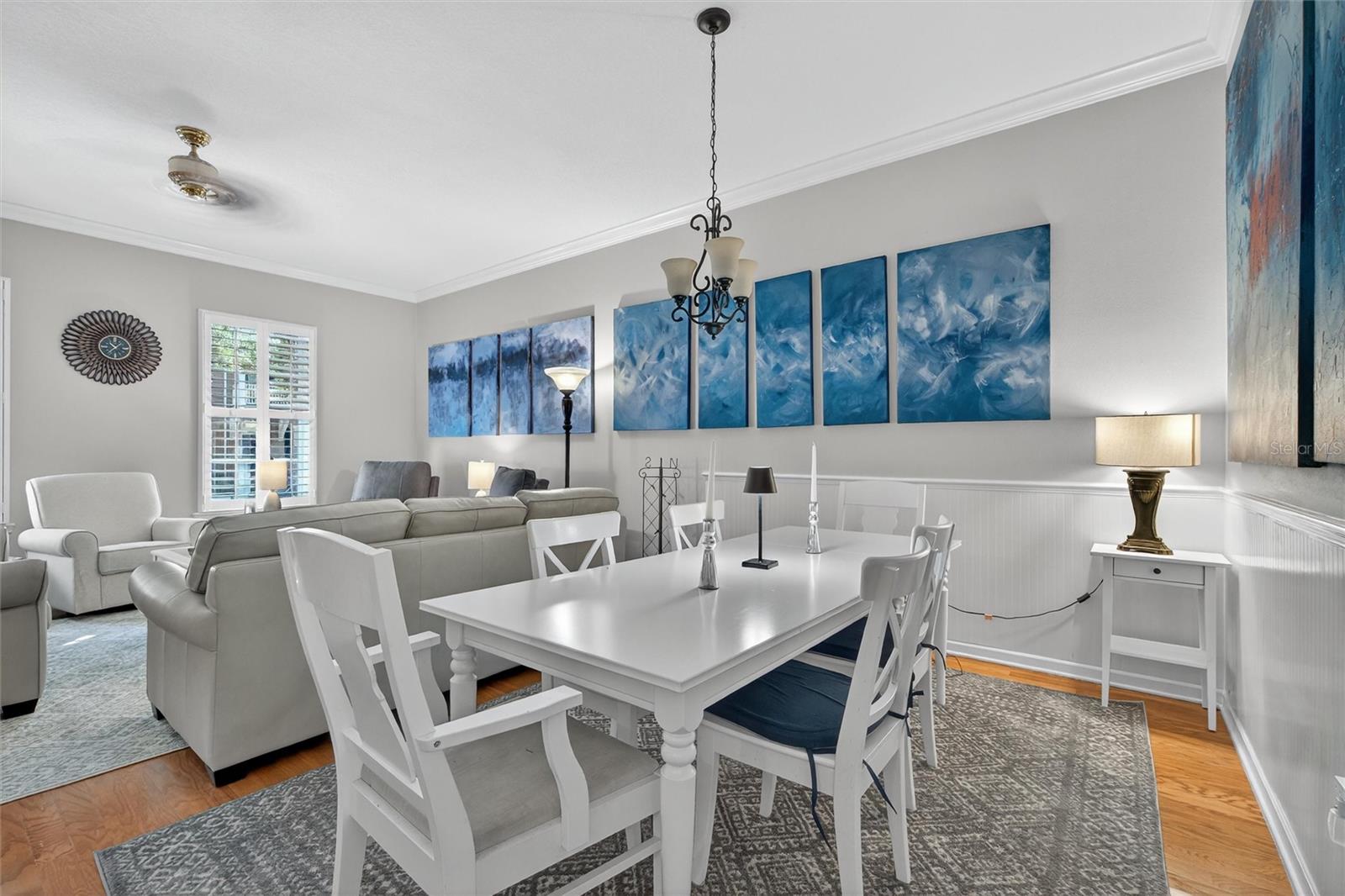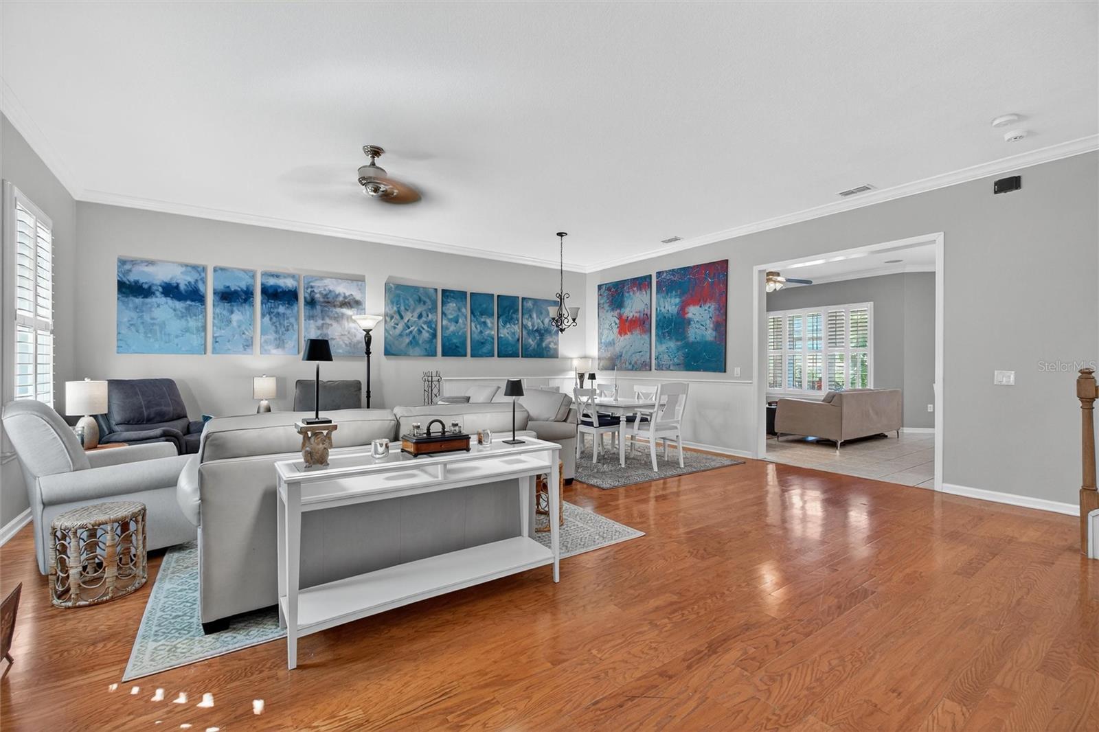 Ceiling Fans(s), Crown Molding, Eat-in Kitchen, Kitchen/Family Room Combo, Living Room/Dining Room Combo, Primary Bedroom Main Floor, Solid Wood Cabinets, Stone Counters, Walk-In Closet(s), Window Treatments